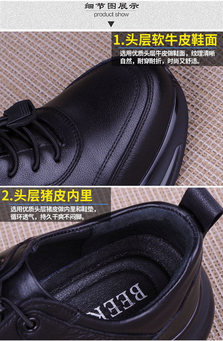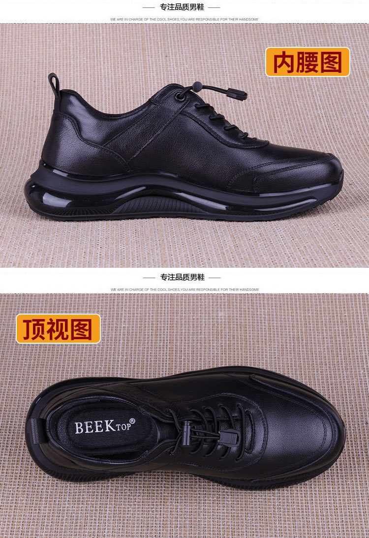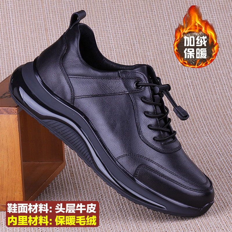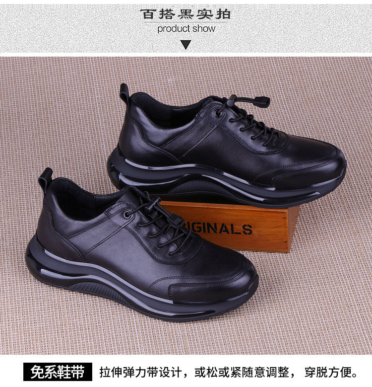 천연 가죽 남성 신발, 봄 여름용, 냄새 방지 통기성 운동화, 두꺼운 밑창, 신축성 있는 밴드, 캐주얼 팝콘 런닝화