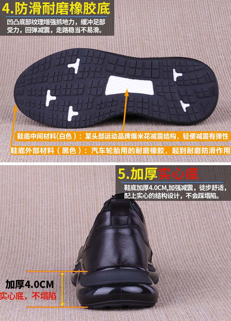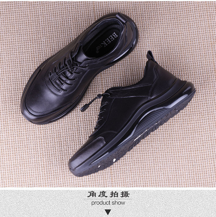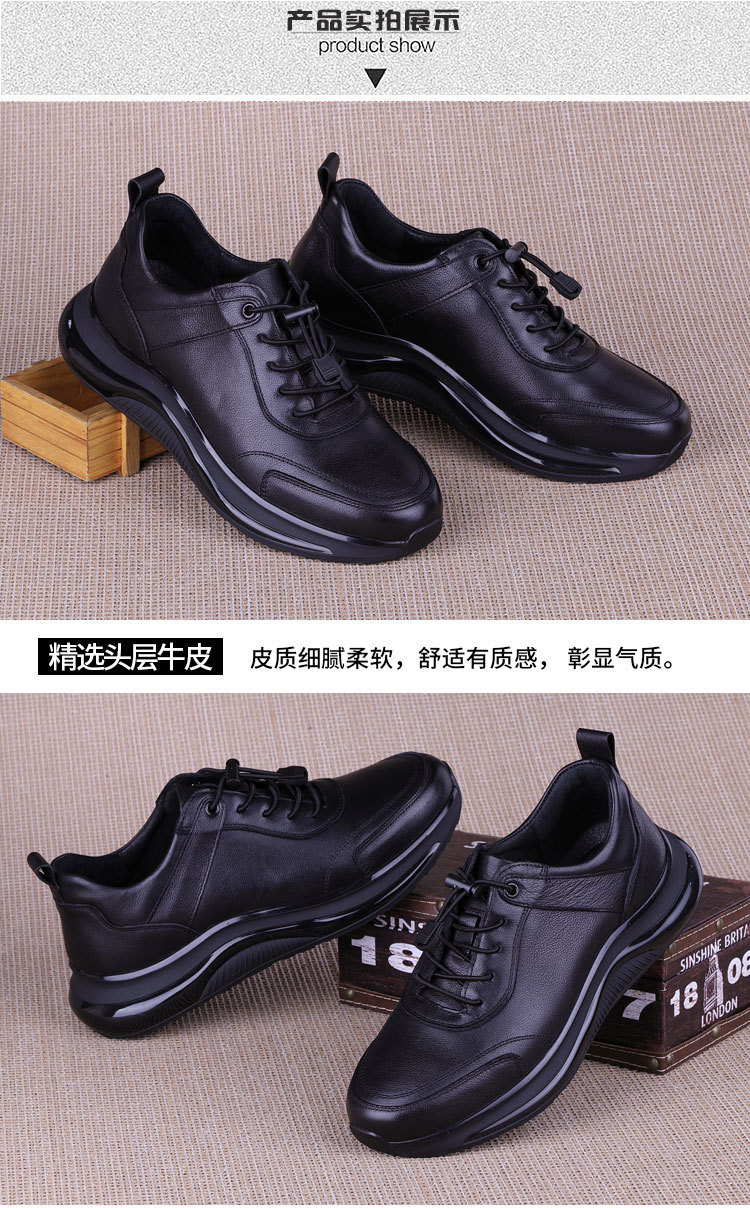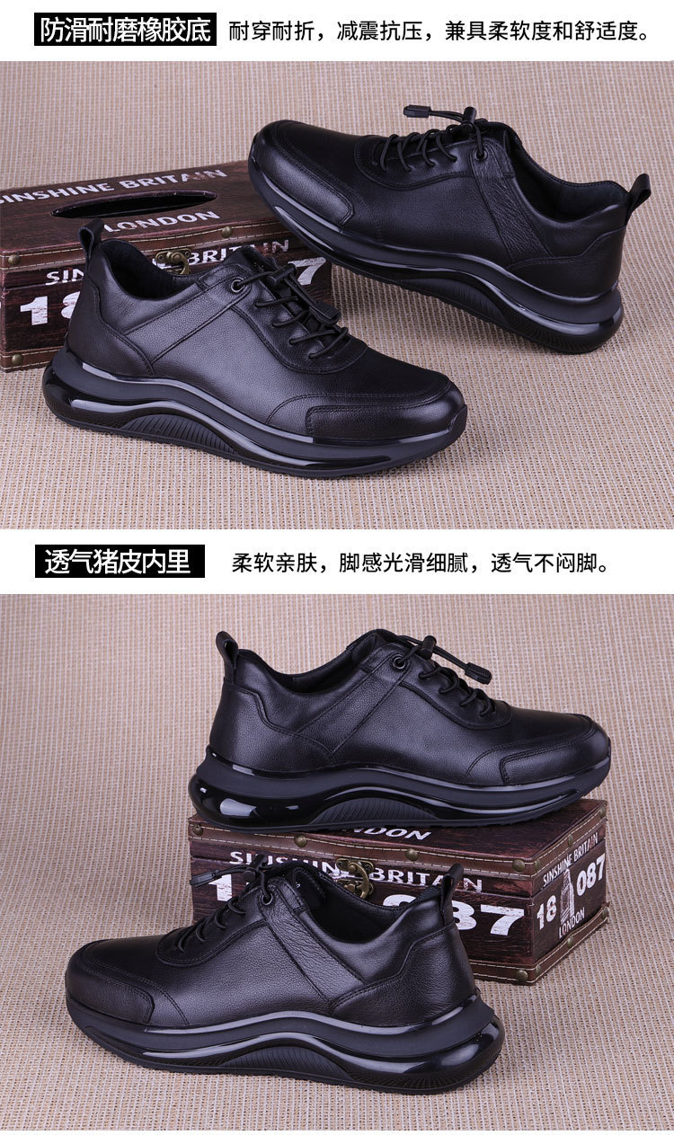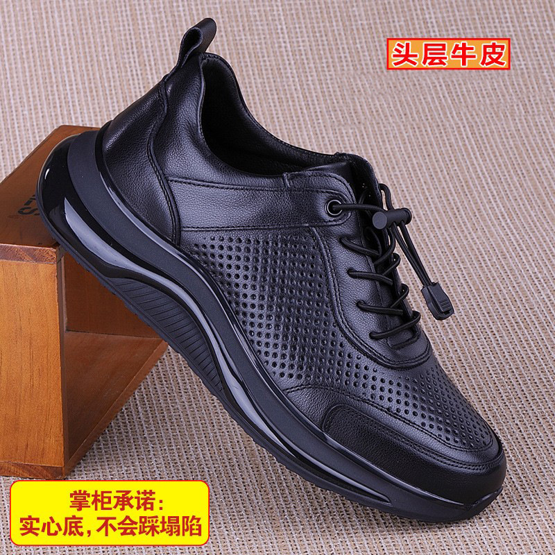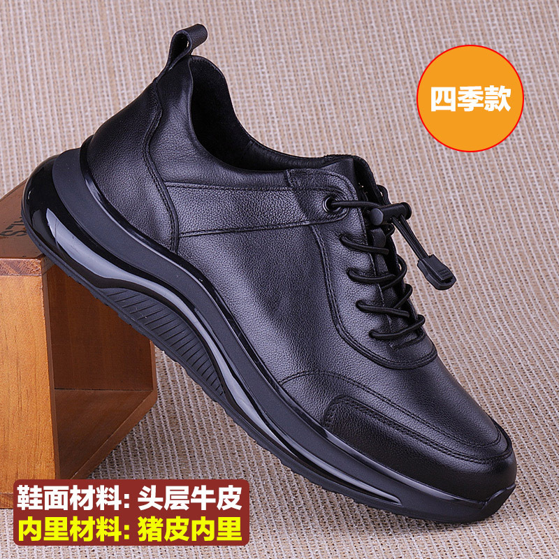 천연 가죽 남성 신발, 봄 여름용, 냄새 방지 통기성 운동화, 두꺼운 밑창, 신축성 있는 밴드, 캐주얼 팝콘 런닝화스토어 가기