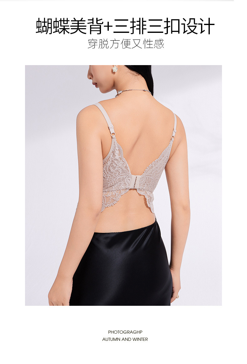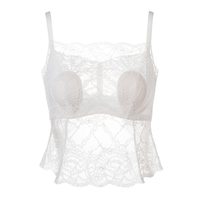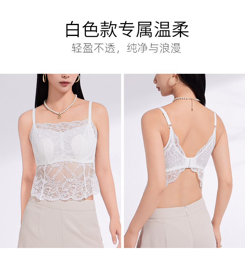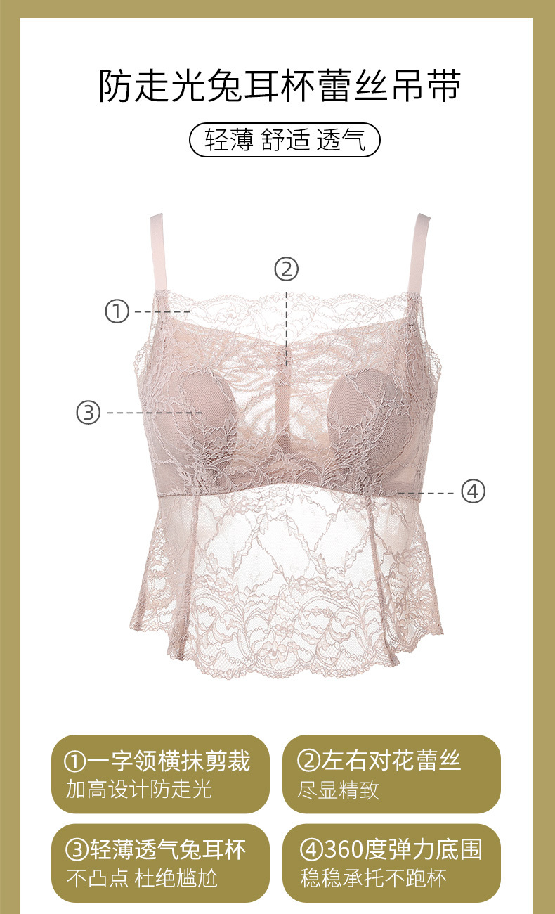 2026 봄/여름 라텍스 토끼귀컵 레이스 멜빵 메모리 소프트 스틸링 컵이 흘러내리지 않는 얇고 통기성이 좋으며 피부 친화적인 슬리밍 여성용 모델