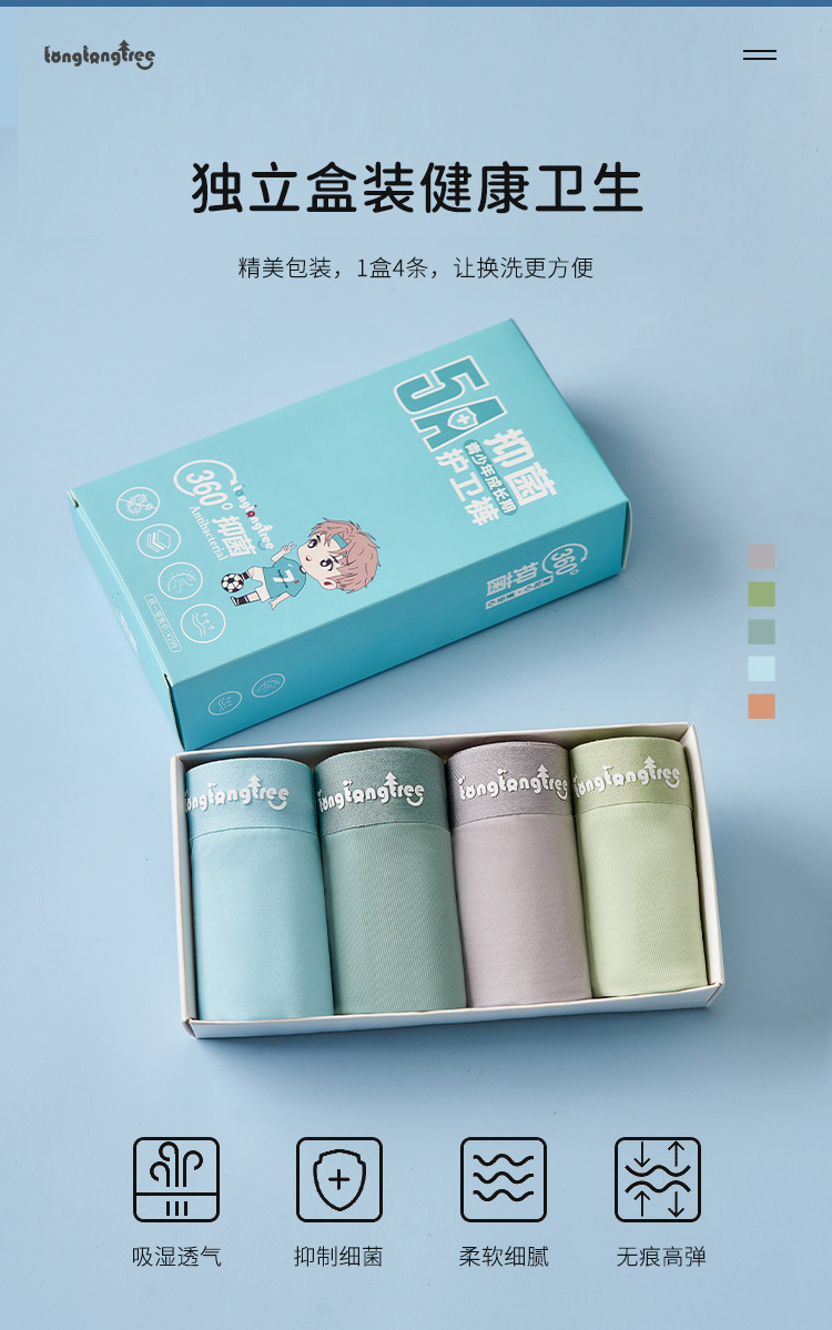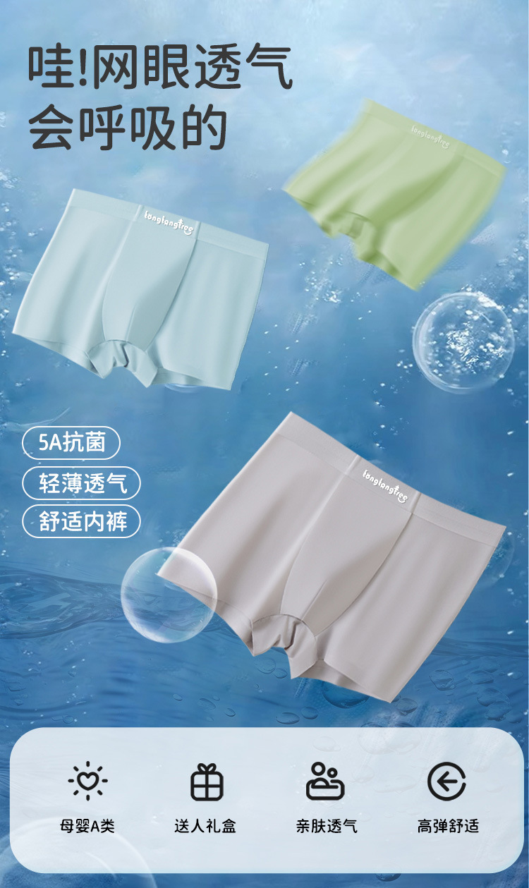 Tongtongshu 5A 항균 박스형 청소년 바지 원활한 얼음 실크 고탄성 통기성 청소년 소년 복서 팬티