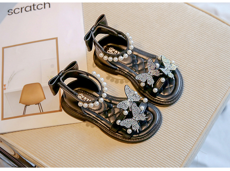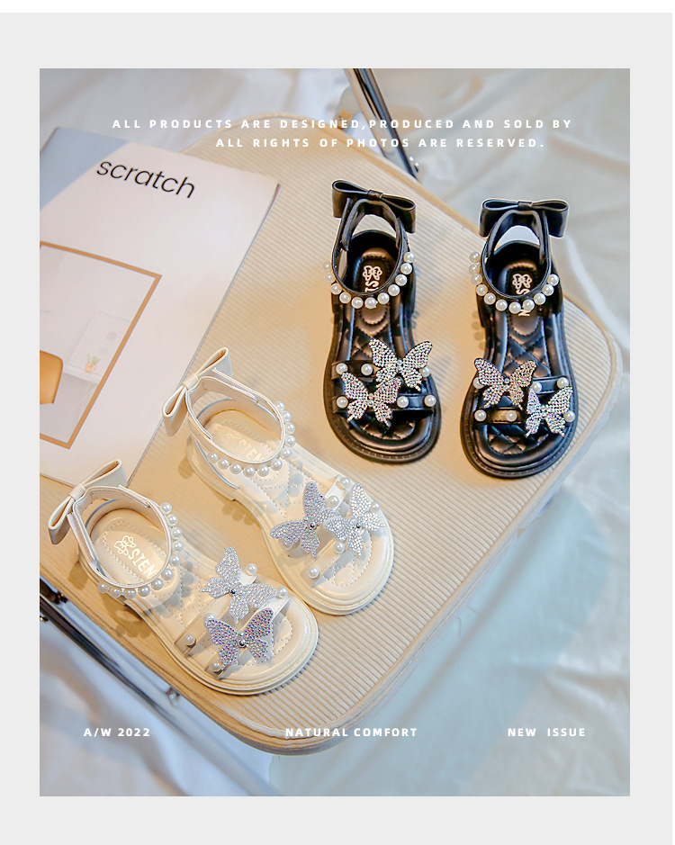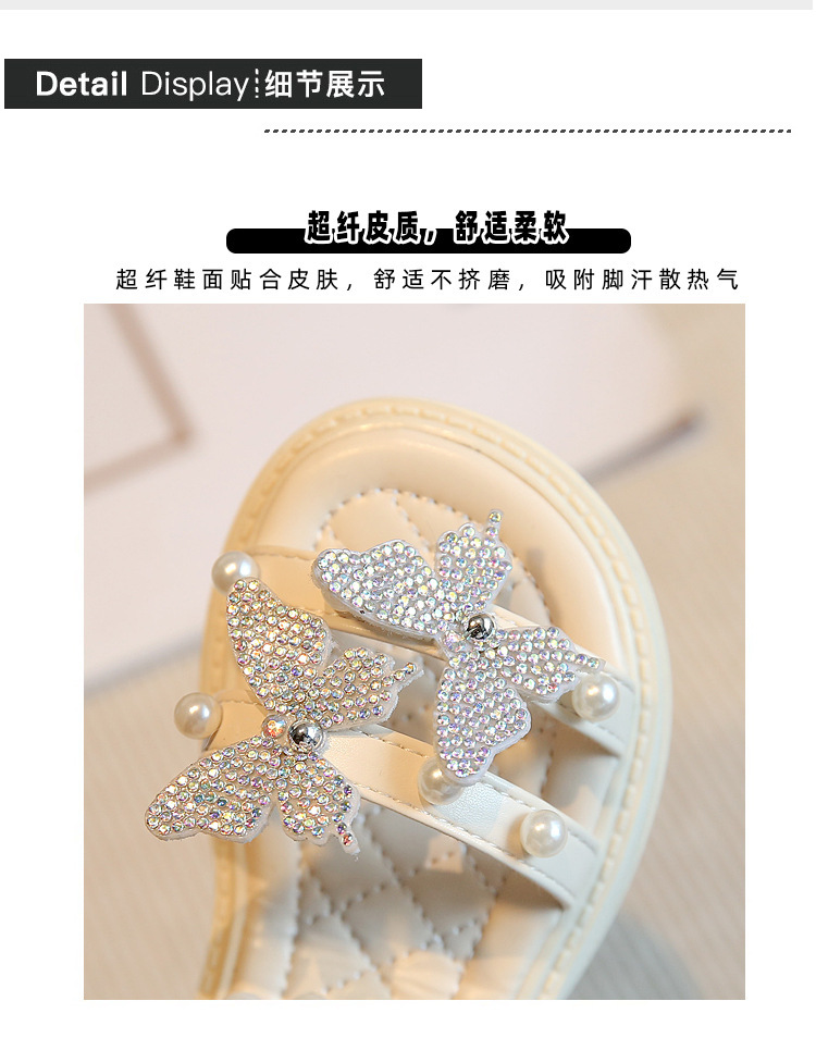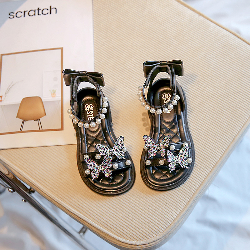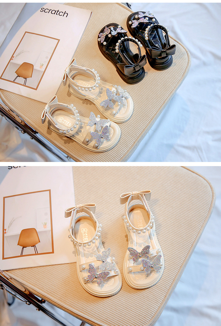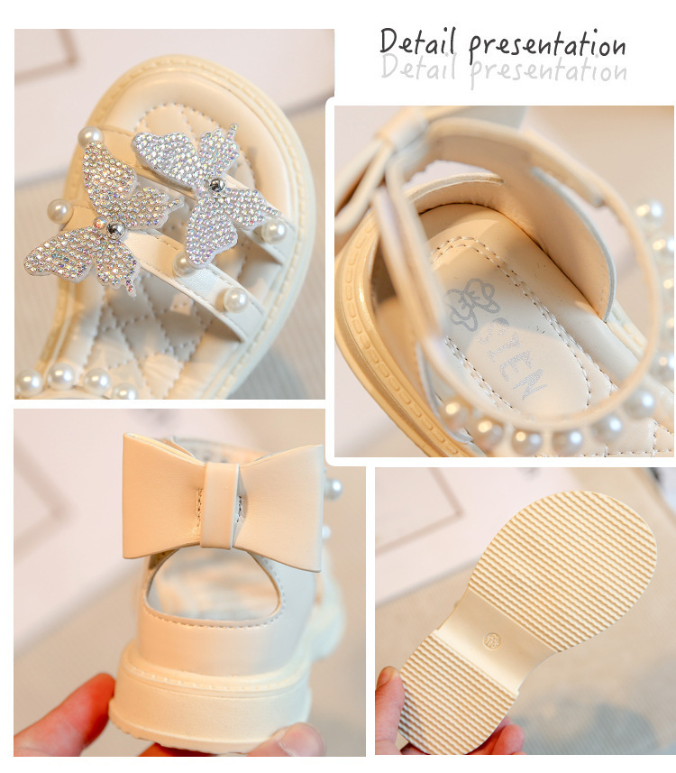 여자 모조 다이아몬드 샌들 2024 여름 새로운 스타일의 공주 신발 소녀 가방 뒤꿈치 로마 신발 어린이 비치 신발
