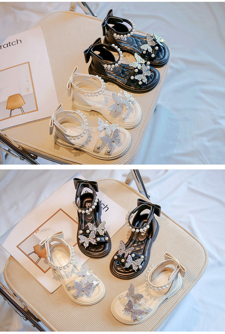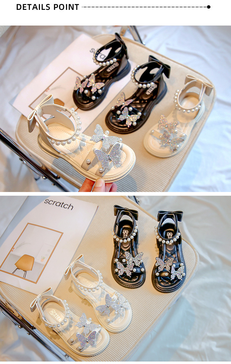 여자 모조 다이아몬드 샌들 2024 여름 새로운 스타일의 공주 신발 소녀 가방 뒤꿈치 로마 신발 어린이 비치 신발스토어 가기