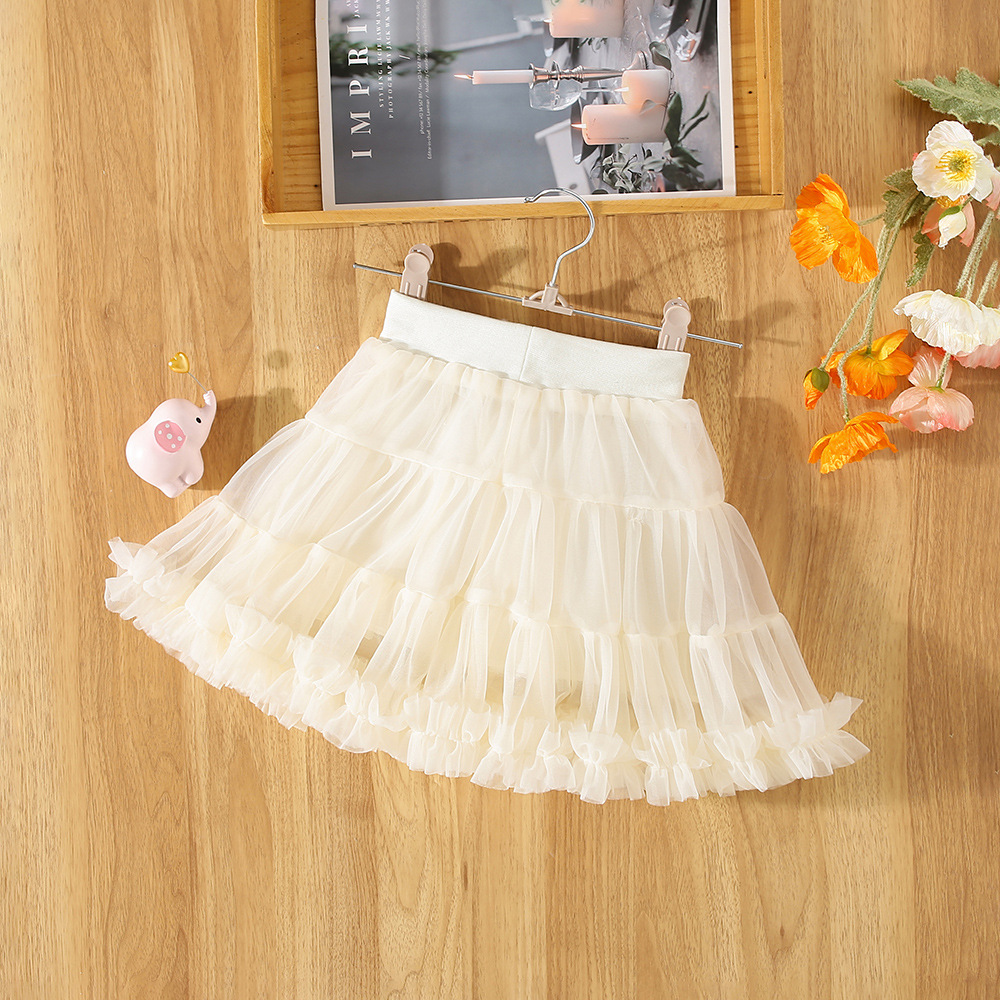 여름 어린이 착용 아기 소녀 새로운 퍼프 메쉬 케이크 스커트 소녀의 달콤한 캐주얼 솔리드 컬러 레이스 스커트