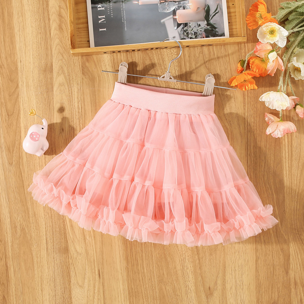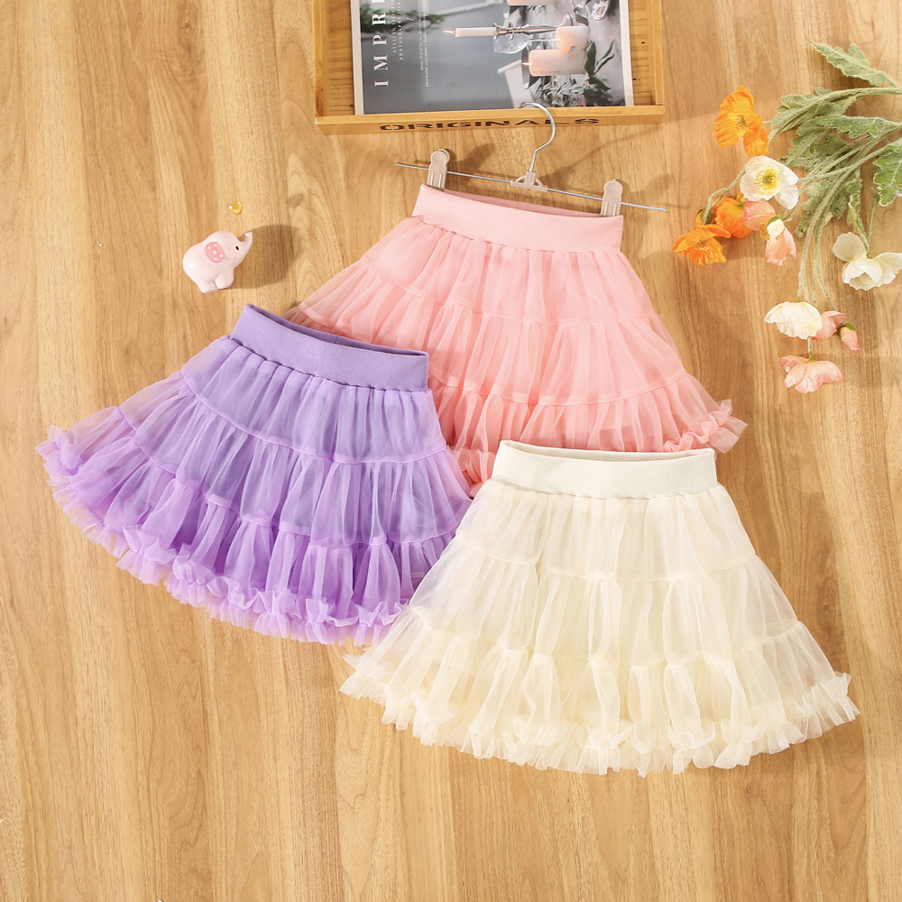 여름 어린이 착용 아기 소녀 새로운 퍼프 메쉬 케이크 스커트 소녀의 달콤한 캐주얼 솔리드 컬러 레이스 스커트스토어 가기