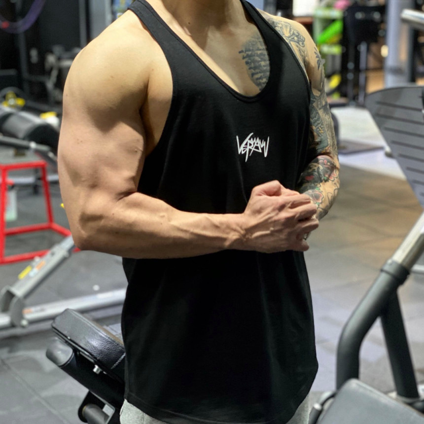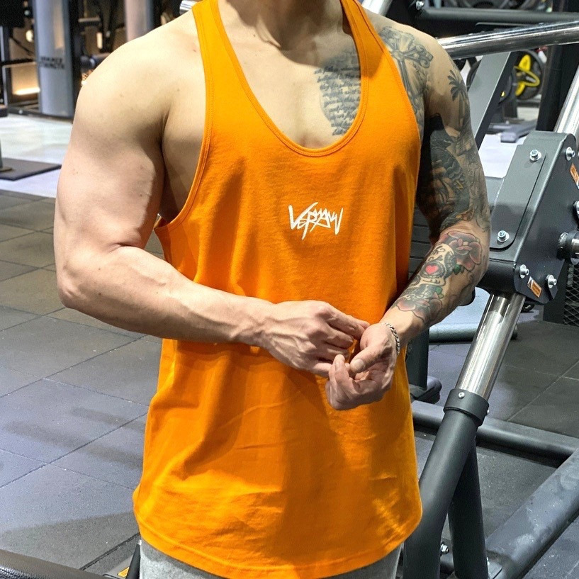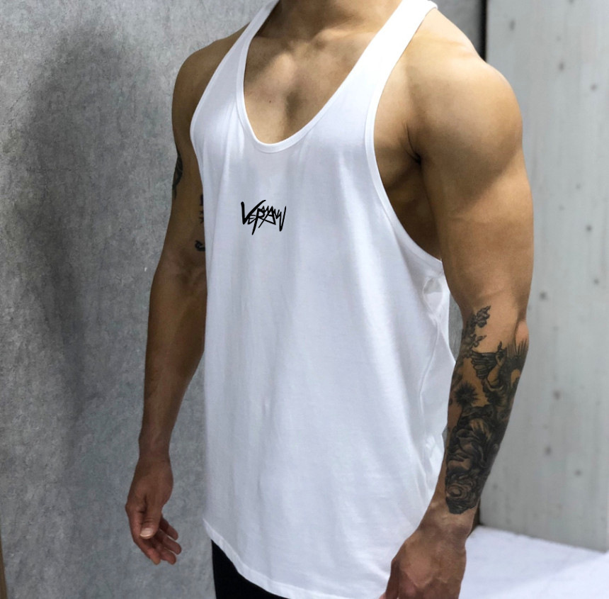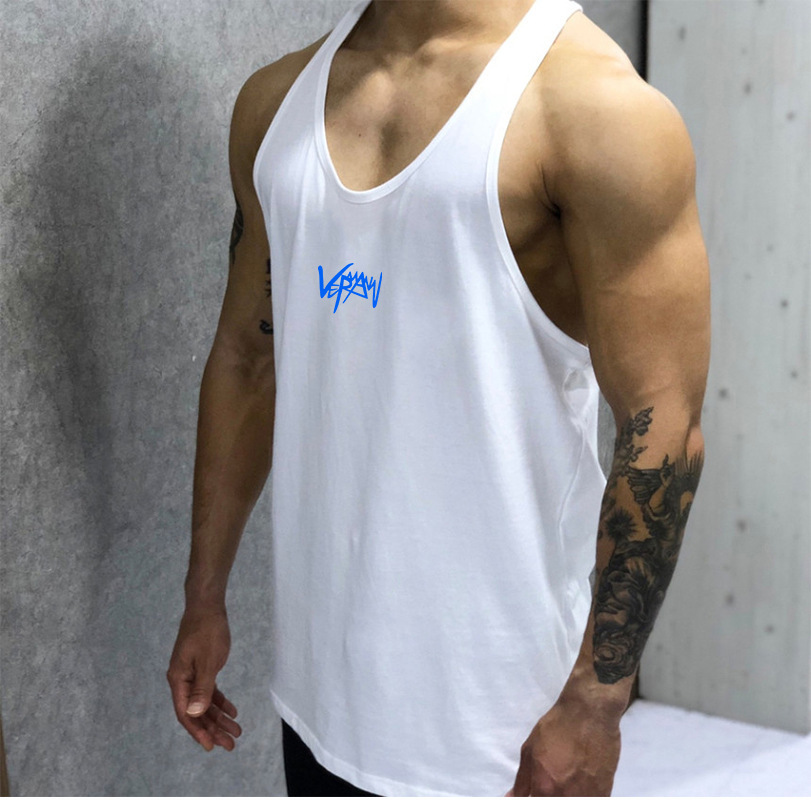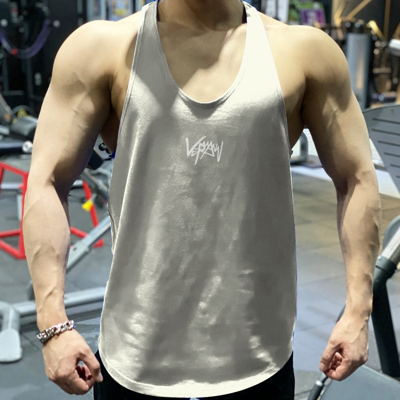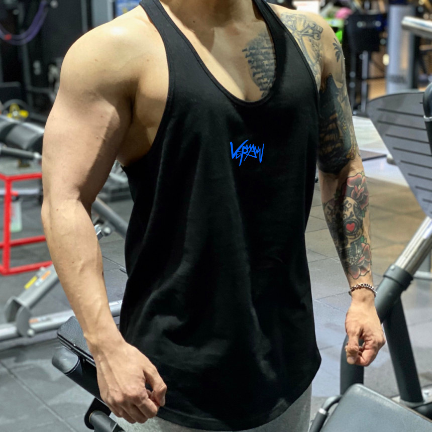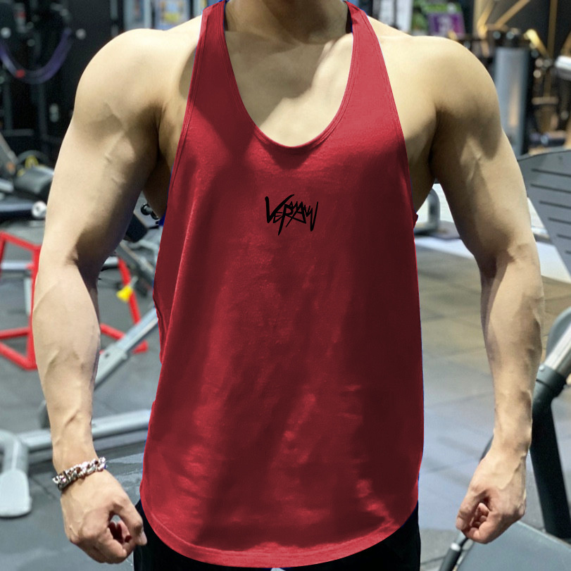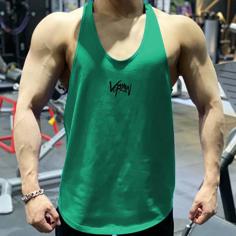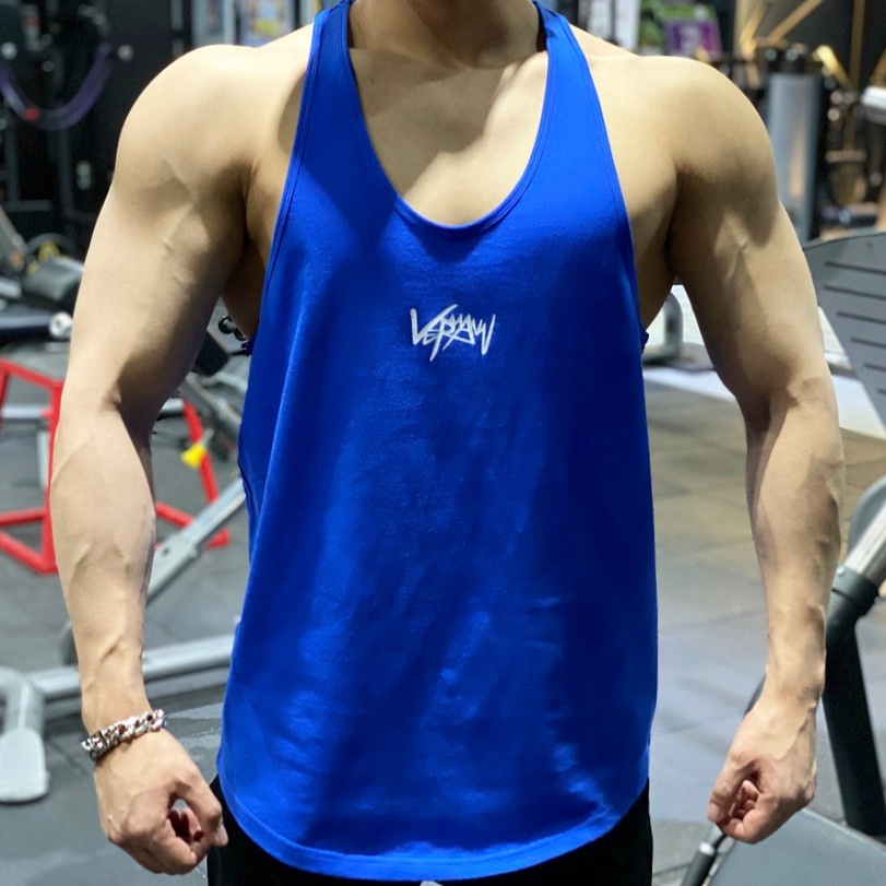 2020 새로운 스포츠 조끼 남자 근육 형제 I-캐릭터 허리 코트 훈련 민소매 티셔츠 유행 남성 느슨한 피트니스 옷스토어 가기