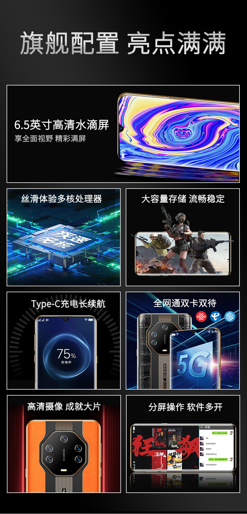 새로운 정품 라이브 휴대 전화 백 위안 플래그십 모든 Netcom 스마트 폰 안드로이드 슈퍼 긴 대기 공장 스트레이트 헤어