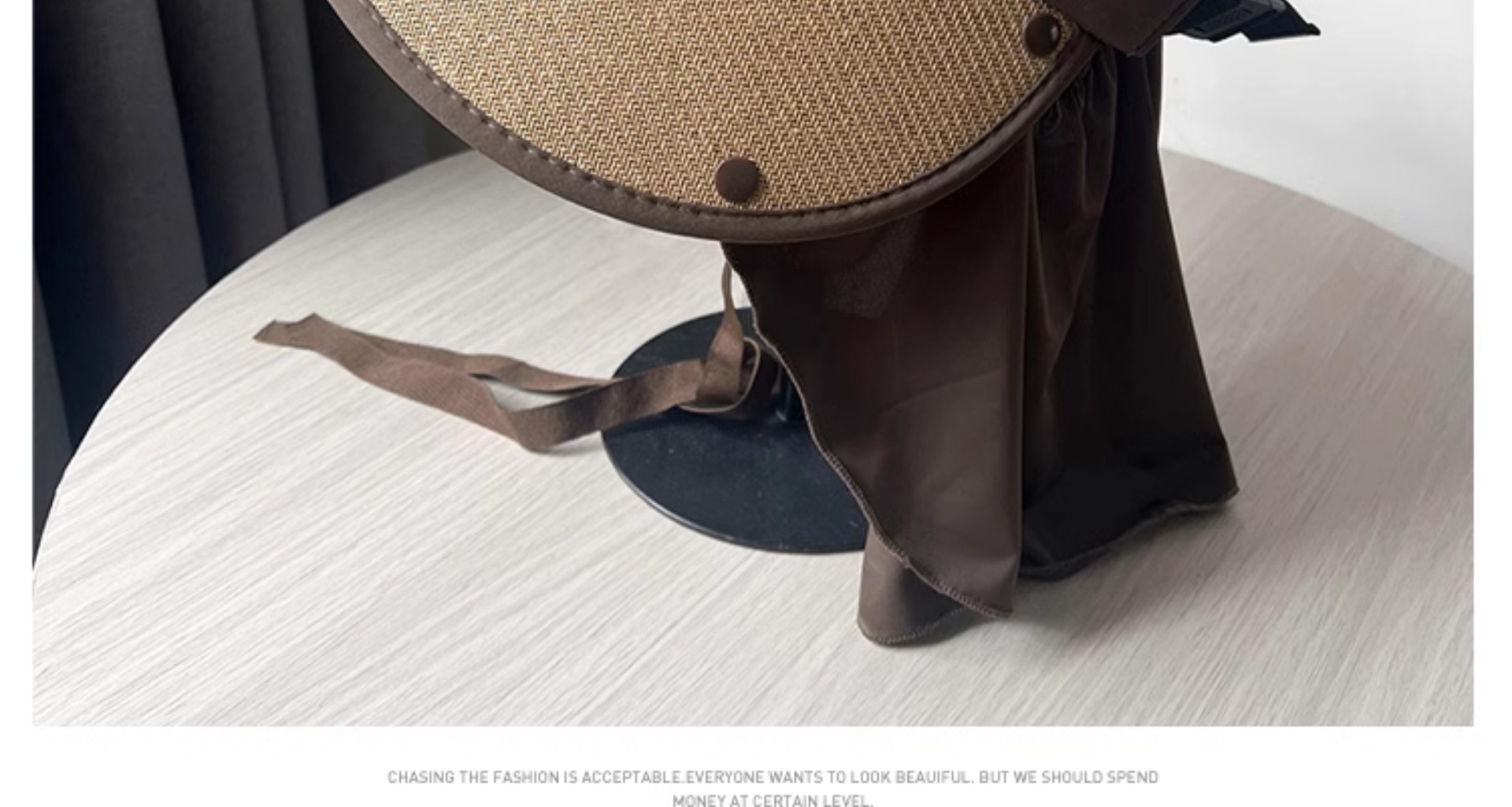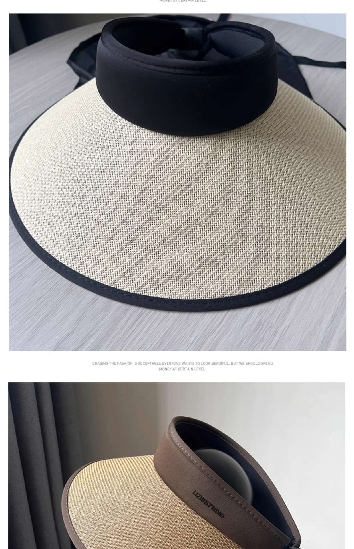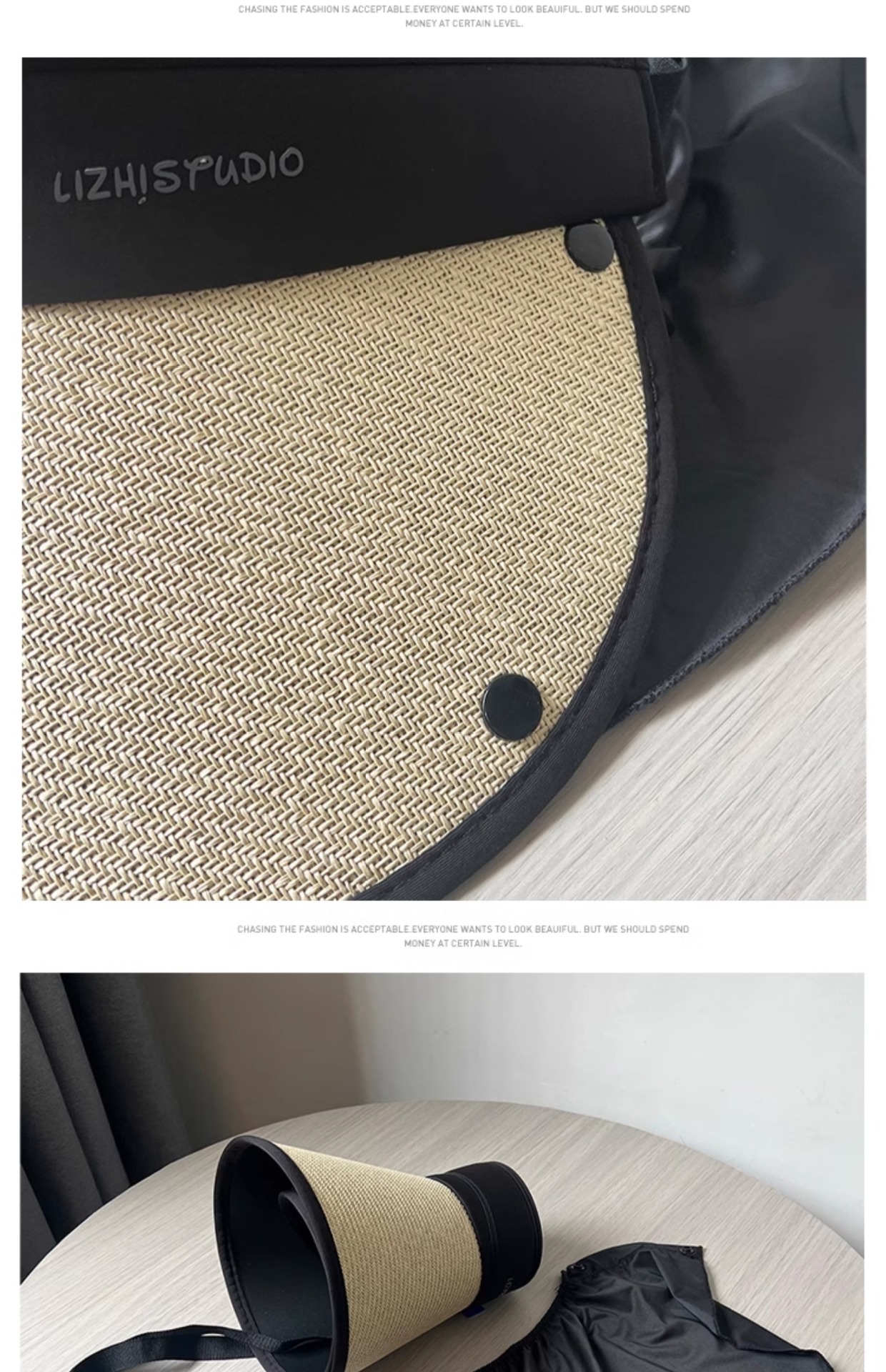 • 베이지-블랙 엣지 [탈부착 숄 라지 밀짚모자]