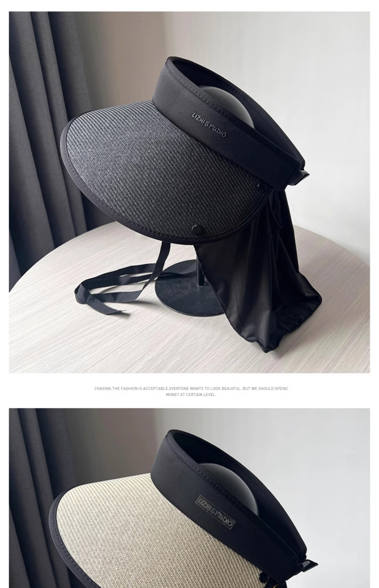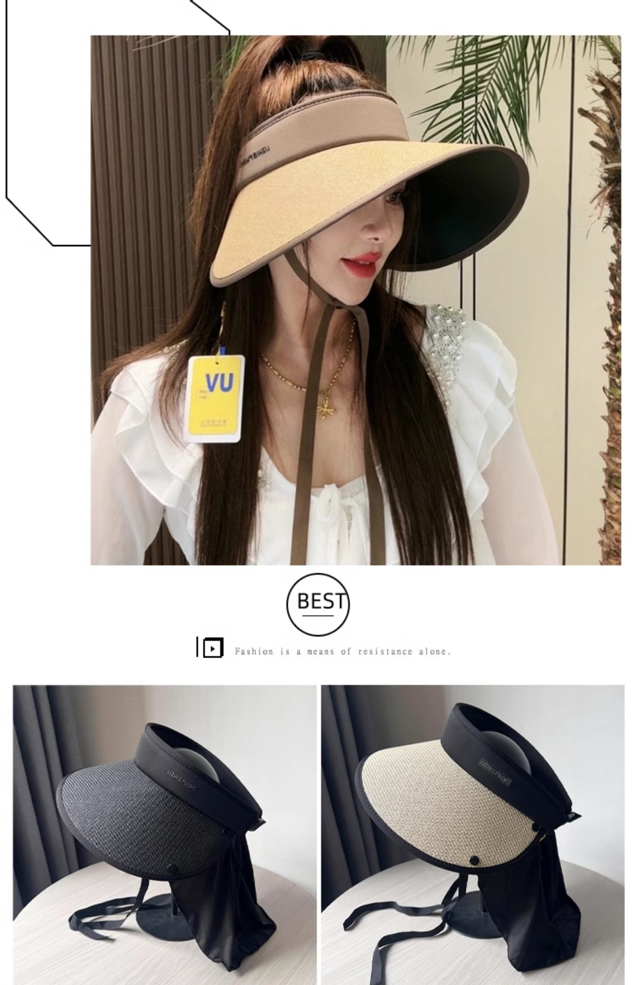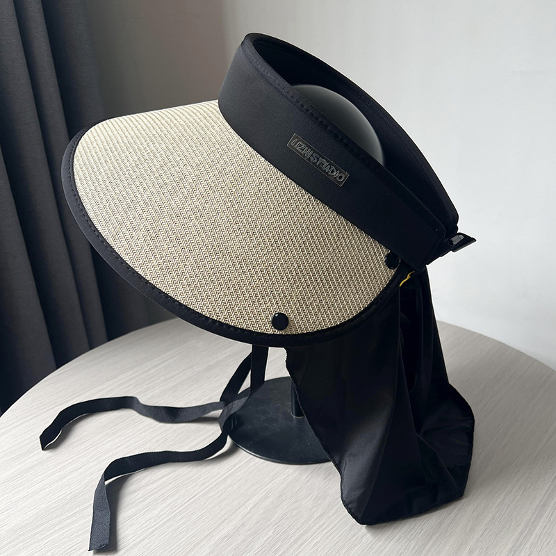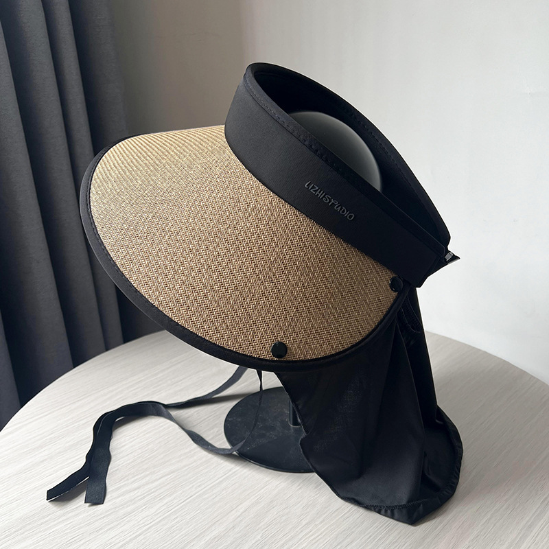 검은 고무 빈 탑 선 스크린 모자 여성의 여름 자외선 방지 사이클링 목 보호 밀짚 지팡이 모자 접이식 해변 태양 모자