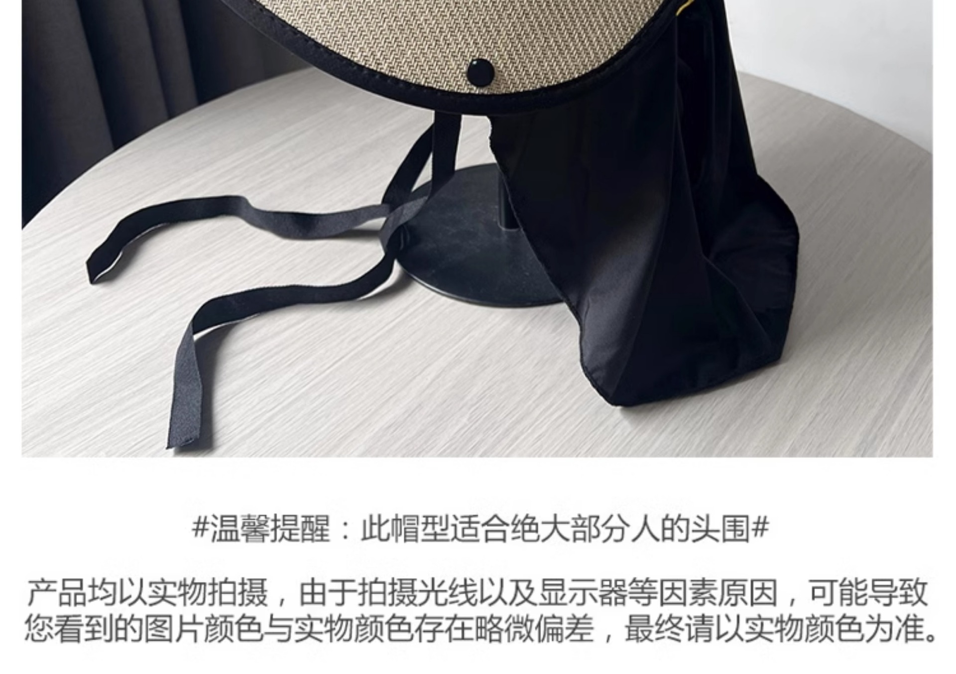 • 블랙 [탈착식 목도리 밀짚 모자]
