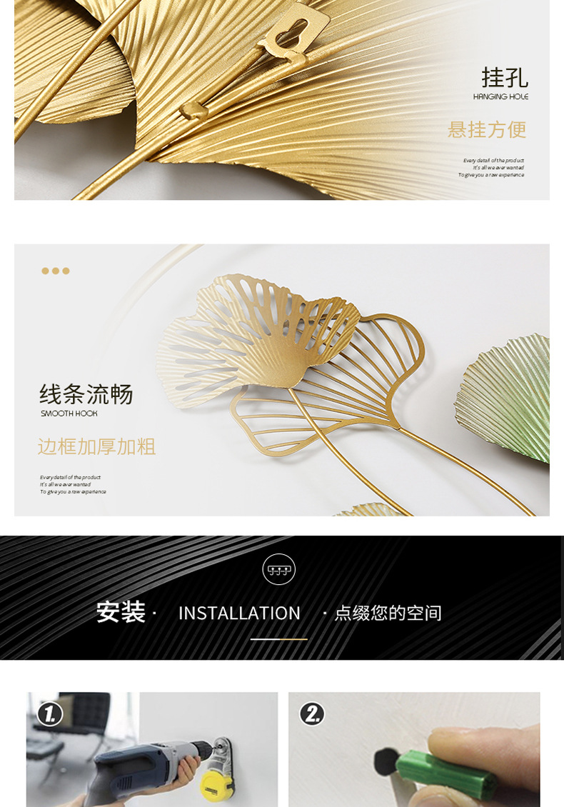 금속 공예 국경 철 잎 장식 창조적 인 장식 홈 벽 벽 장식 펜던트 거실 시뮬레이션