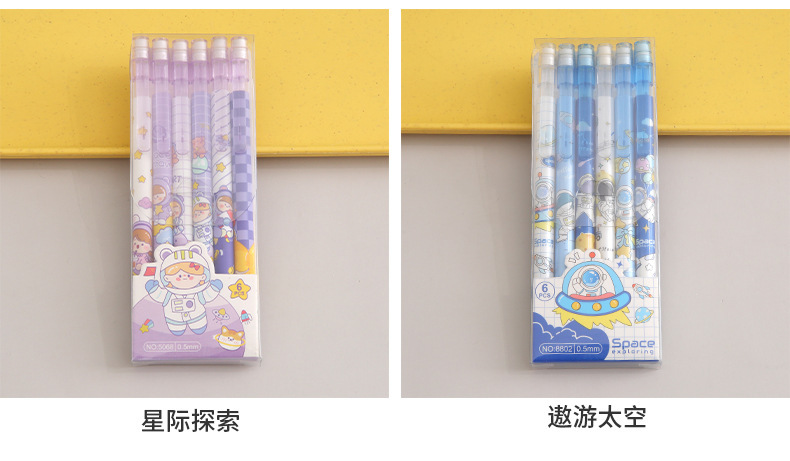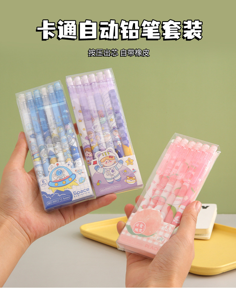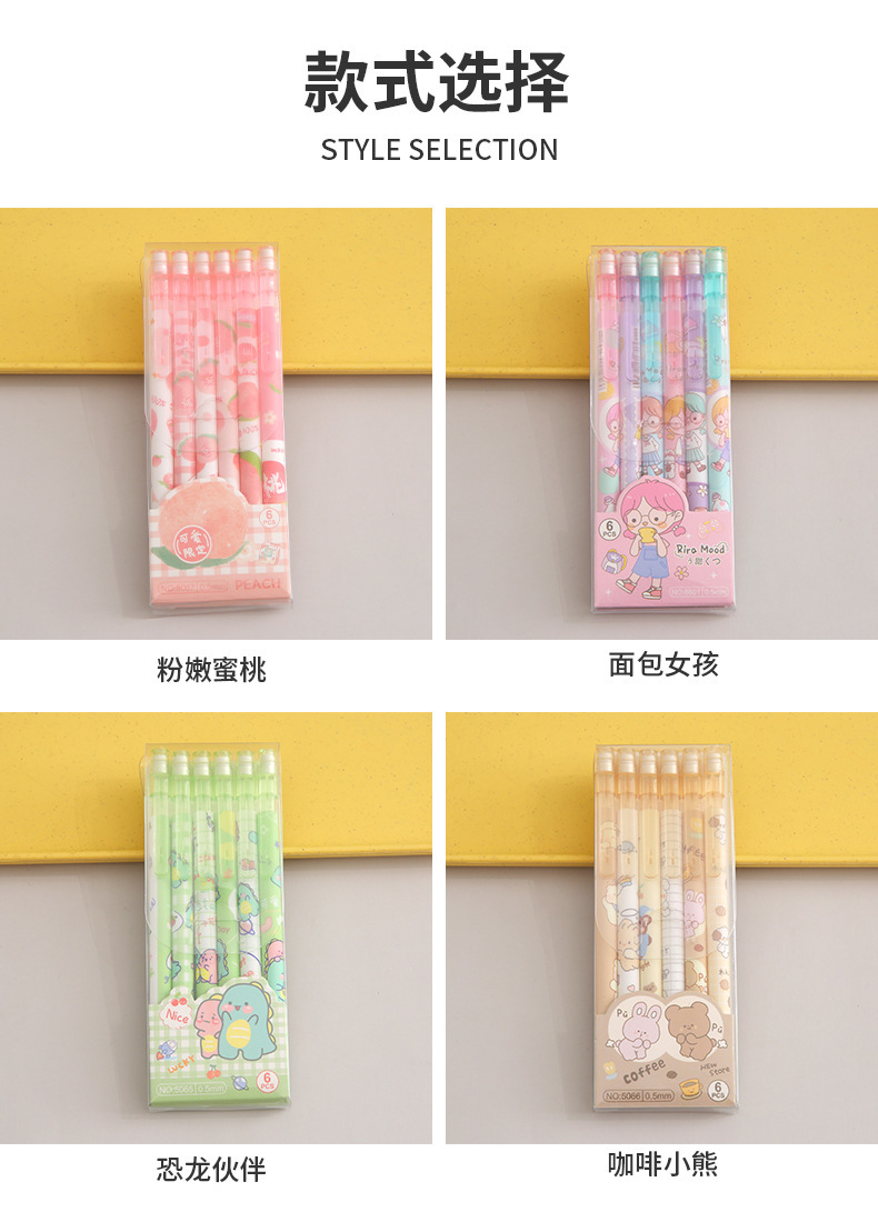지우개 컷 프리 프레스 연필 자동 연필로 만화 귀여운 초등학교 학생 6 팩 활동 연필 크리에이티브스토어 가기