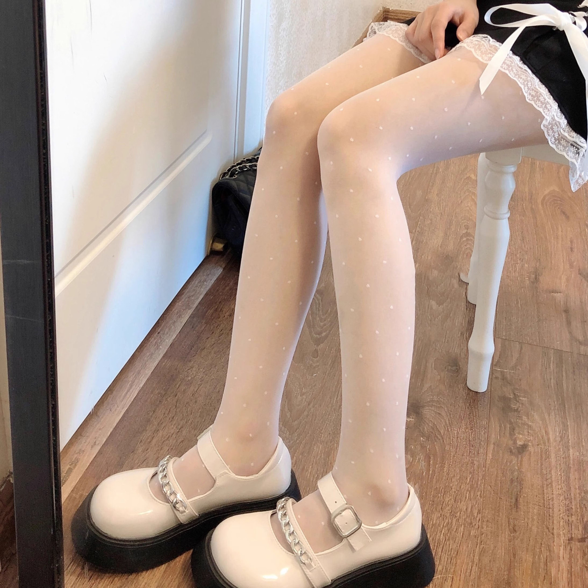 • 2410 # 폴카 도트 화이트 스타킹