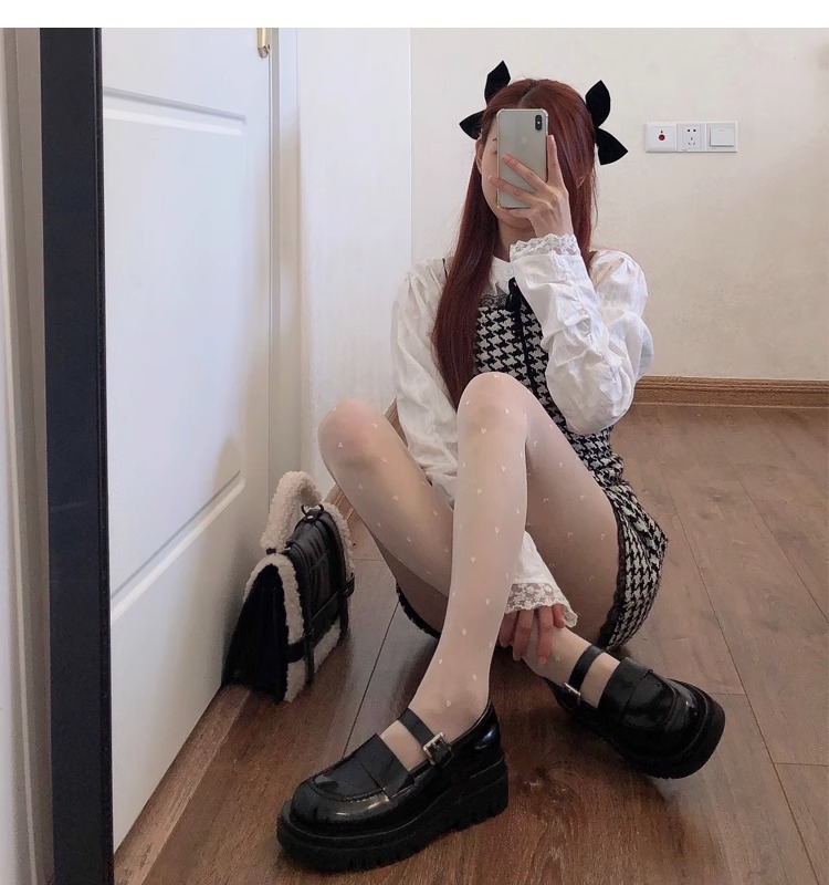 Jk 일본 민트 맘보 그린 안티 걸림 스타킹 여성용 로리타 여름 얇은 보우 프린트 팬티 스타킹 여성용