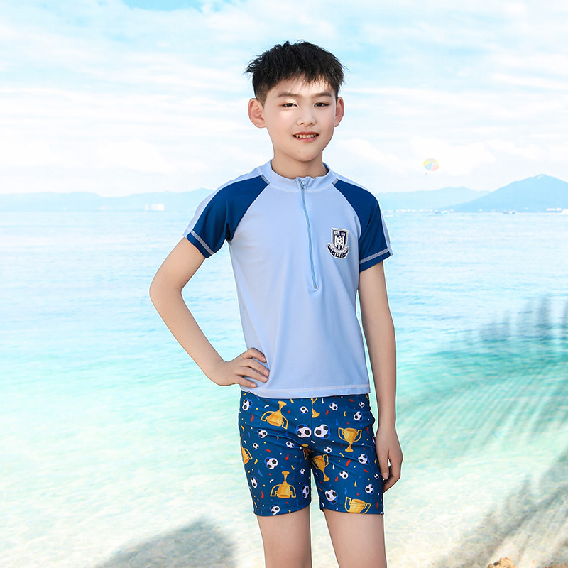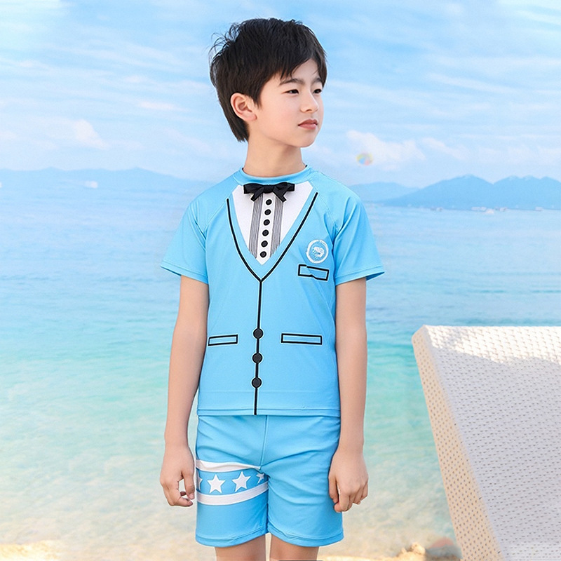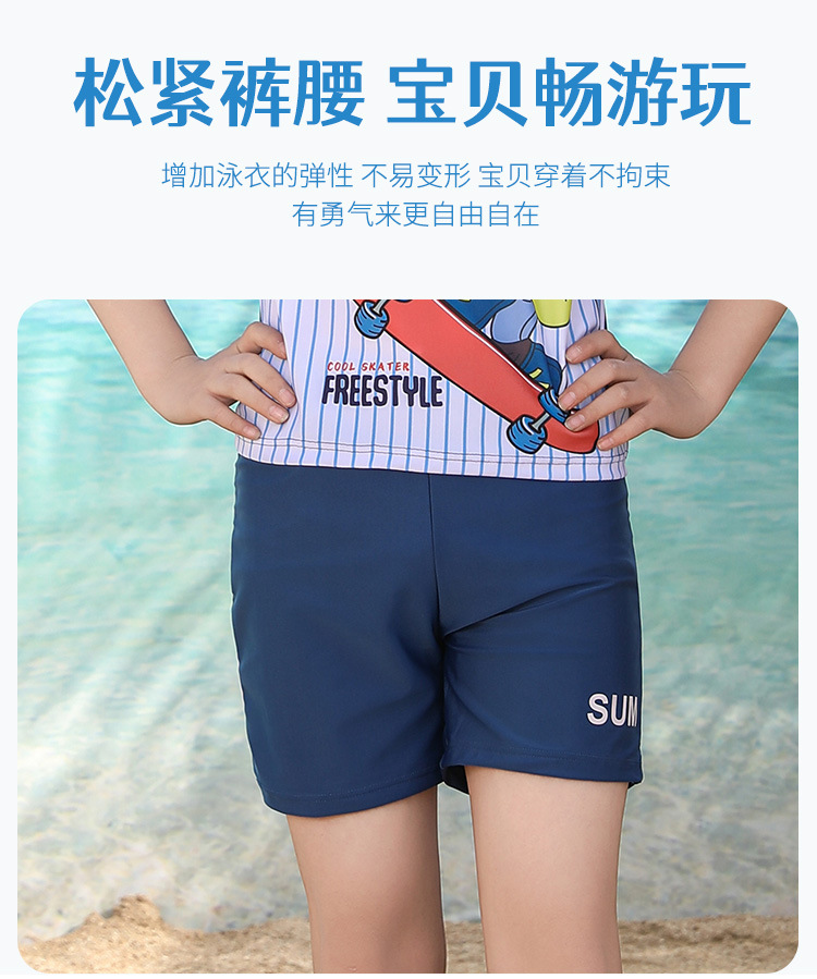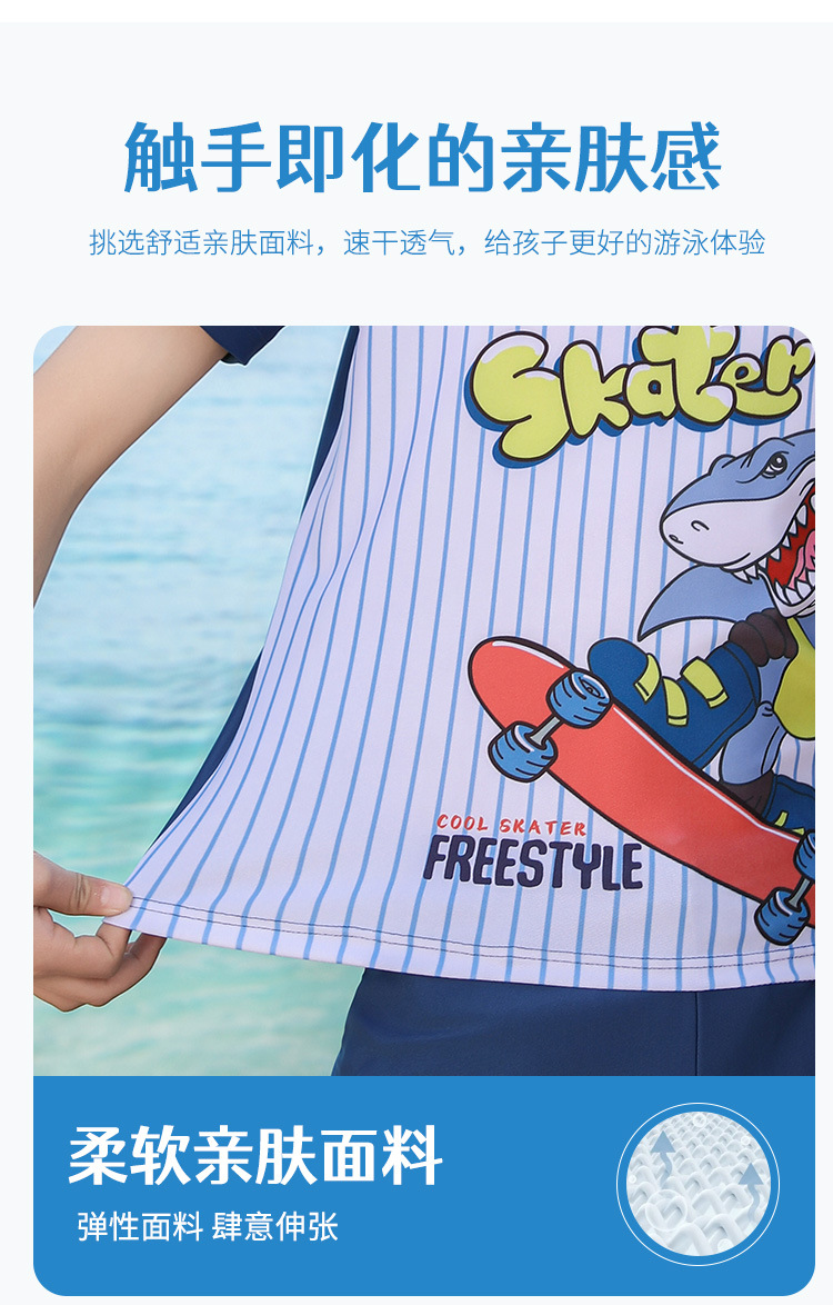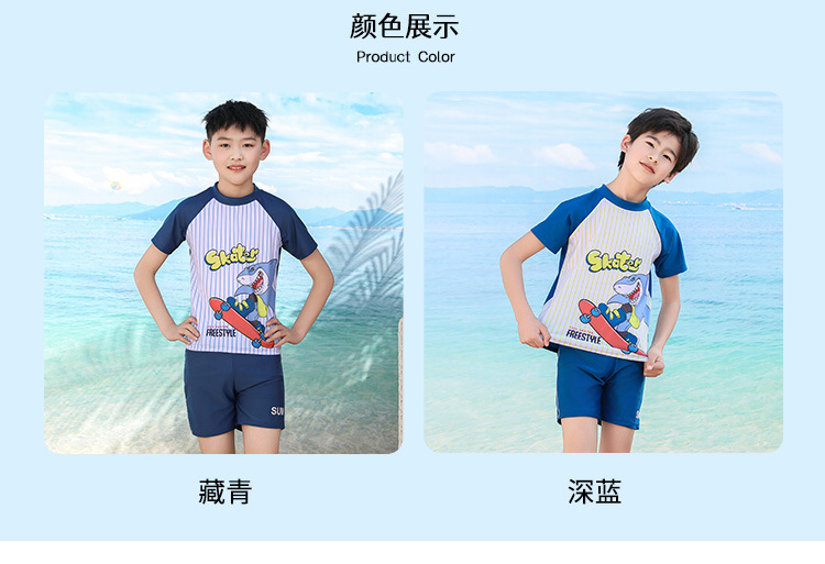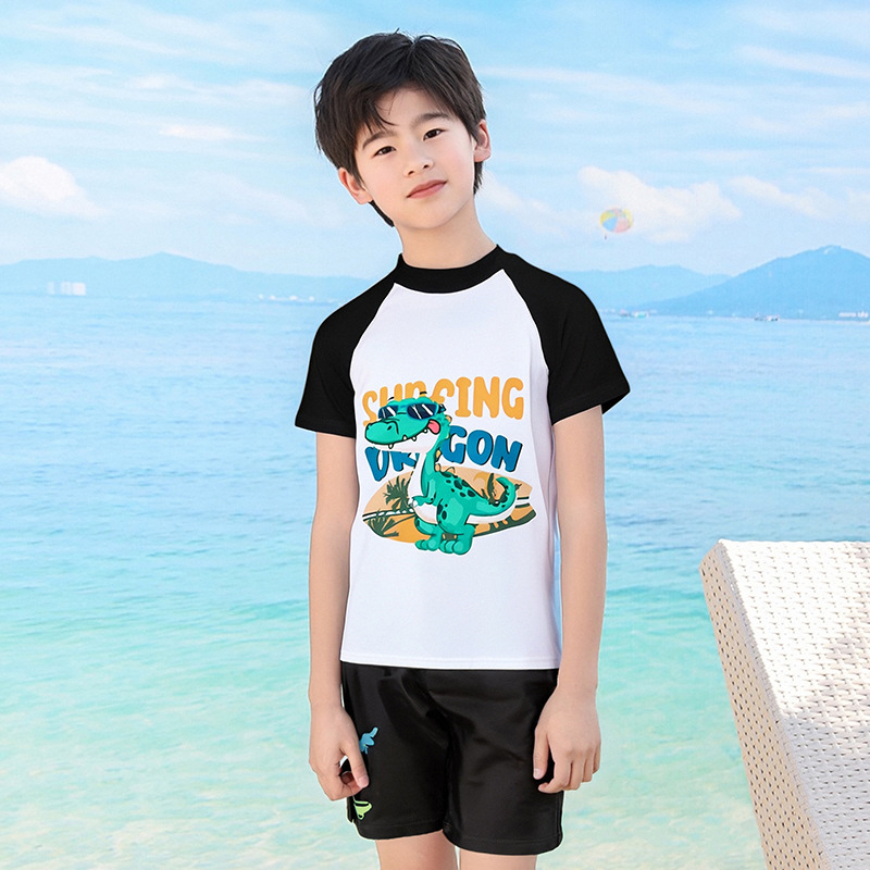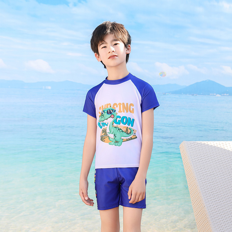[고급 품질] 어린이 수영복, 여름용 중대형 어린이용 만화 상어 자외선 차단 속건 수영복 공장스토어 가기