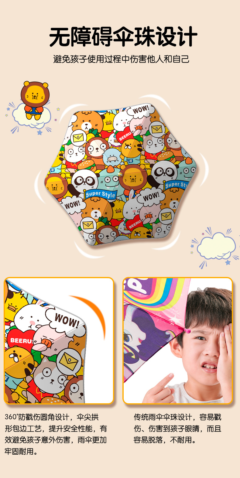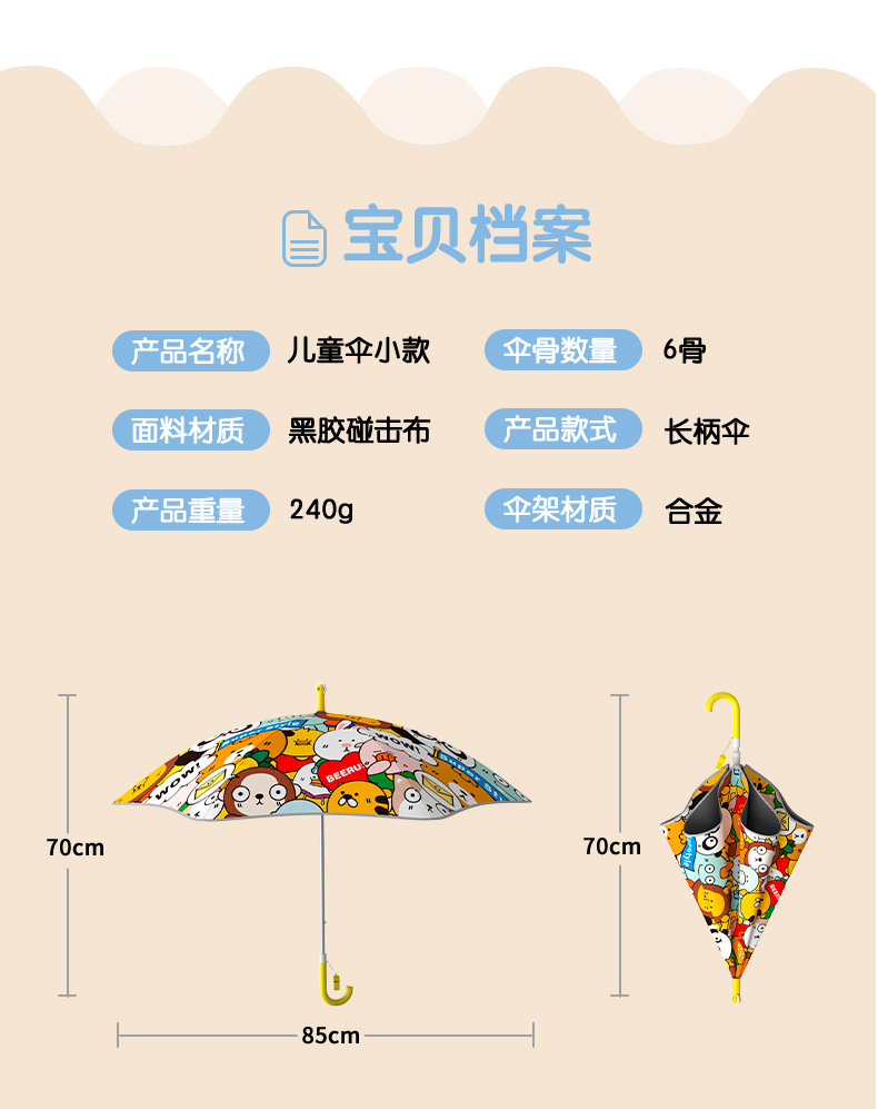 귀여운 라운드 코너 어린이 우산 학생의 우산 여성용 긴 손잡이 검은 고무 선 스크린 우산 써니 비와 남성용 맑은 우산스토어 가기