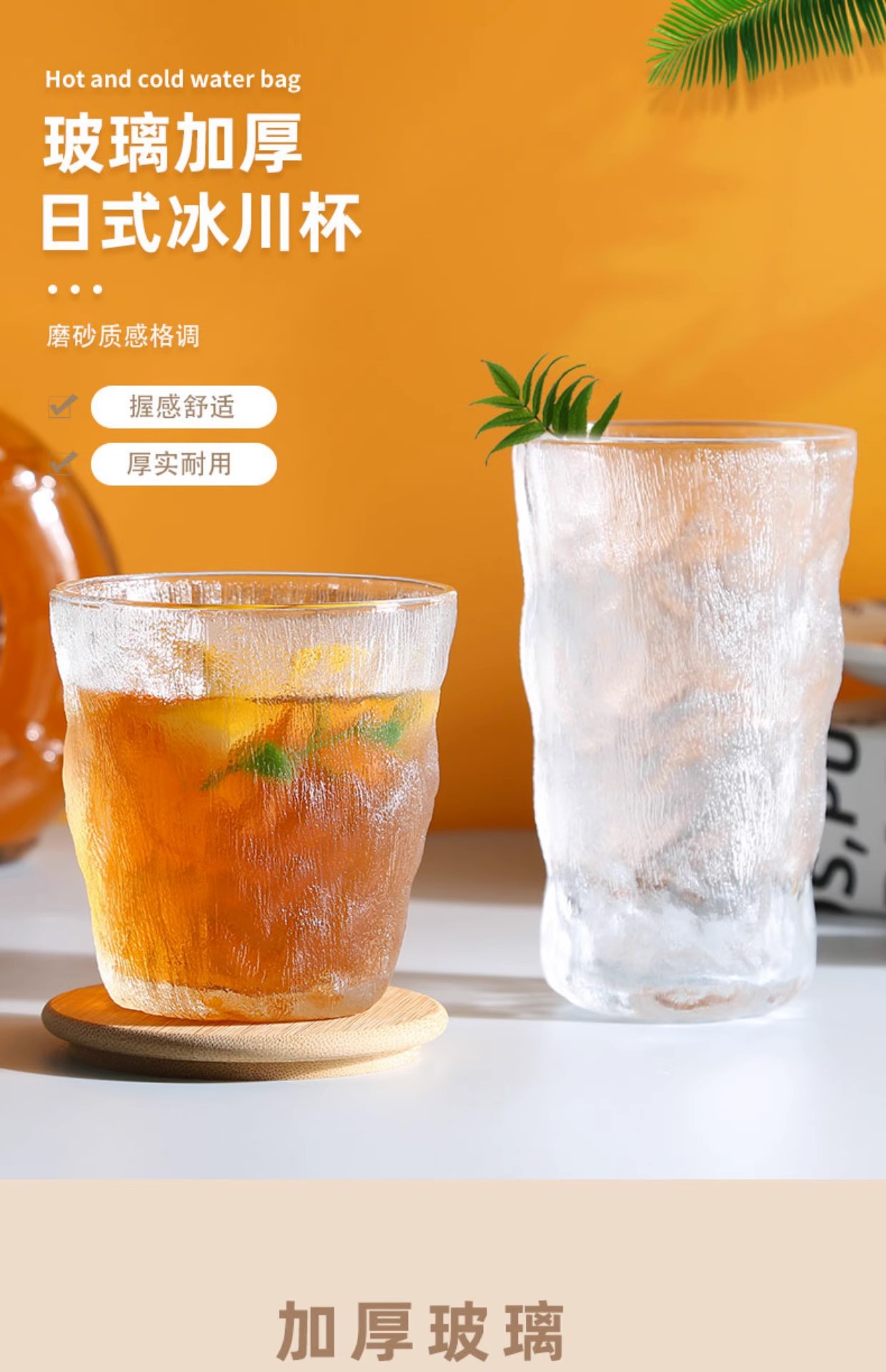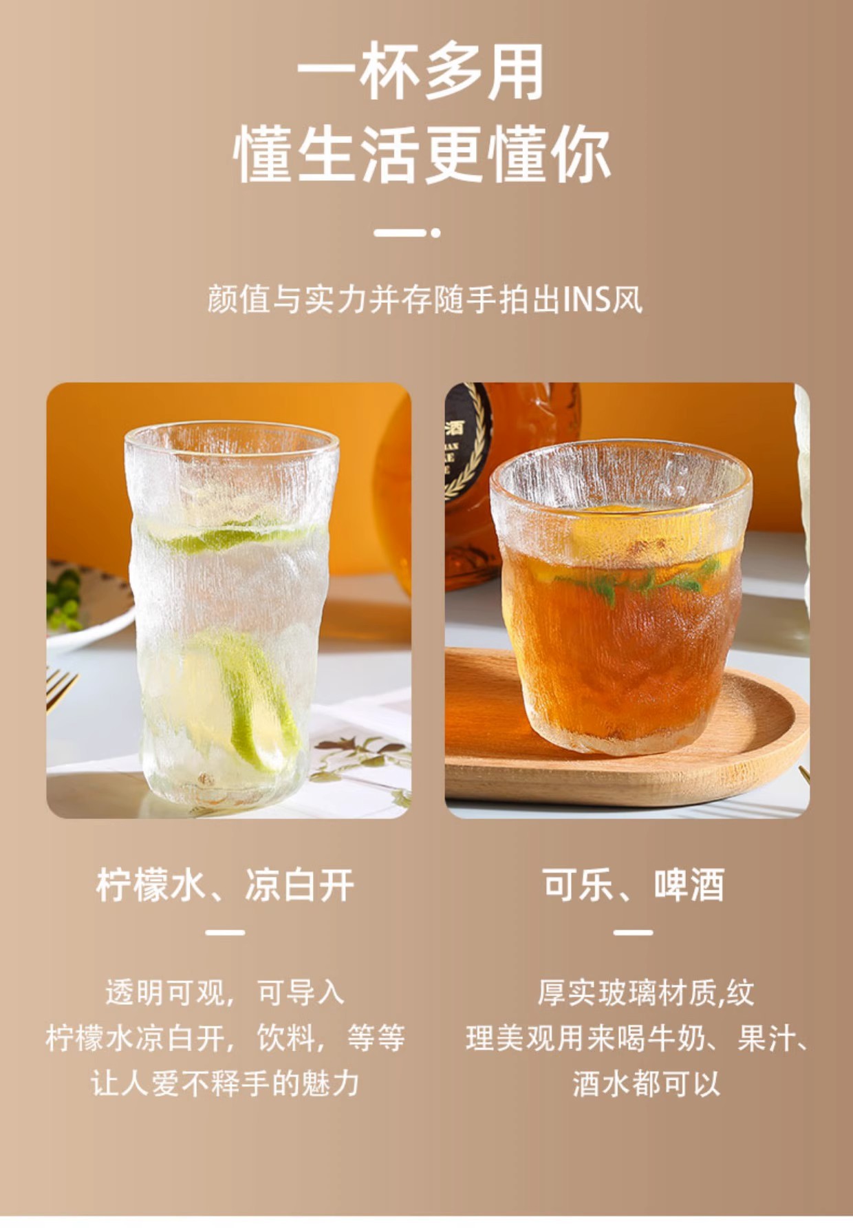 빙하컵 유리 물컵 일본식 심플 빨대컵 가정용 무광 질감 위스키 주스 선물용 원형 빨대컵스토어 가기
