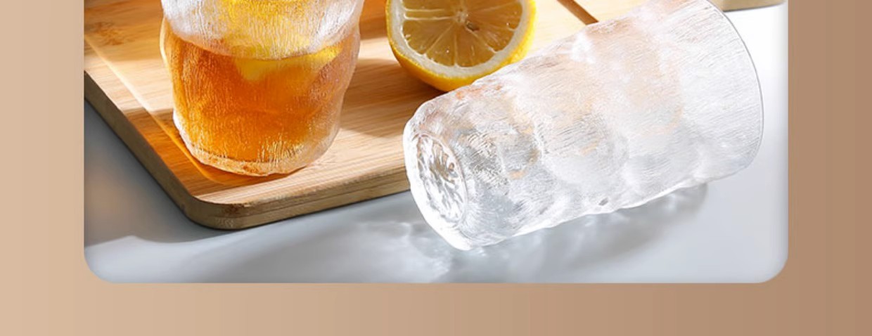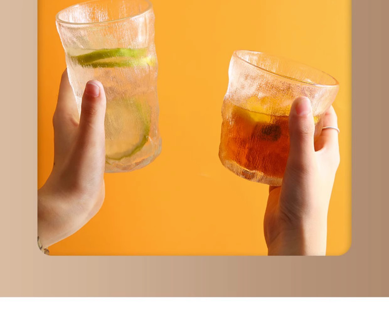 빙하컵 유리 물컵 일본식 심플 빨대컵 가정용 무광 질감 위스키 주스 선물용 원형 빨대컵
