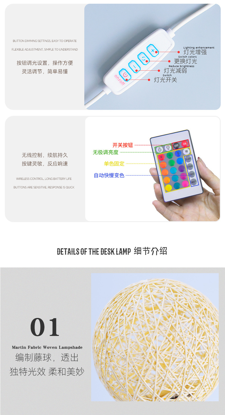 LED 야간 기숙사 등나무 공 빛 주변 선물 라이트 스타 usb 따뜻한 작은 테이블 램프 장식 침실 침실 램프스토어 가기