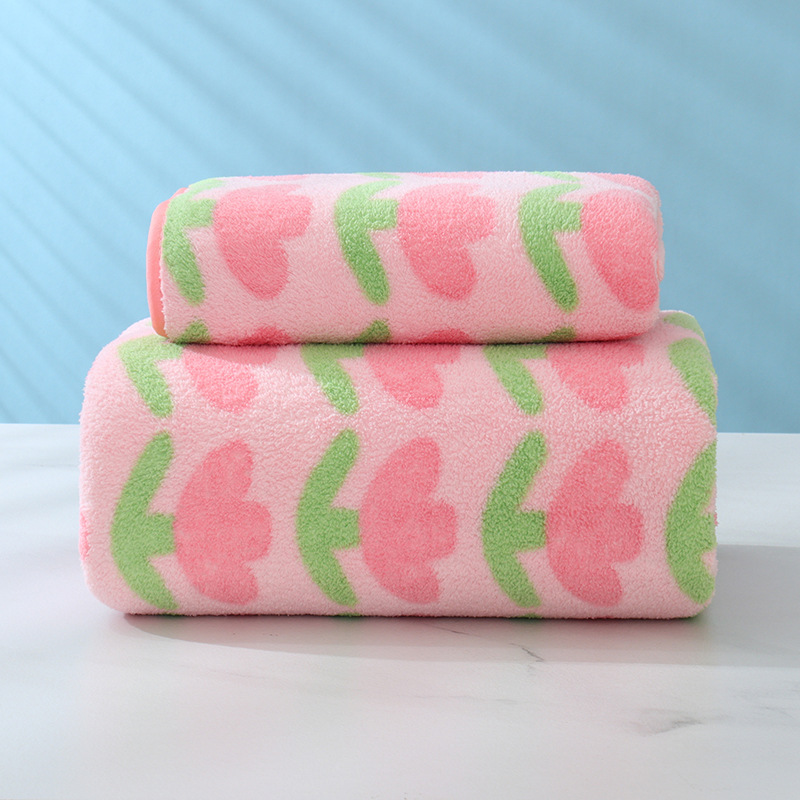 튤립 타월 세트 통기성 부드러운 산호 벨벳 목욕 타월 가정용 일상 목욕 대량 도매 가정용 따뜻한 벨벳