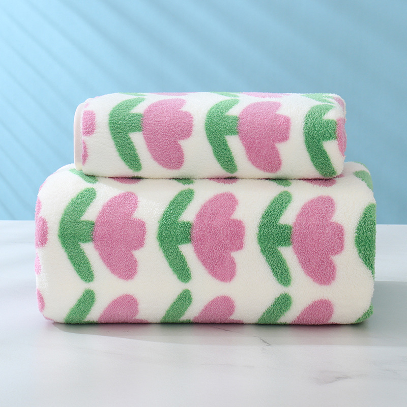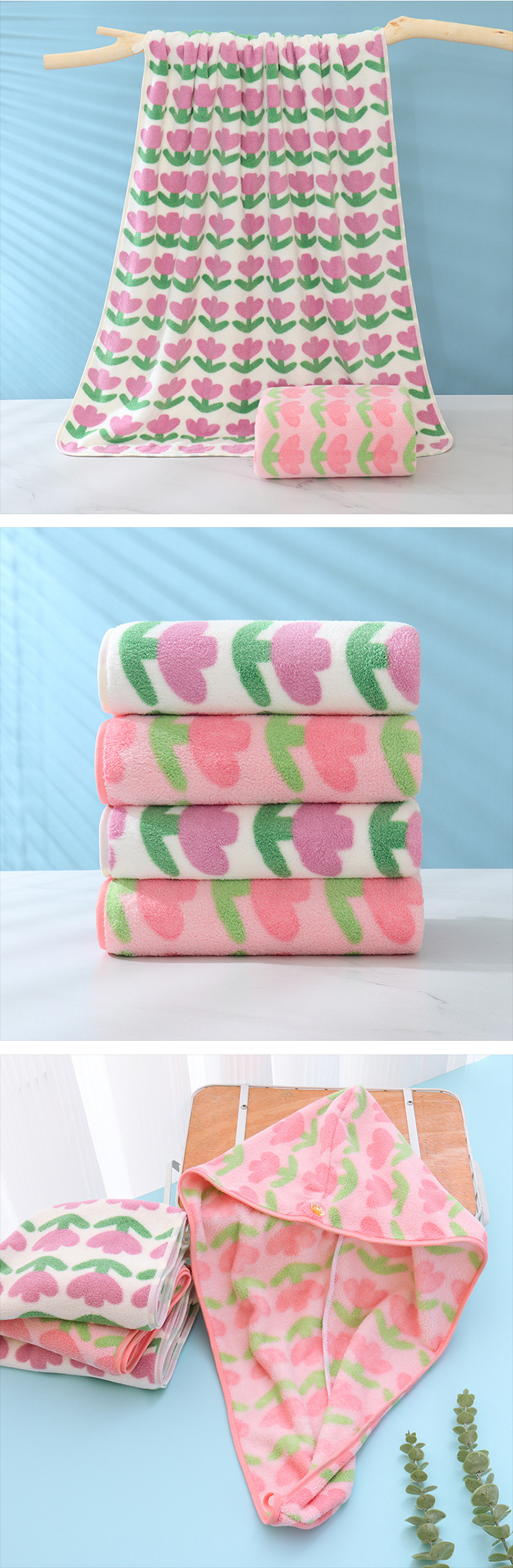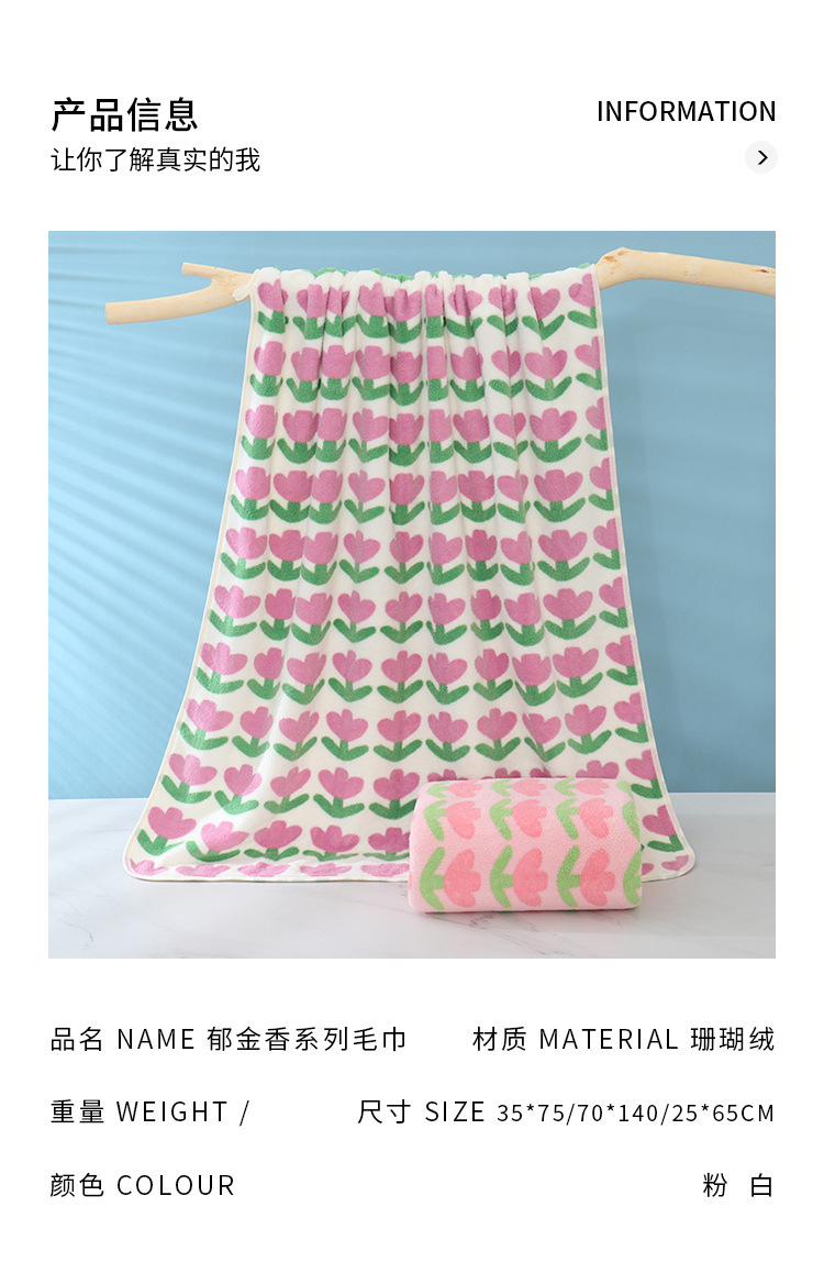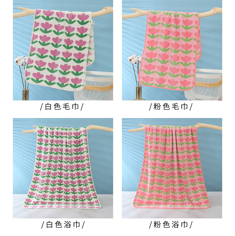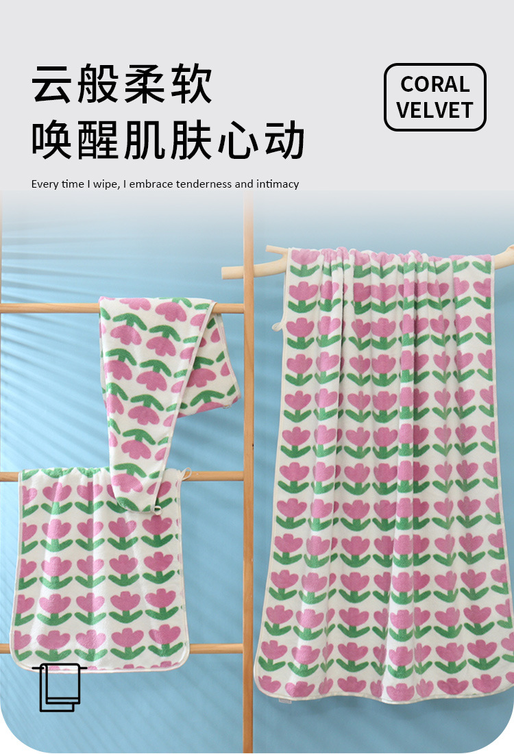 튤립 타월 세트 통기성 부드러운 산호 벨벳 목욕 타월 가정용 일상 목욕 대량 도매 가정용 따뜻한 벨벳스토어 가기