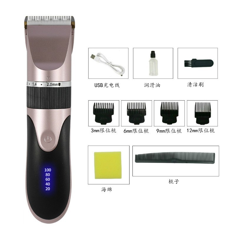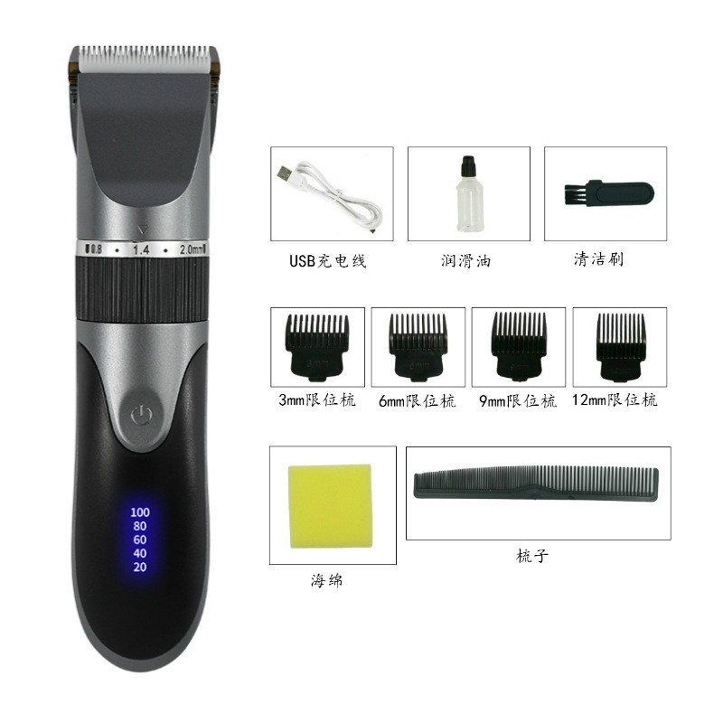 【产品包含】:主机,限位梳*4,说明书、毛刷、油瓶、USB充电线、梳子、海绵