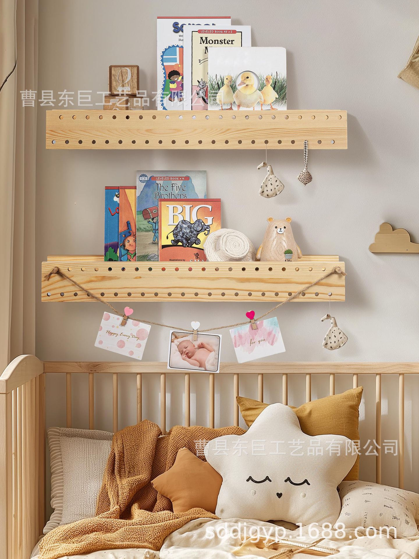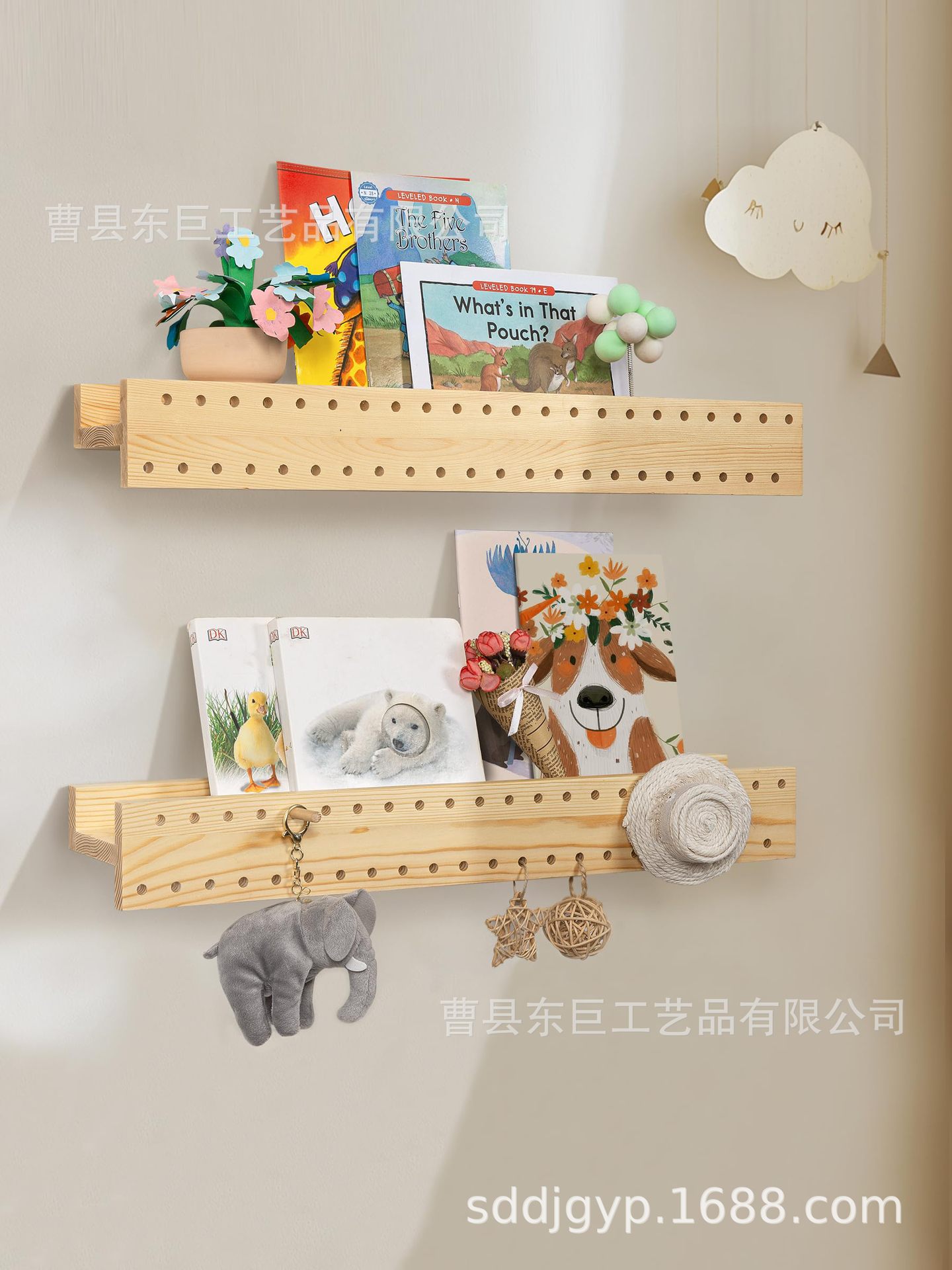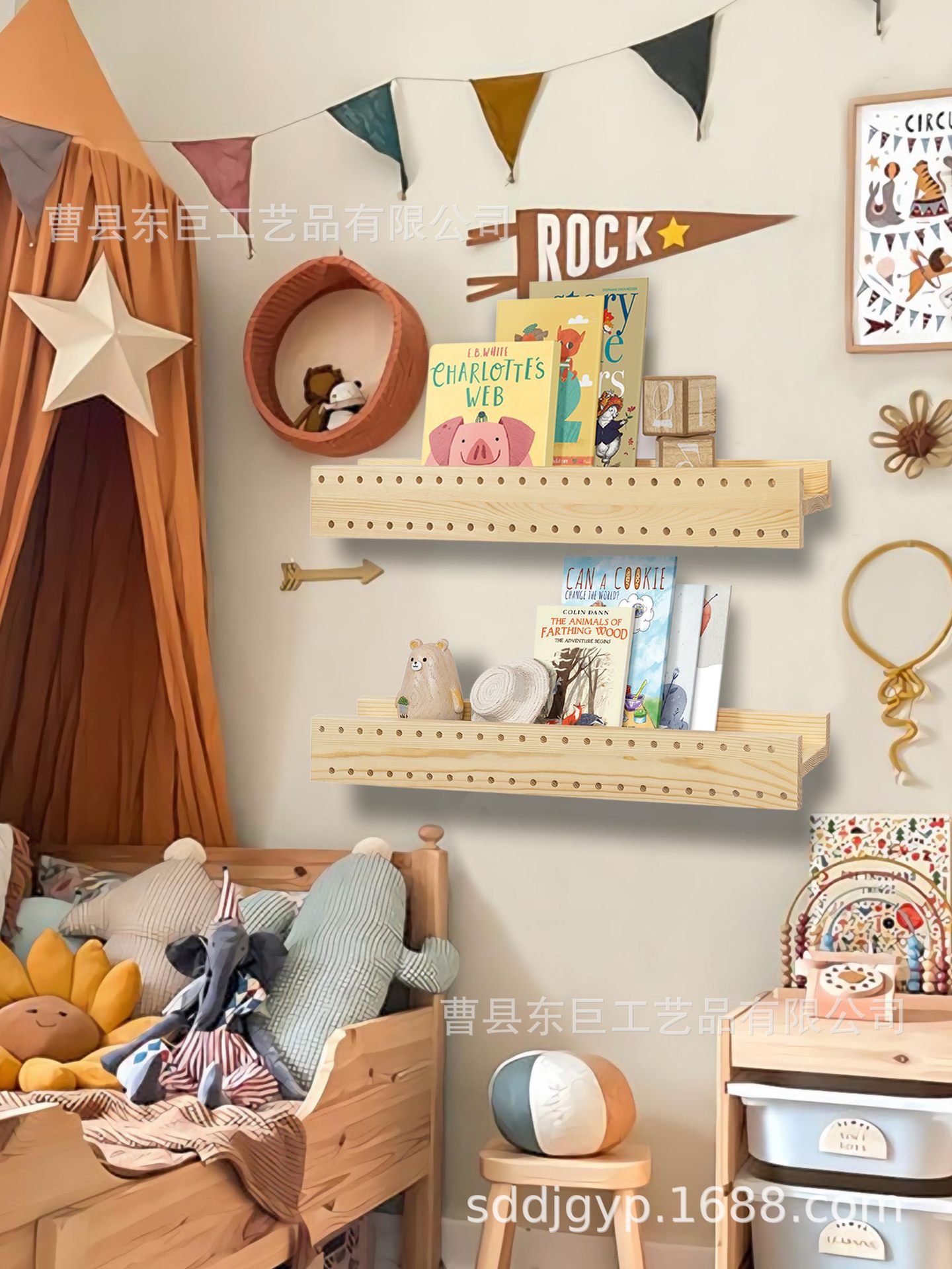 나무 벽에 장착 된 그림책 랙 벽 장식 떠있는 선반 유치원 책장 욕실 선반 어린이 장난감 선반스토어 가기