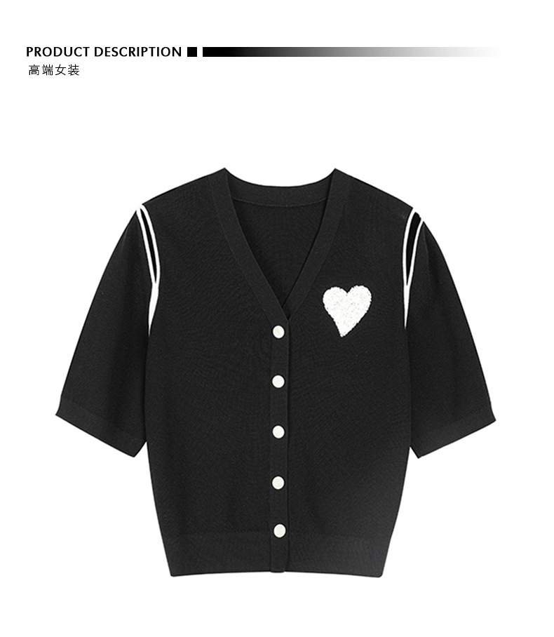 샤오샹풍 하트 브이넥 니트 여성 여름 신상 2025 하이웨이스트 슬림핏 미디 블랙 스커트 세트스토어 가기
