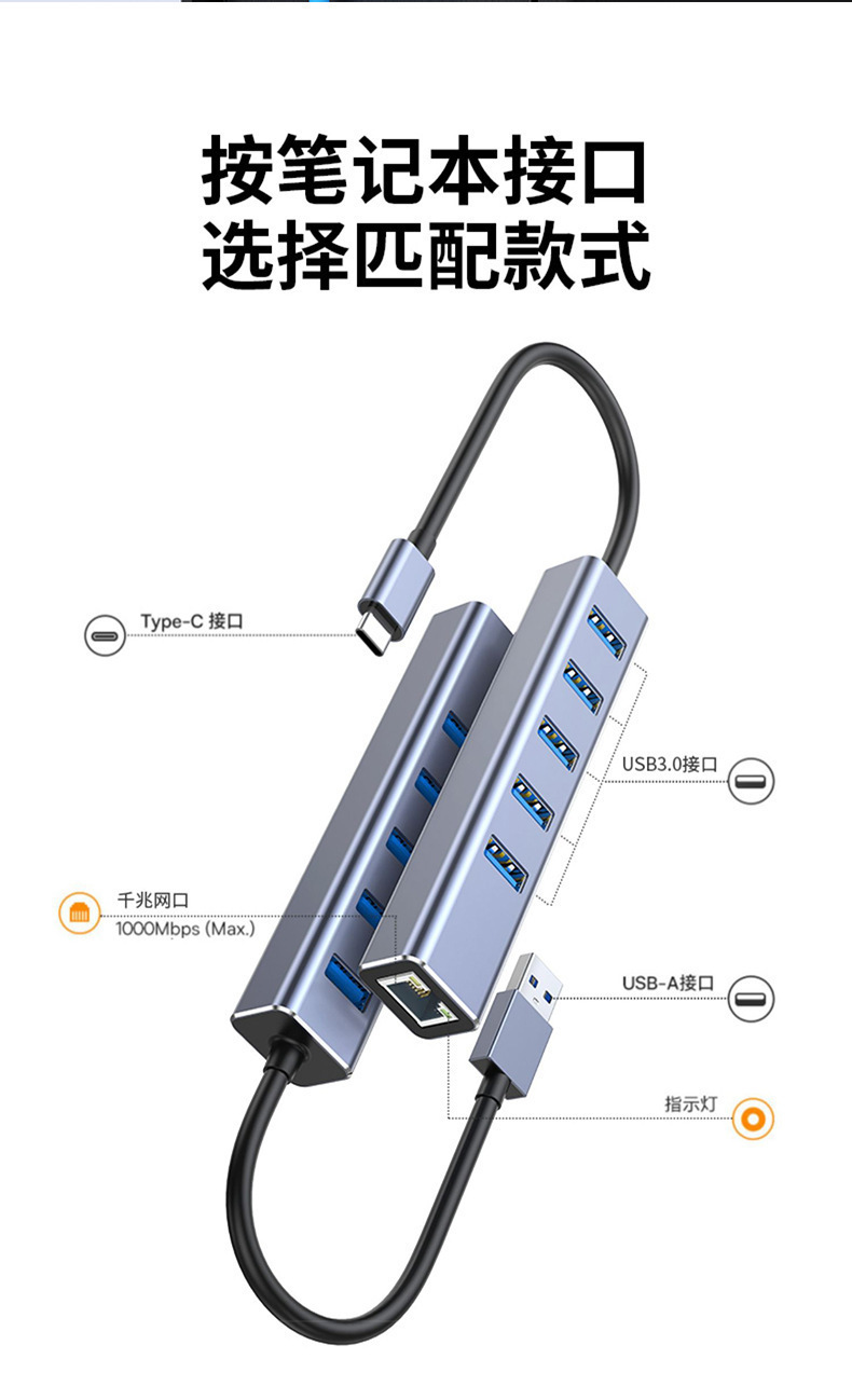 • 유형-C-RJ45 기가비트 네트워크 카드 3 포트 3.0HUB