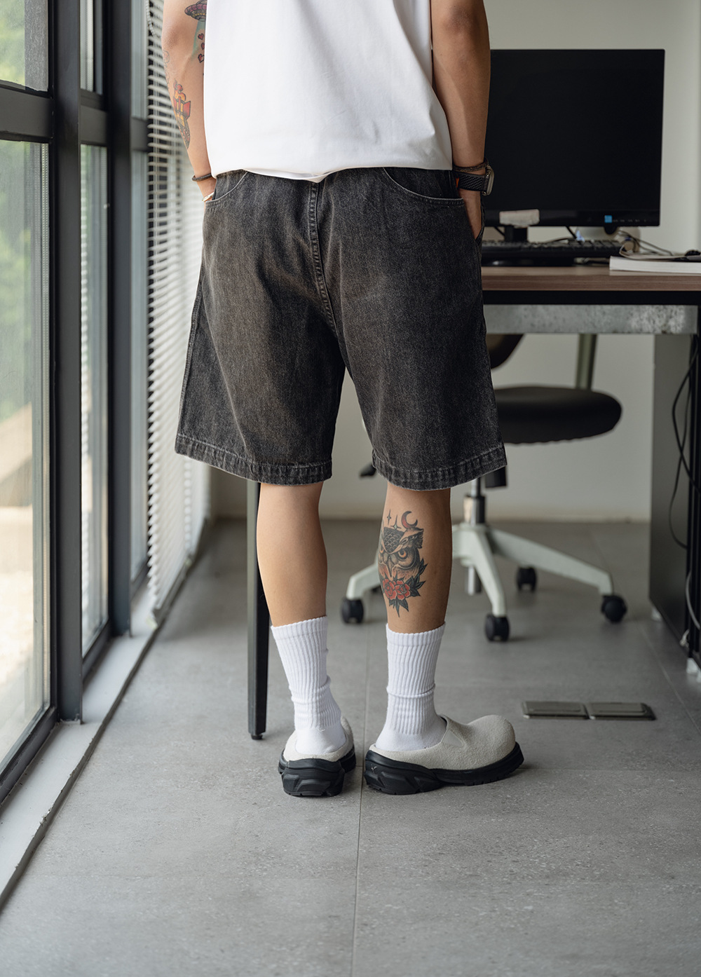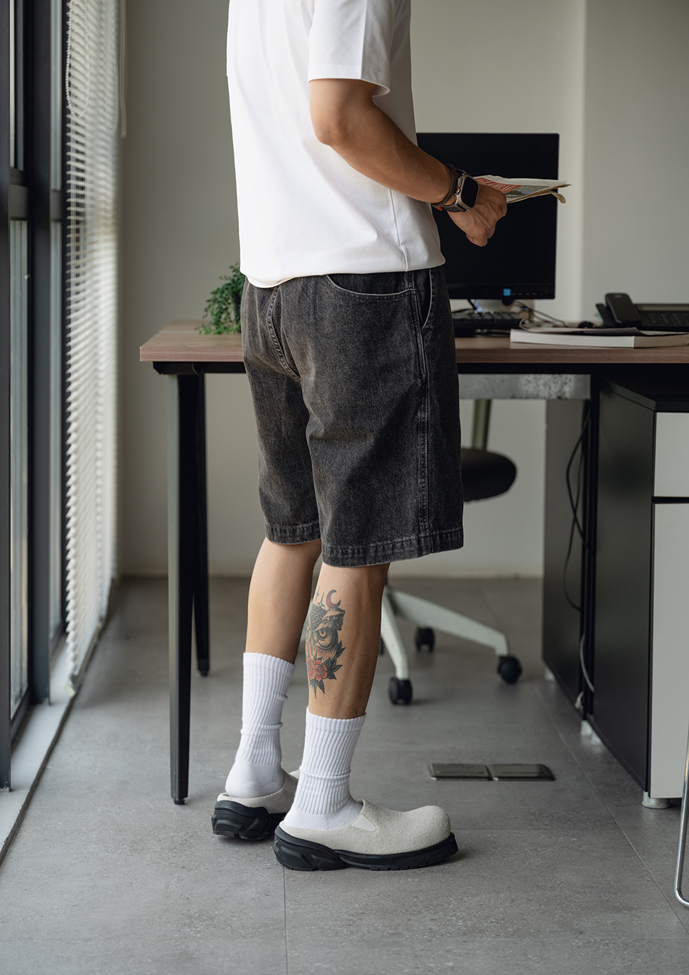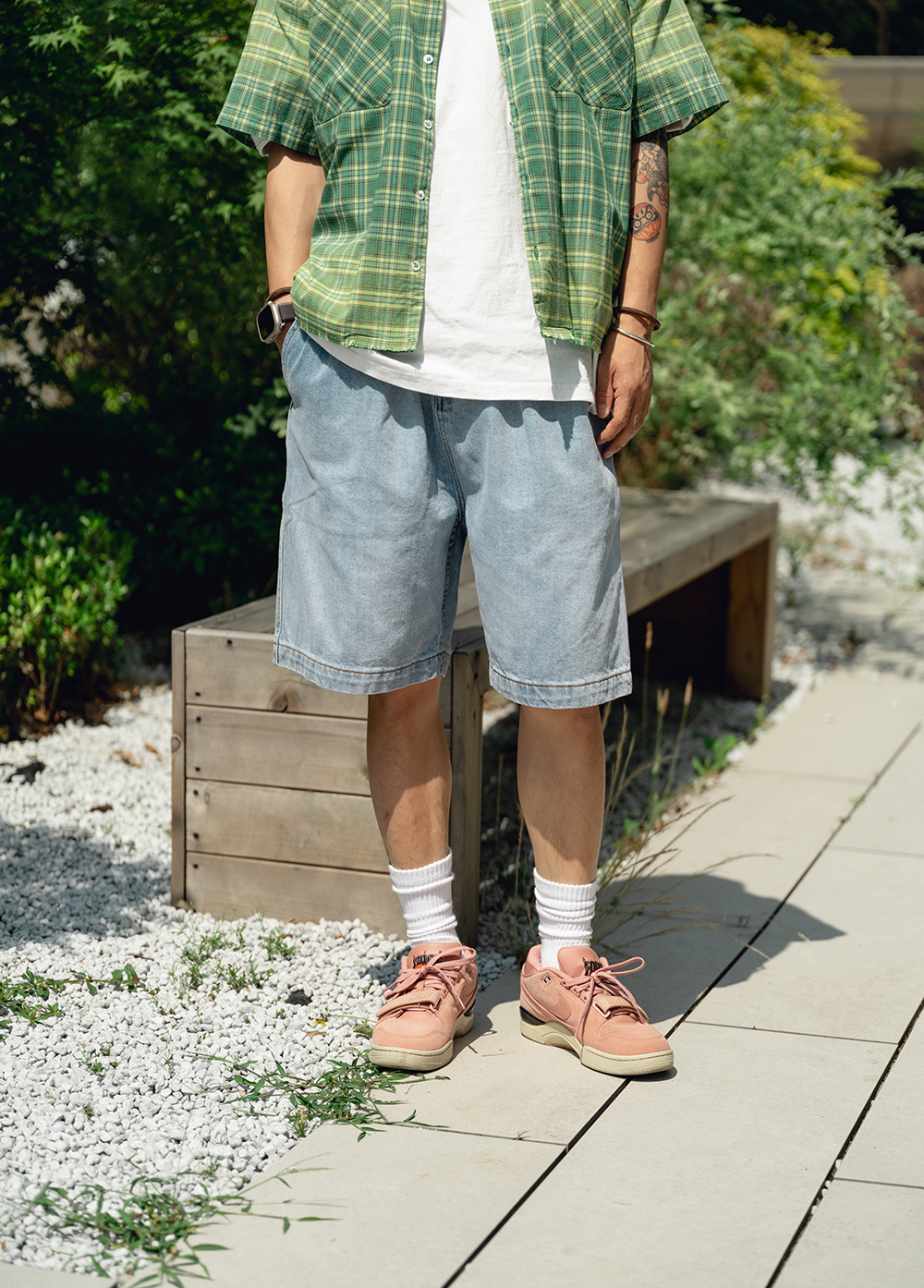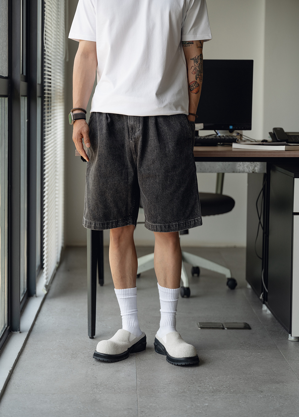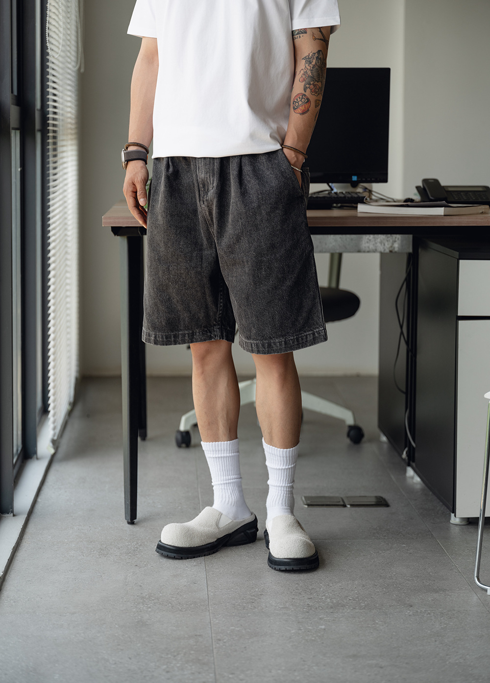TRS 남성복 | 25SS 일본 스타일 루즈핏 눈꽃 워싱 빈티지 워싱 다용도 레트로 워싱 5부 데님 반바지 남성용스토어 가기