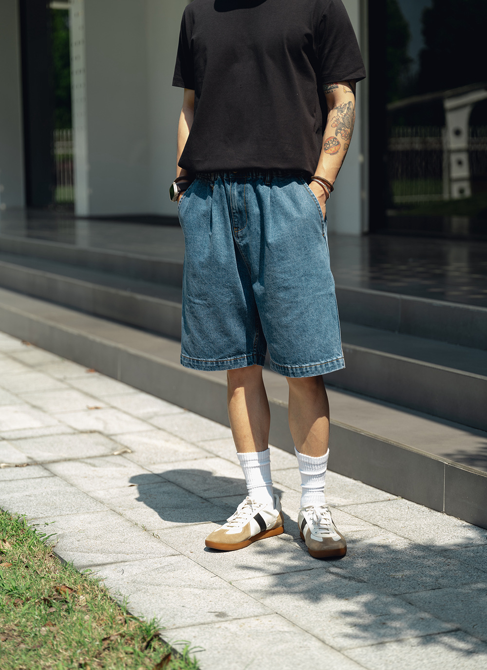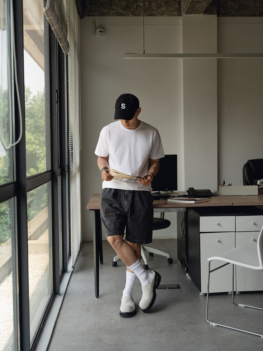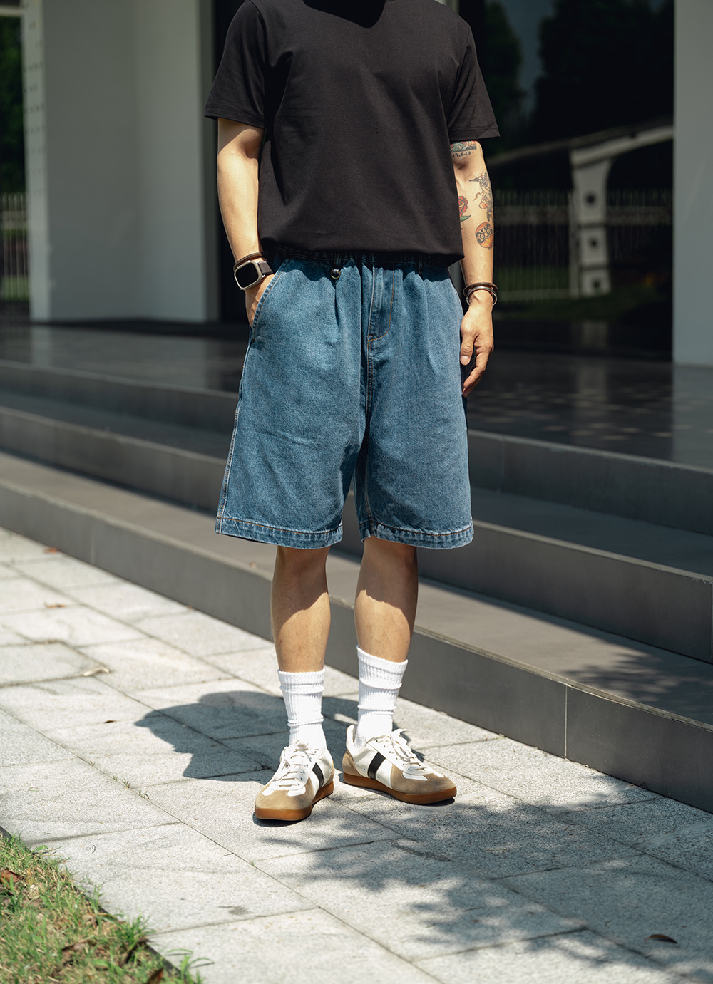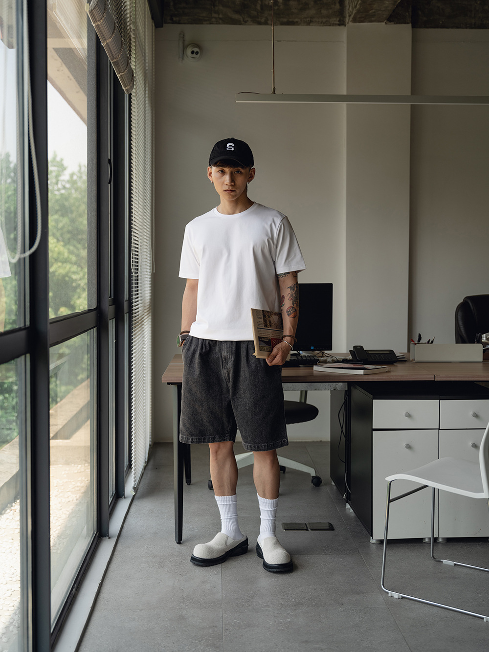 TRS 남성복 | 25SS 일본 스타일 루즈핏 눈꽃 워싱 빈티지 워싱 다용도 레트로 워싱 5부 데님 반바지 남성용스토어 가기