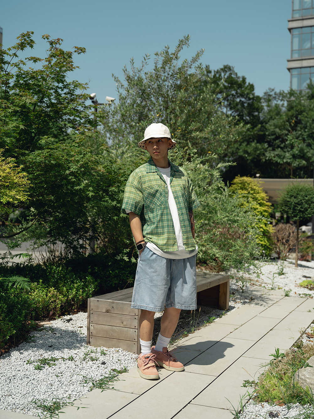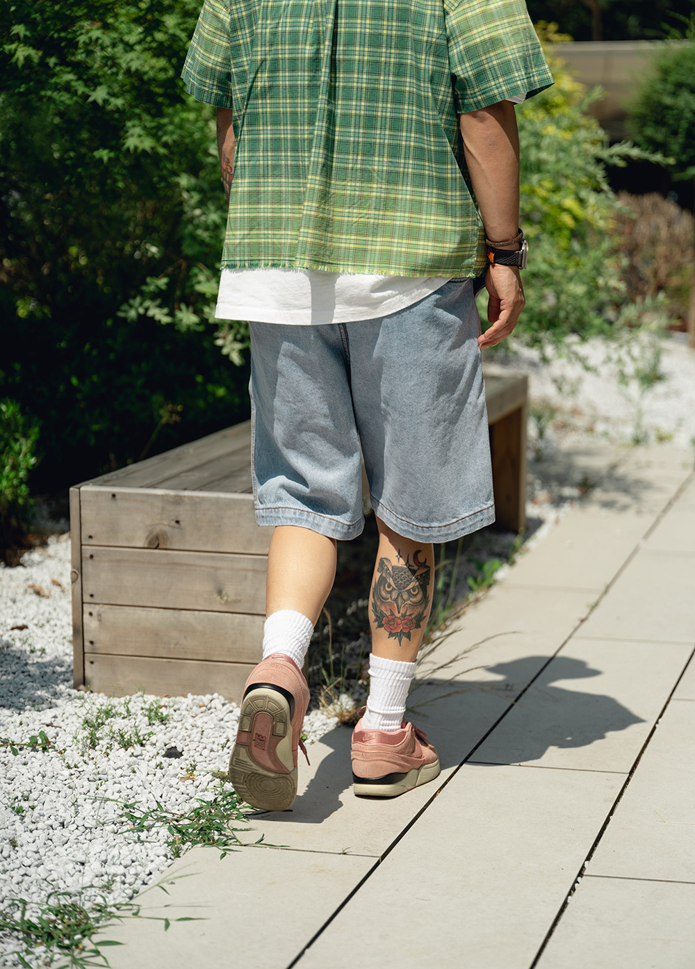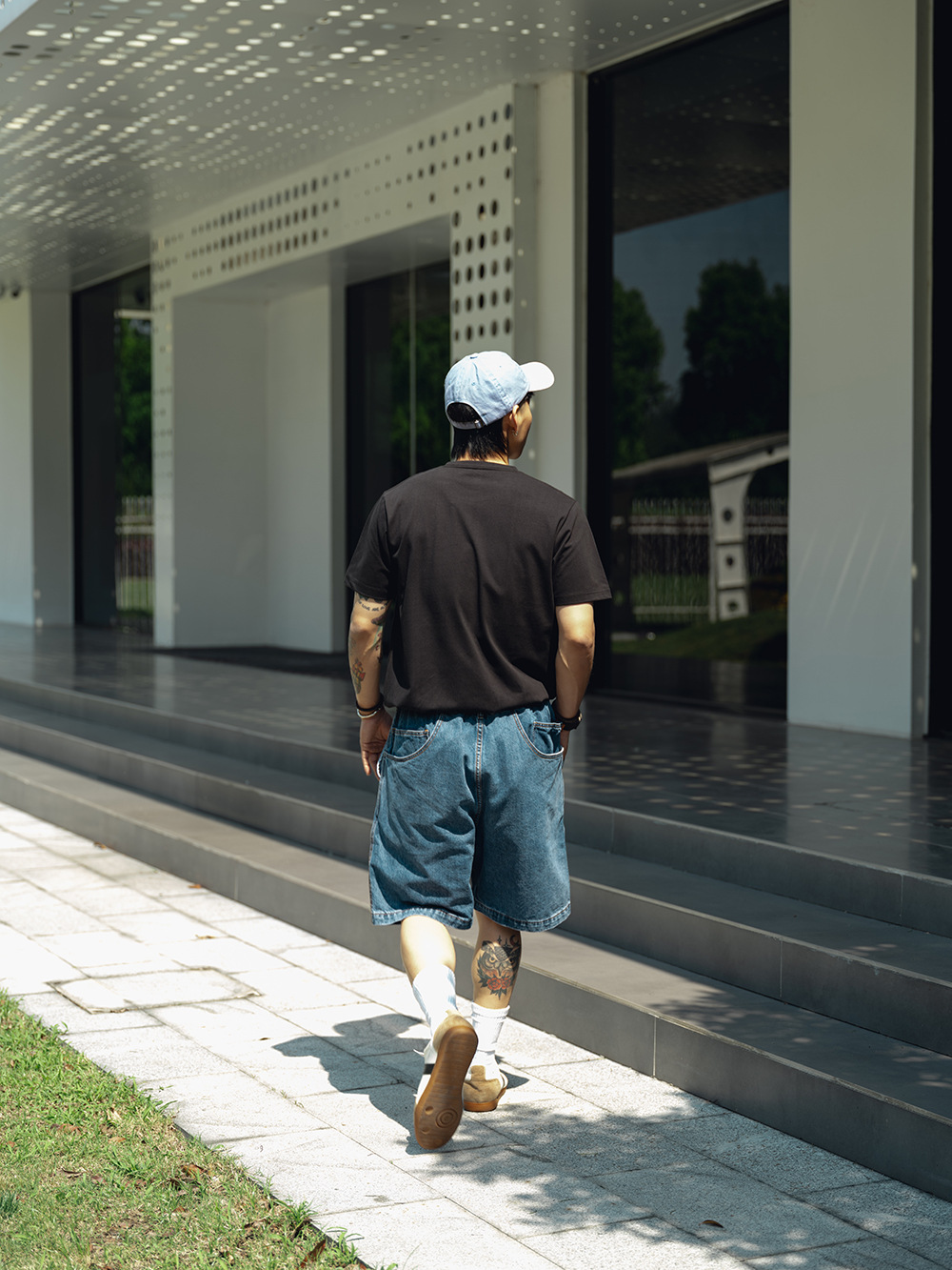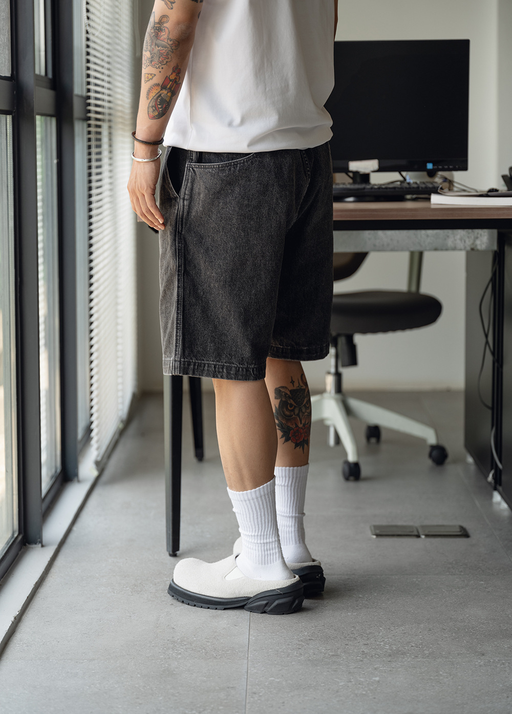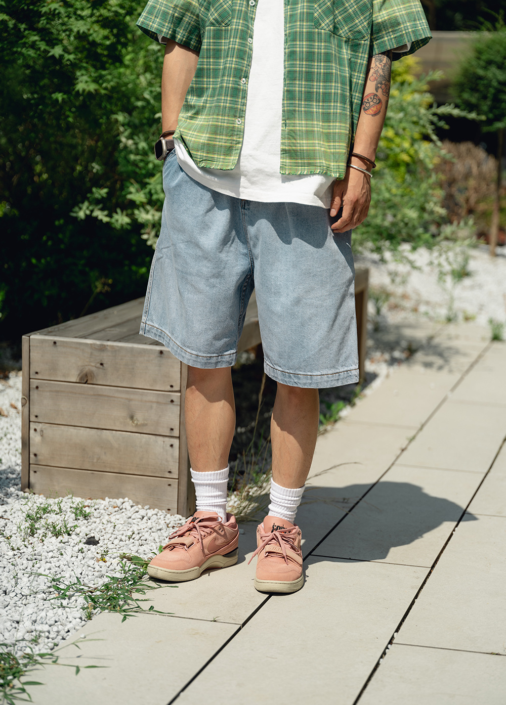 TRS 남성복 | 25SS 일본 스타일 루즈핏 눈꽃 워싱 빈티지 워싱 다용도 레트로 워싱 5부 데님 반바지 남성용스토어 가기