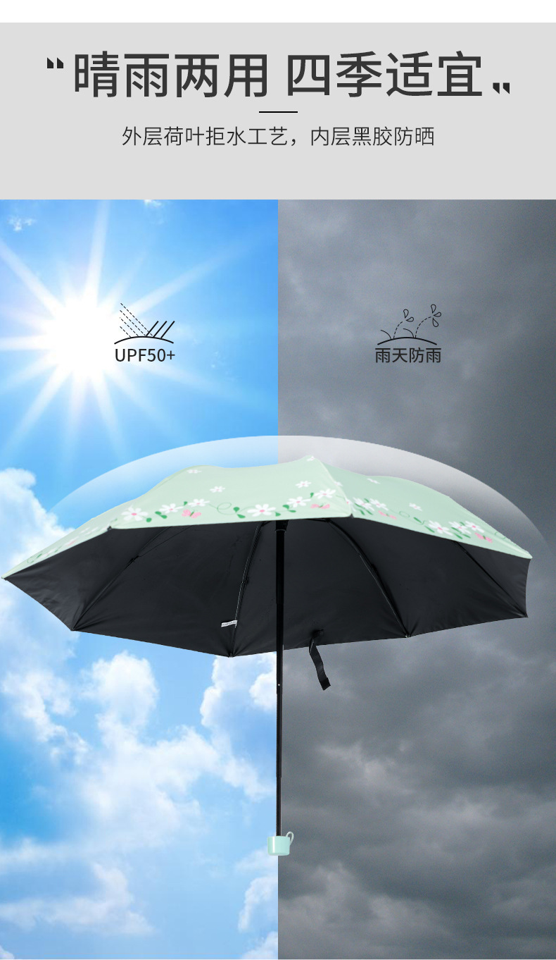 2024 새로운 맑고 비오는 이중 목적 검은 고무 우산 선 스크린 자외선 보호 양산 접이식 경량 휴대용 우산 여성용