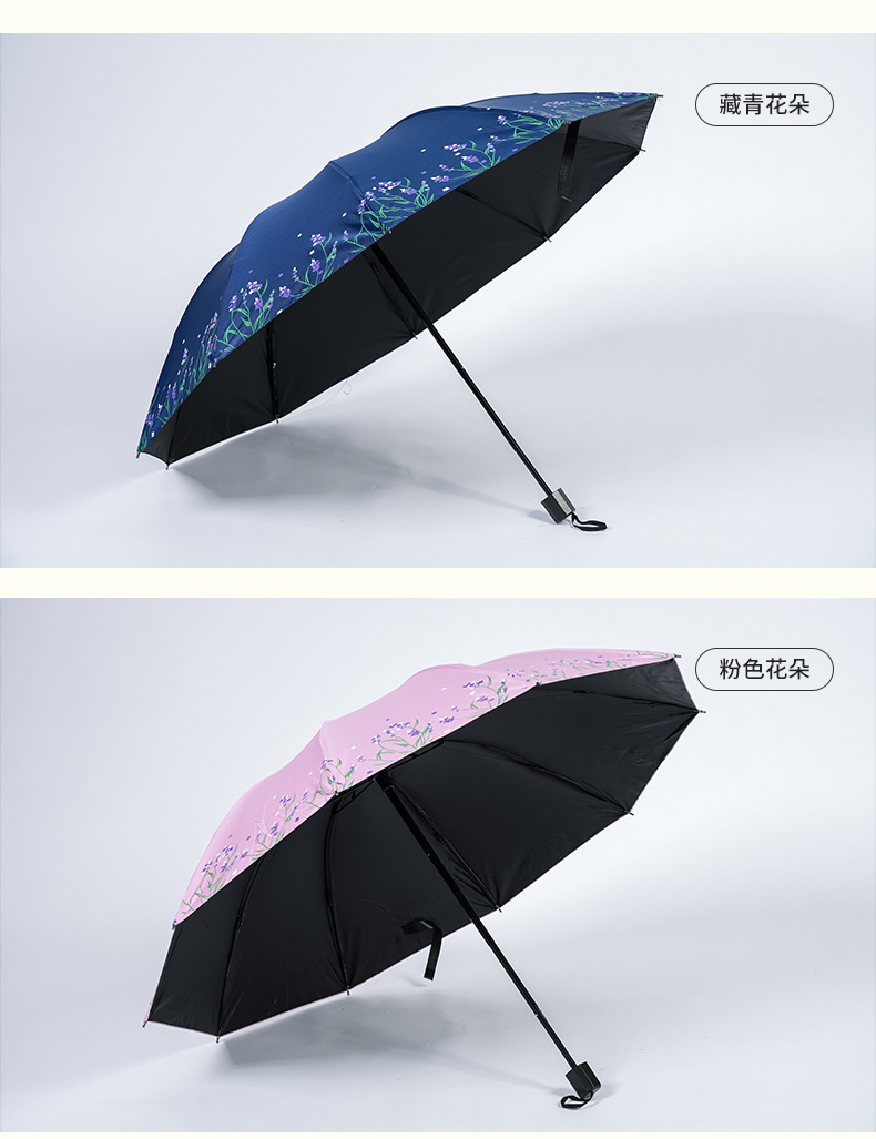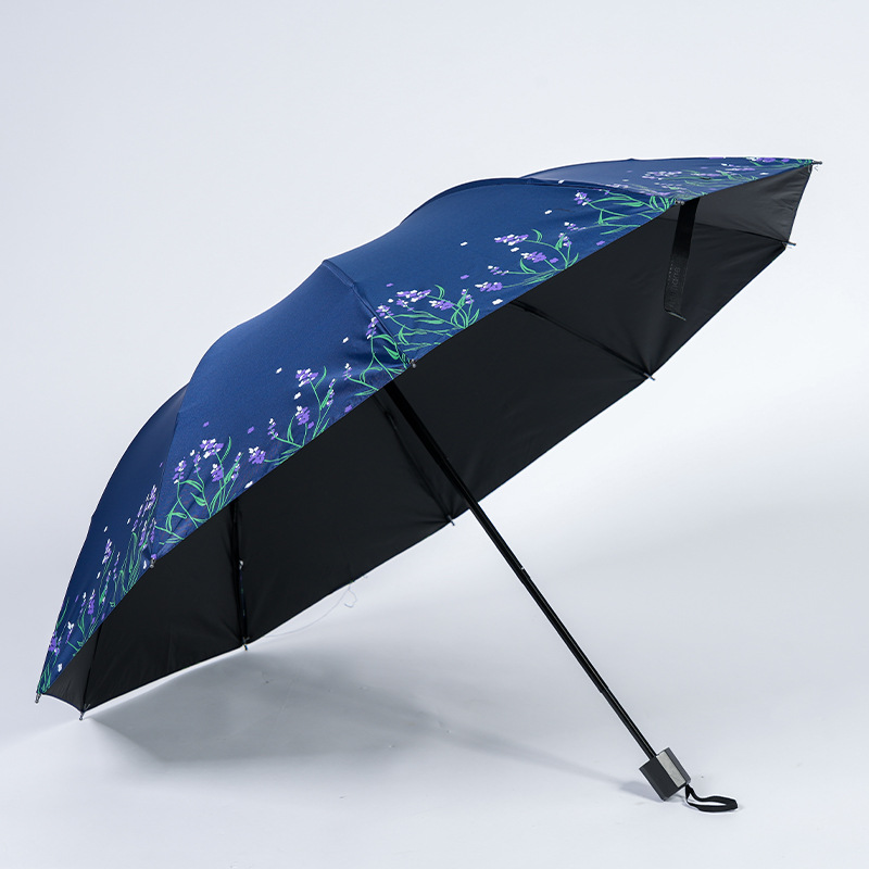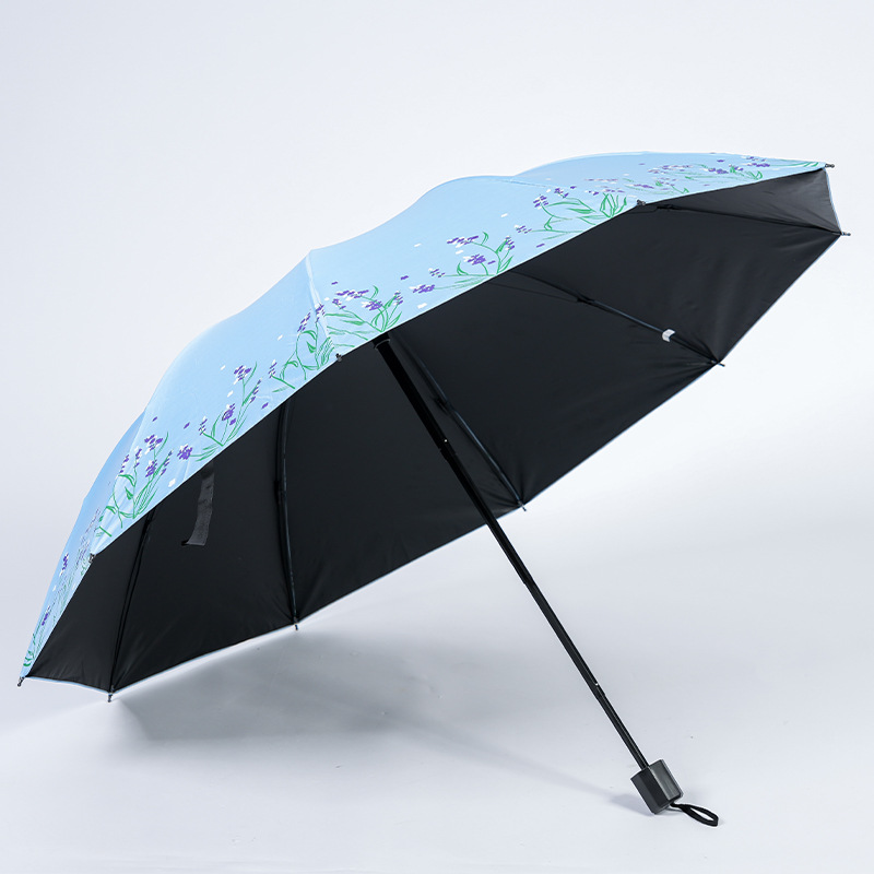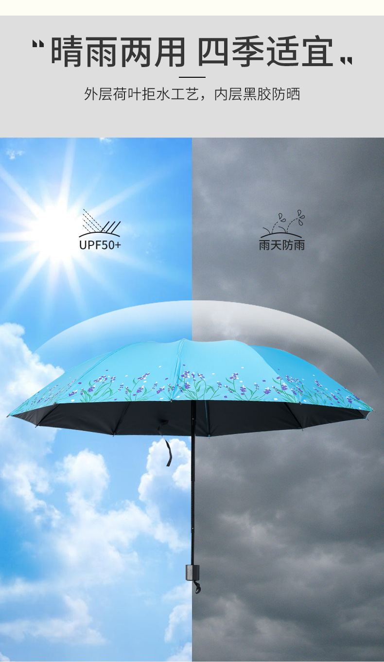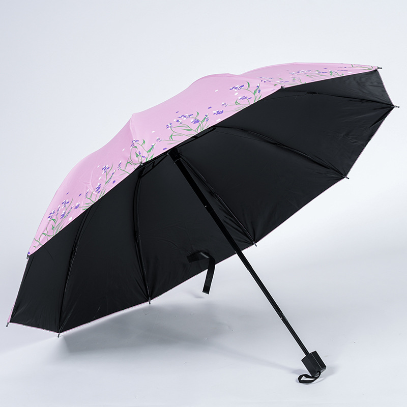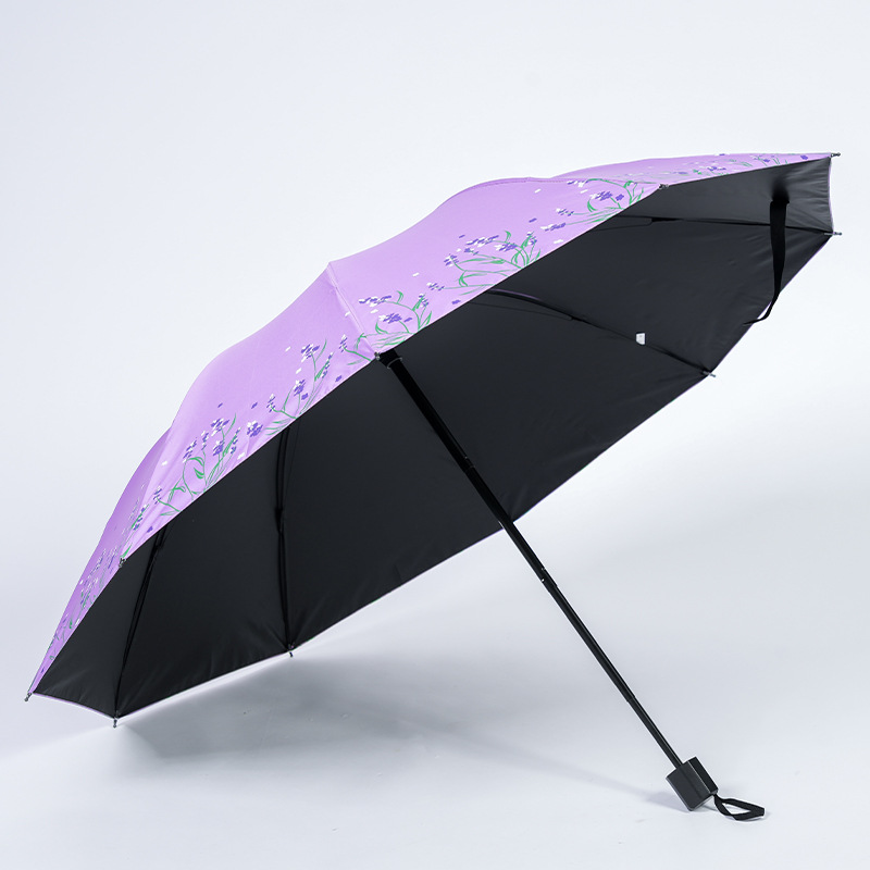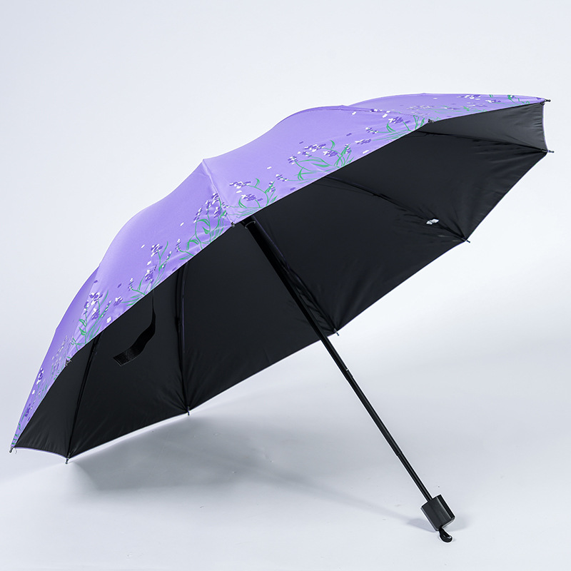 2024 새로운 검은 고무 선 스크린 수동 접는 햇살 우산 태양 우산 라벤더 햇빛과 비 우산