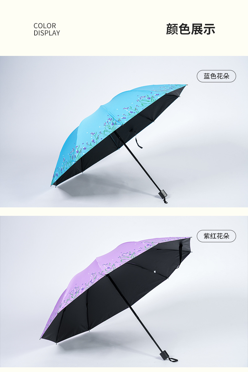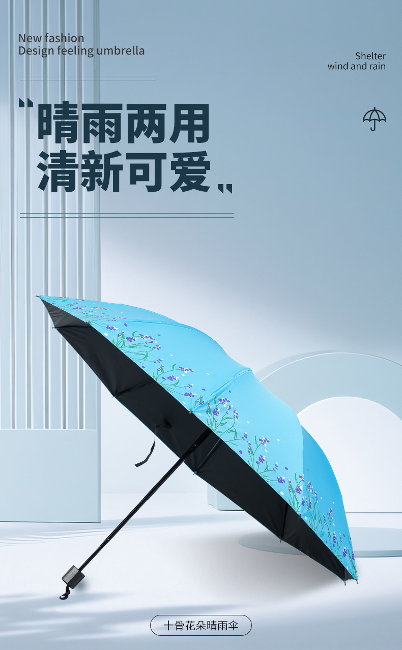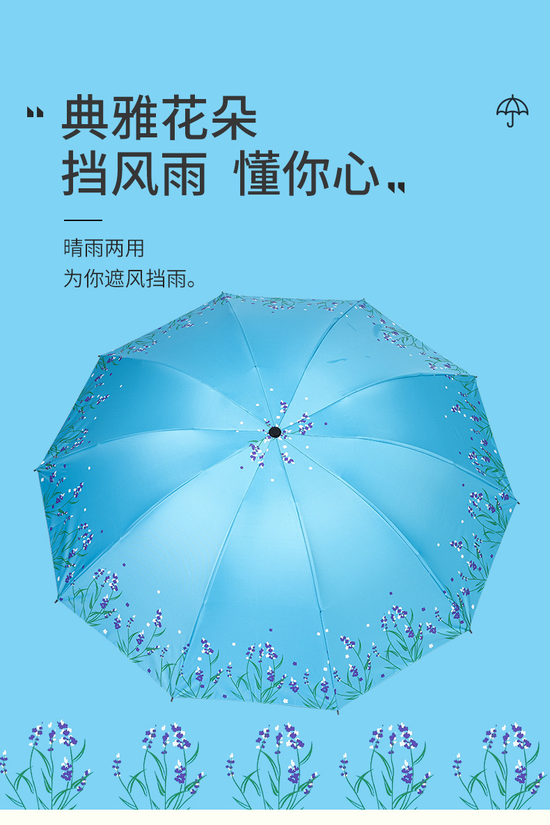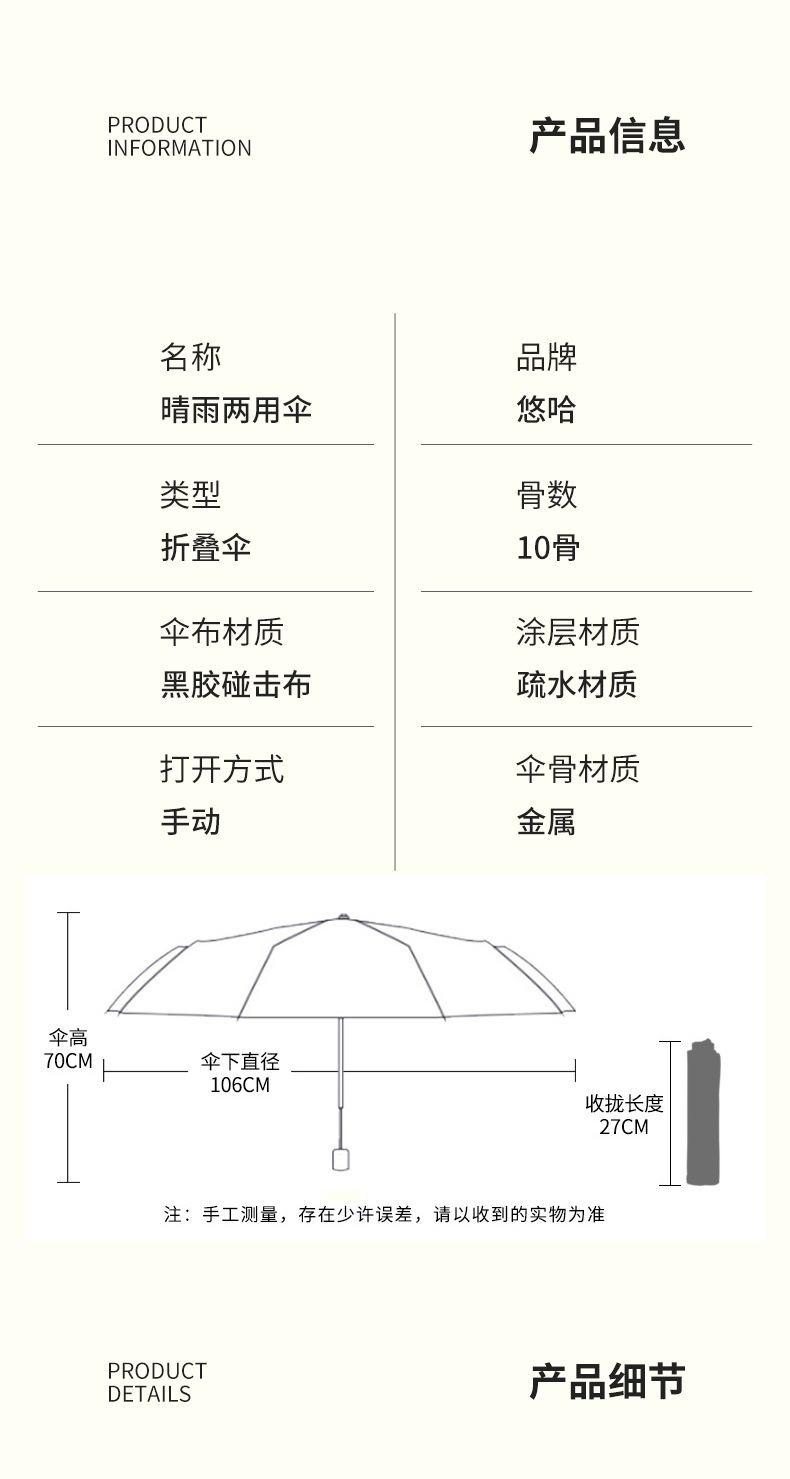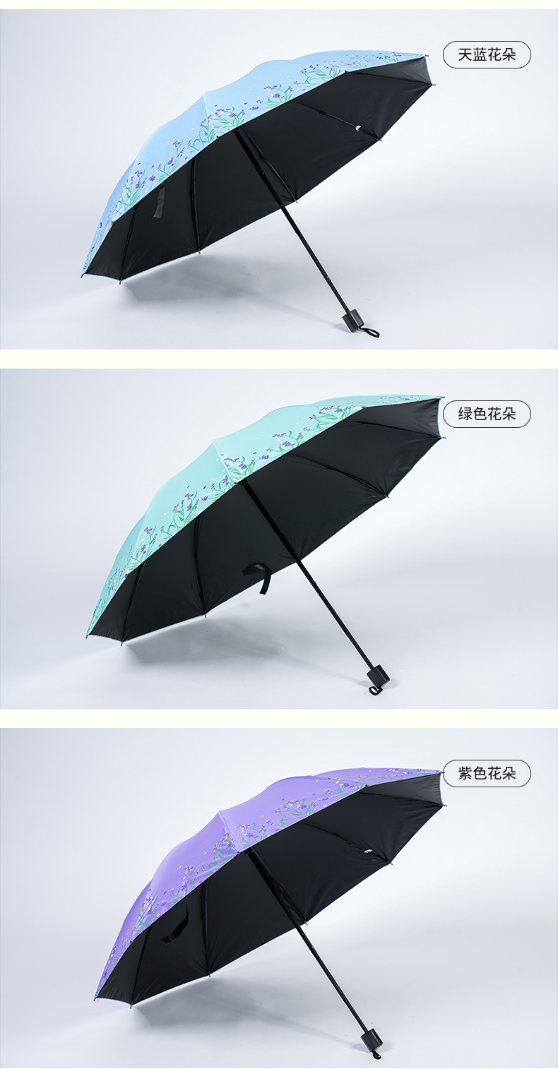 2024 새로운 검은 고무 선 스크린 수동 접는 햇살 우산 태양 우산 라벤더 햇빛과 비 우산