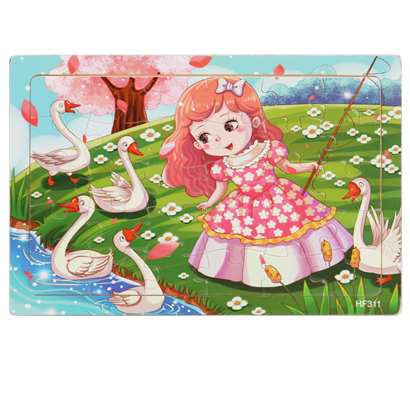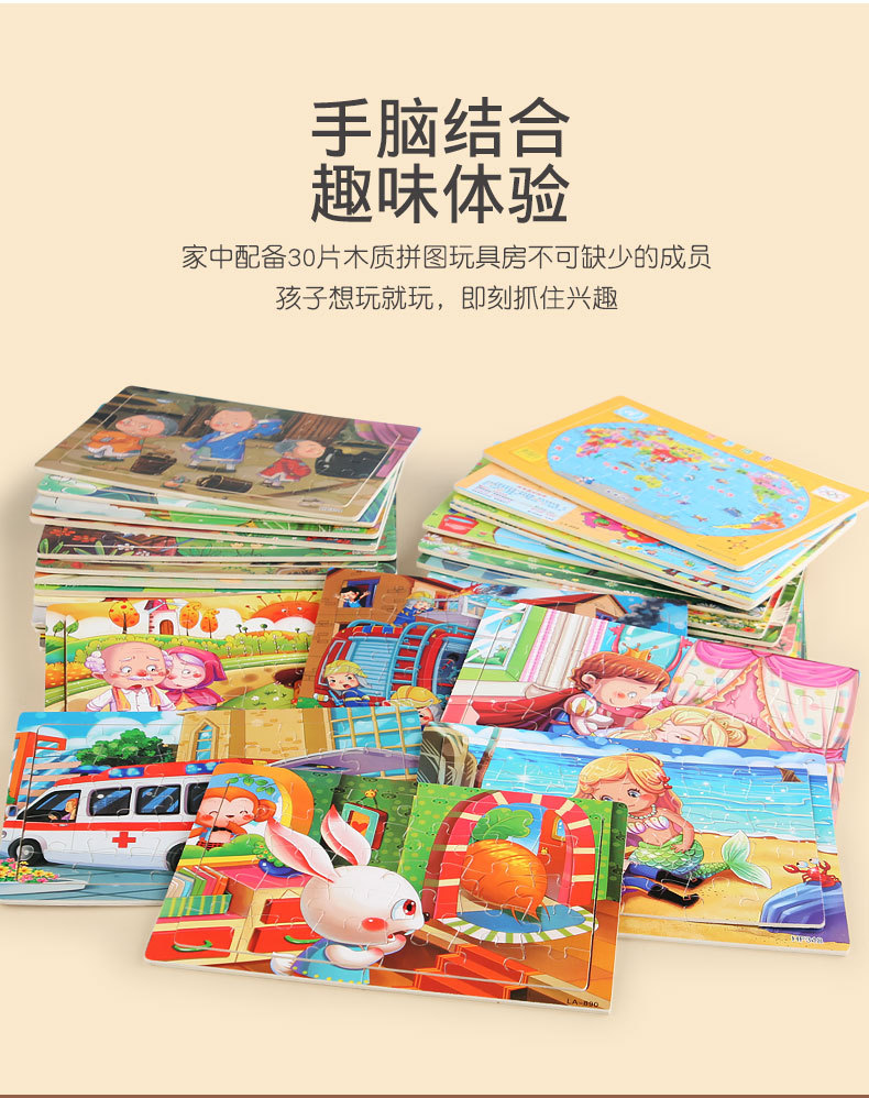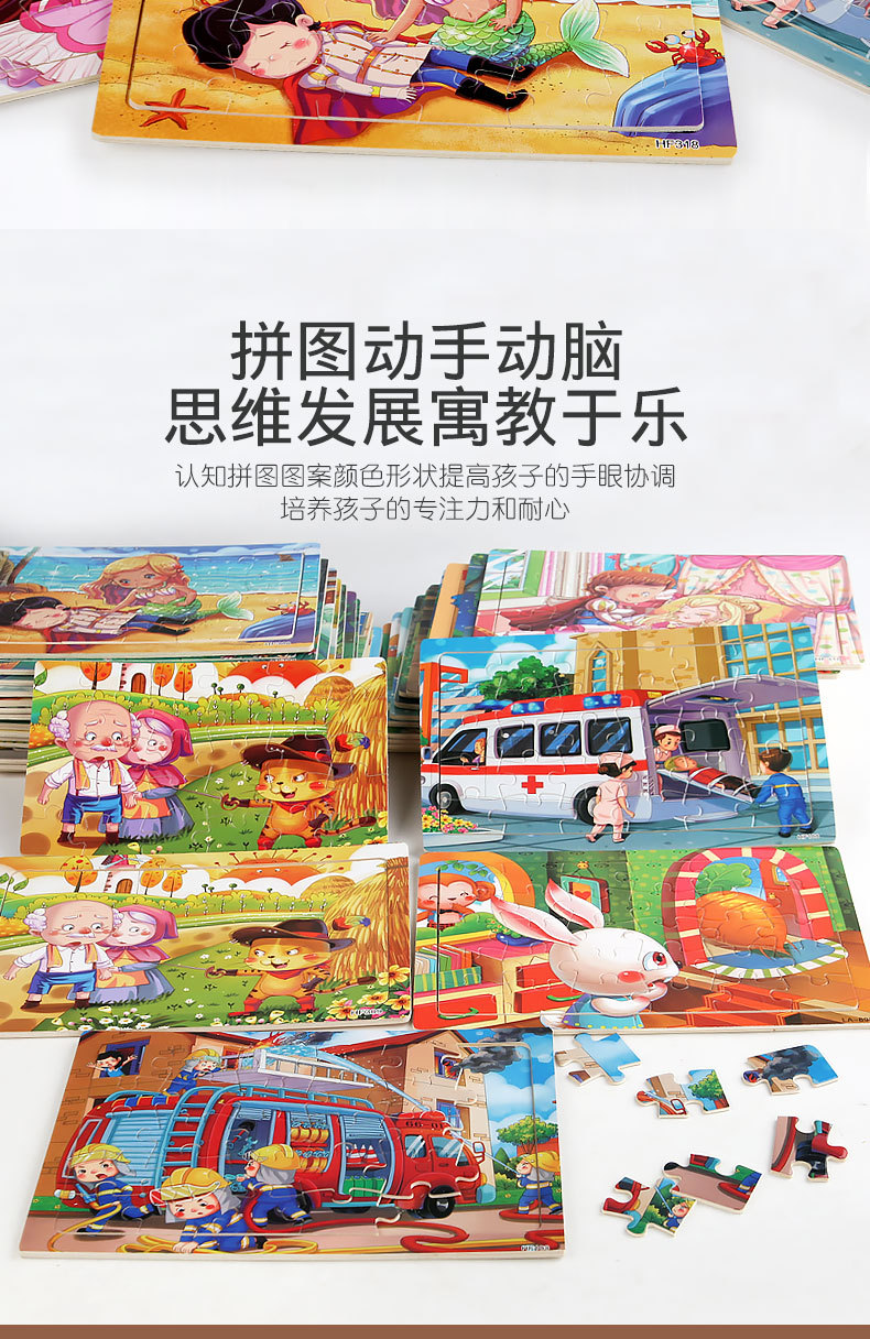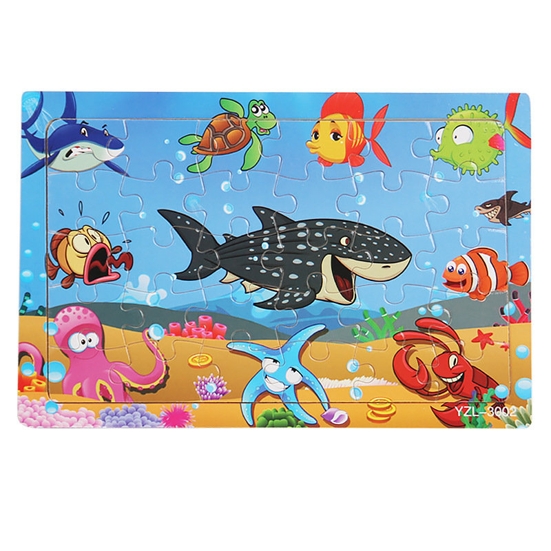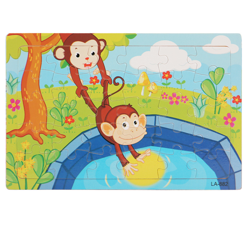 어린 아이들을위한 나무 30 조각 퍼즐 만화 동물 교통 평면 퍼즐 아기 조기 교육 지능 개발 장난감스토어 가기