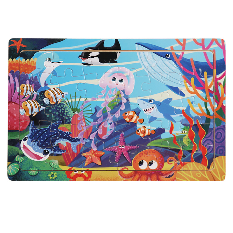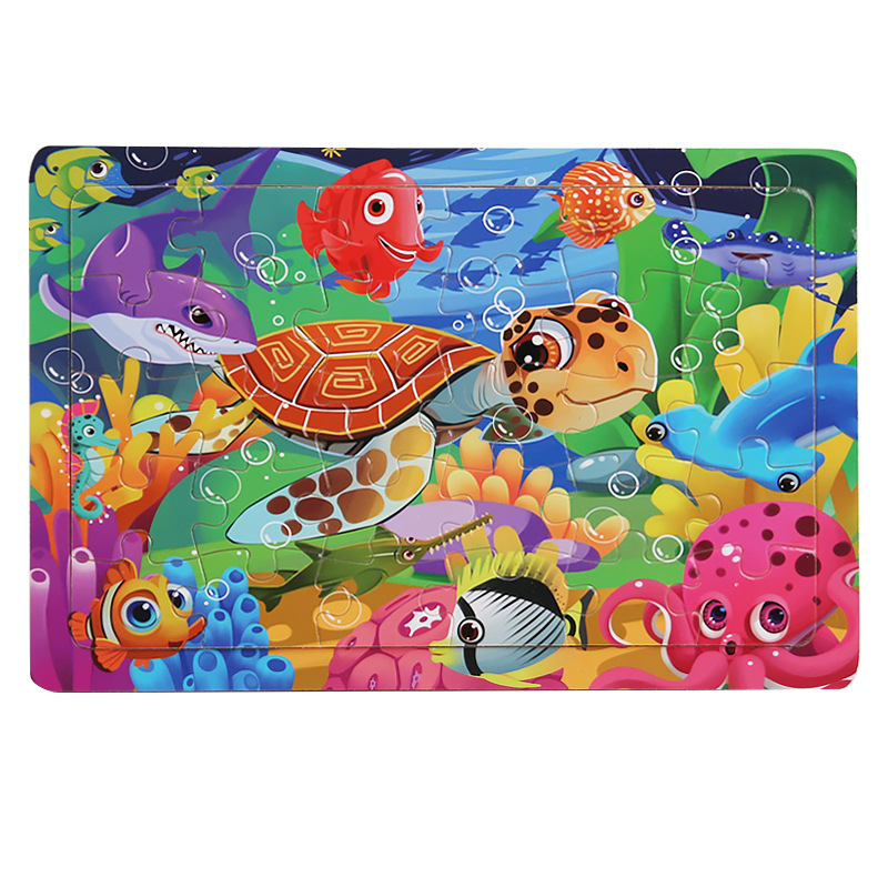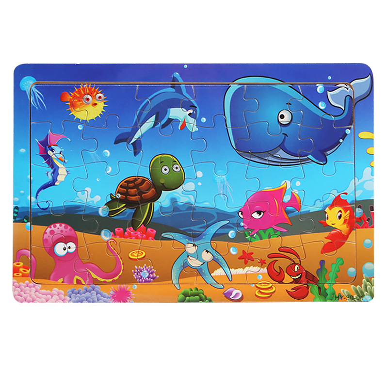 어린 아이들을위한 나무 30 조각 퍼즐 만화 동물 교통 평면 퍼즐 아기 조기 교육 지능 개발 장난감