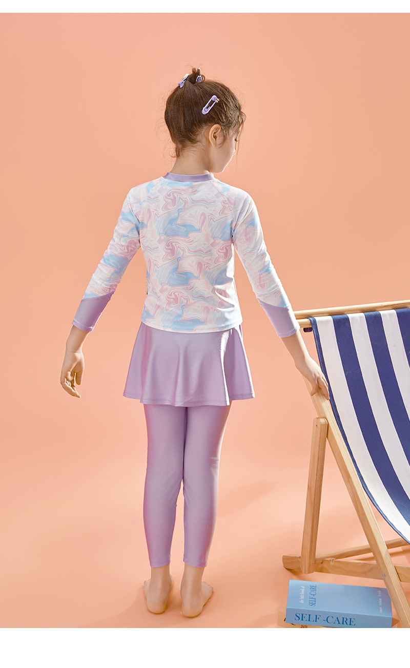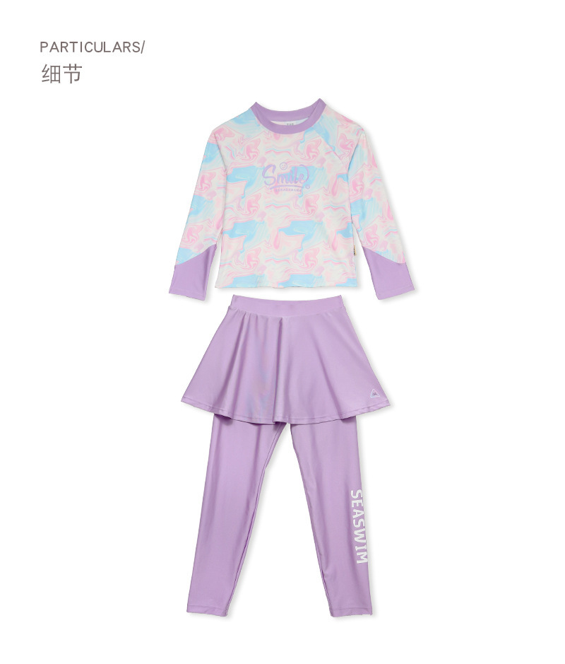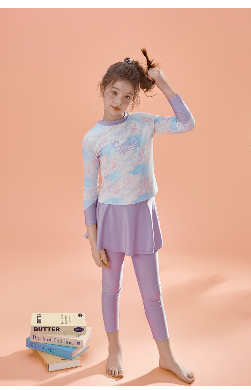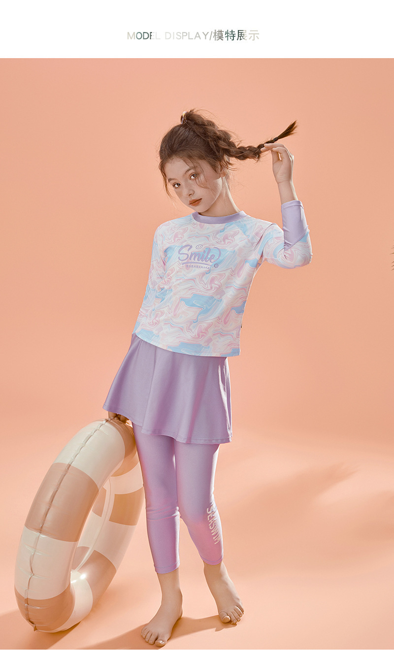 아동용 수영복, 여성용 스플릿 긴팔 바지, 자외선 차단 속건 수영복, 중대형 아동용, 중학생용 해변 온천복스토어 가기