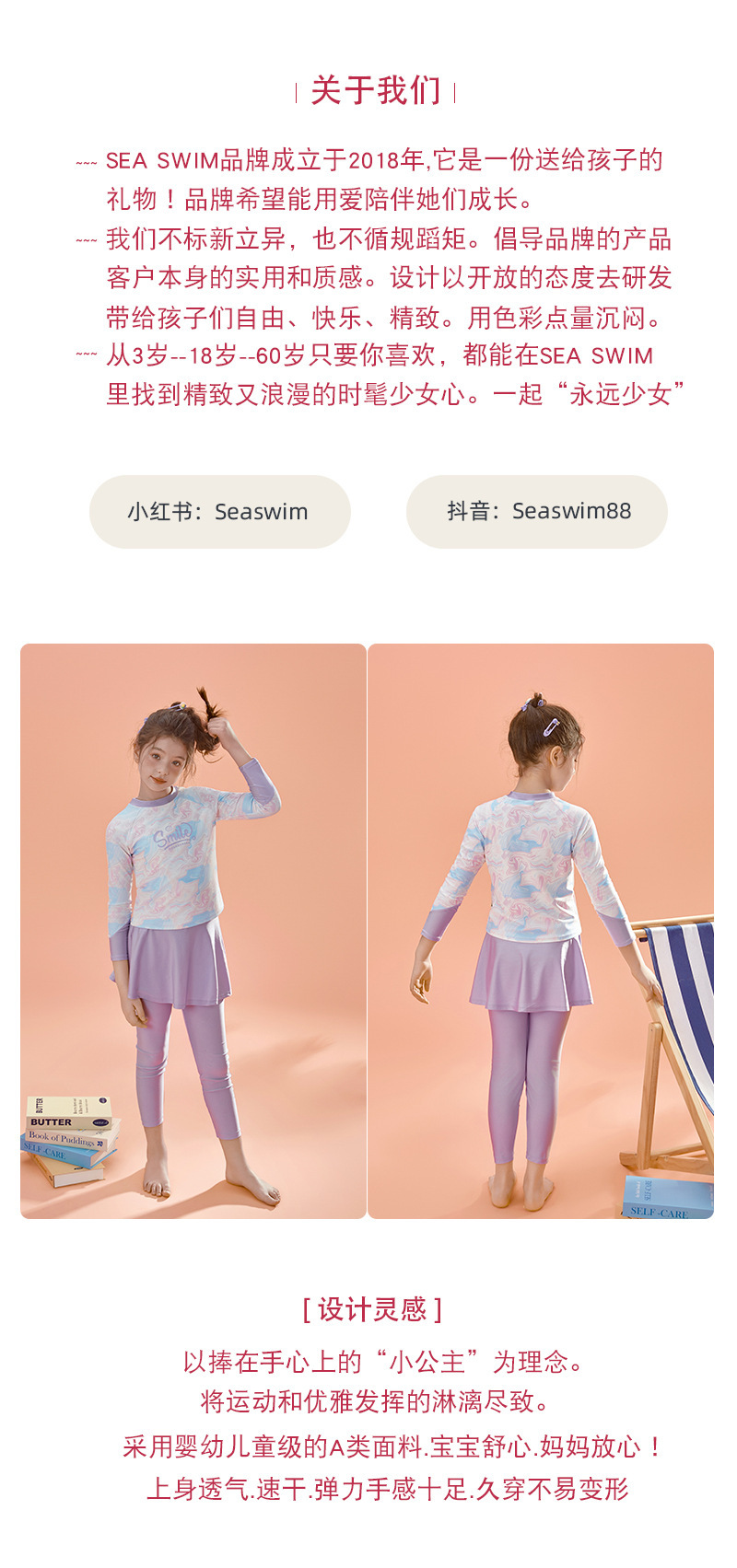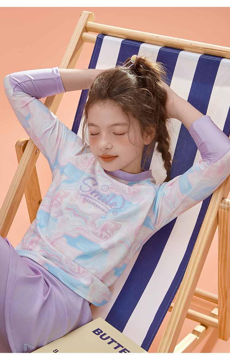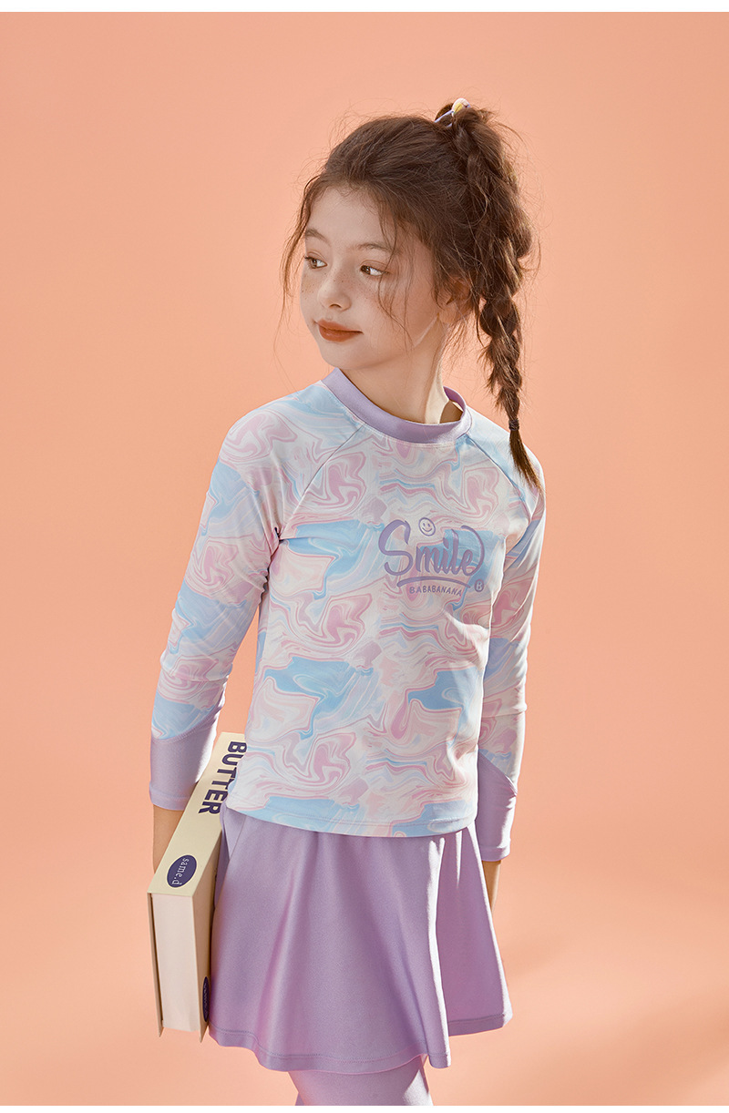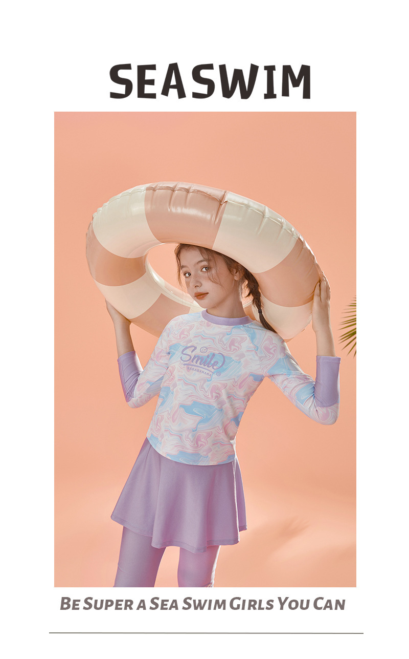 아동용 수영복, 여성용 스플릿 긴팔 바지, 자외선 차단 속건 수영복, 중대형 아동용, 중학생용 해변 온천복스토어 가기