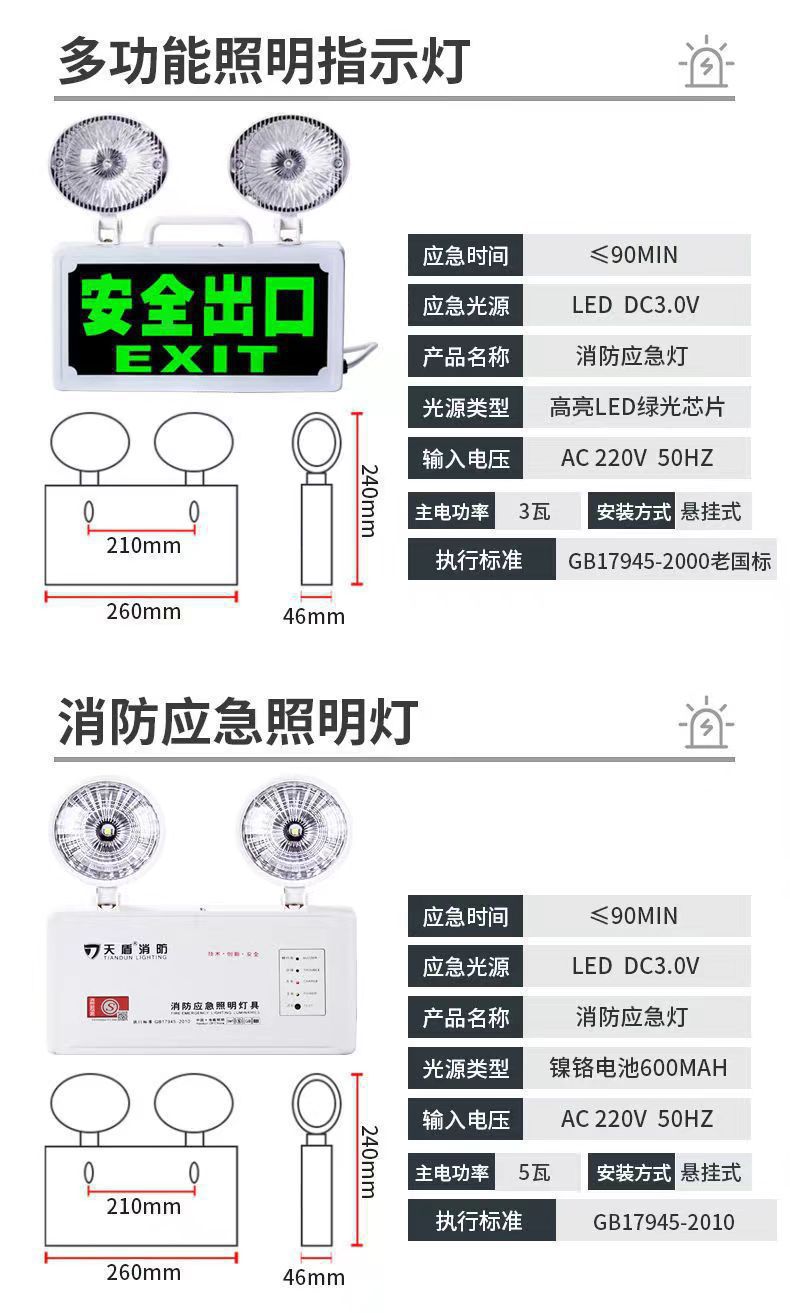 화재 비상 조명 대피 표시등 조명 다기능 2 대 1 조명 LED 마커 비상 조명 이중 헤드 라이트스토어 가기
