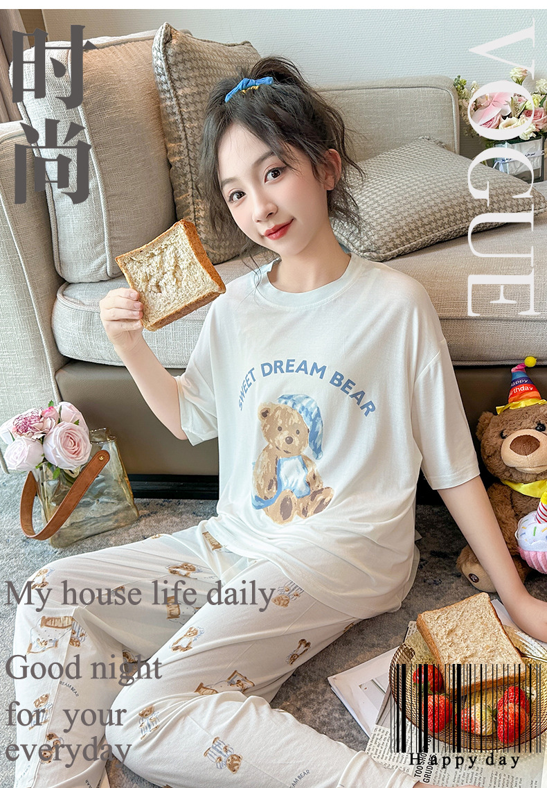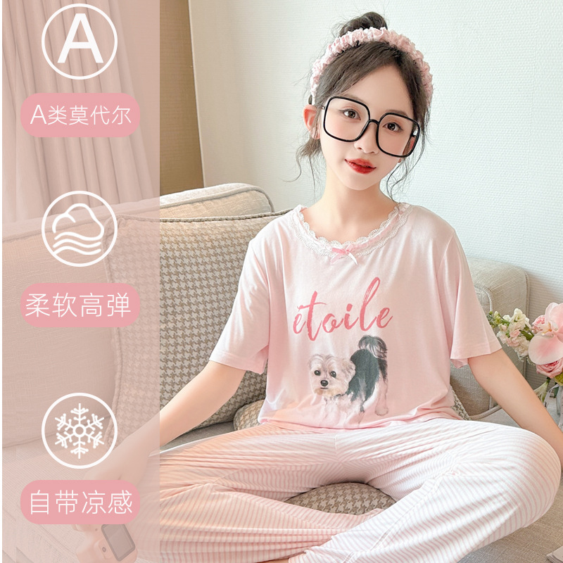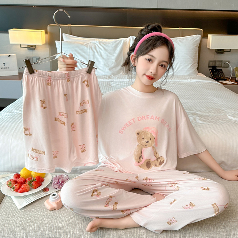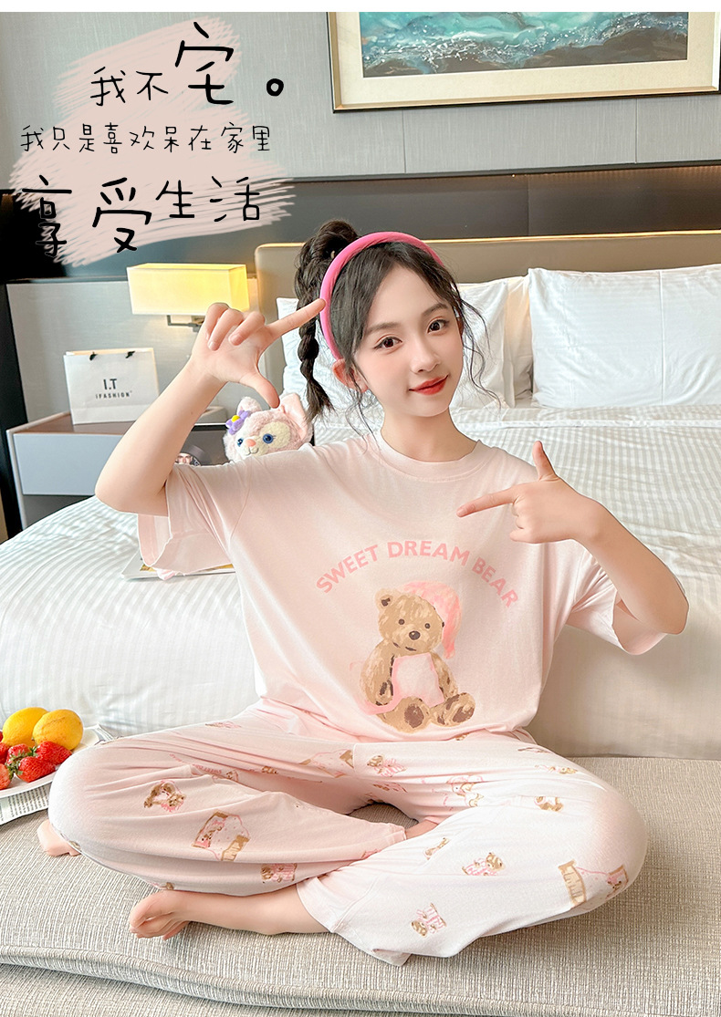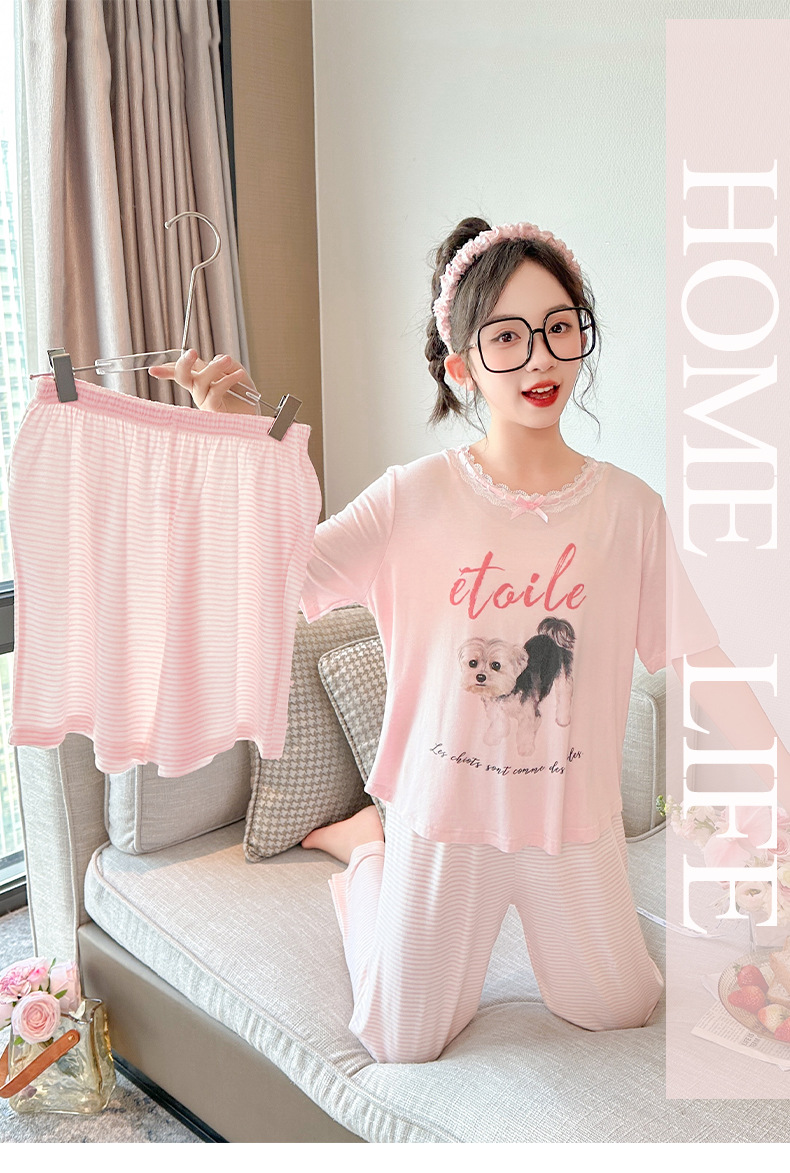 여아 여름용 얇은 잠옷, 아동용 모달 반팔 반바지, 긴바지 3종 세트, 큰 아이와 소녀들을 위한 홈웨어스토어 가기