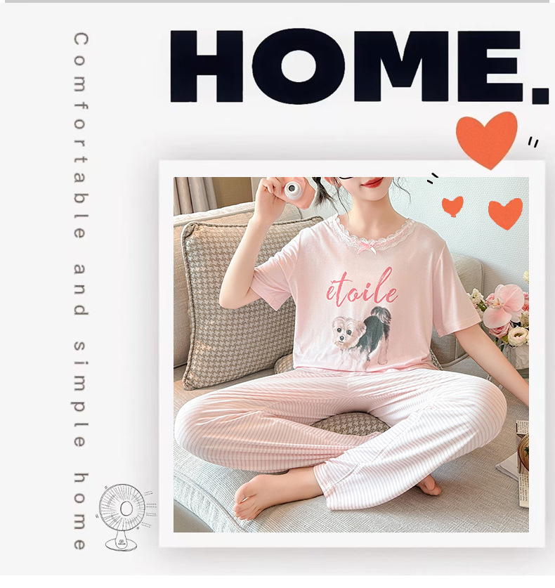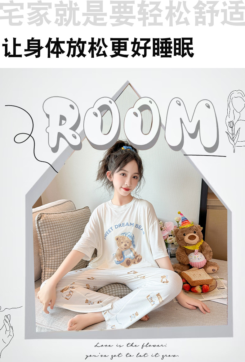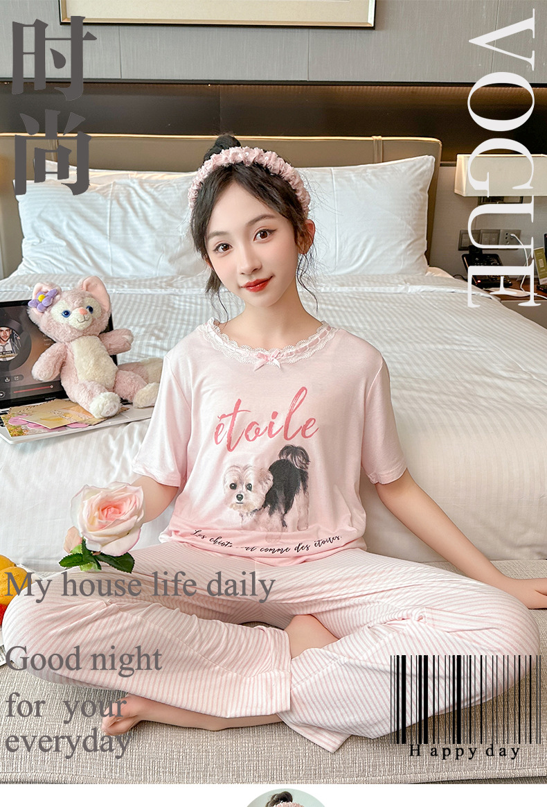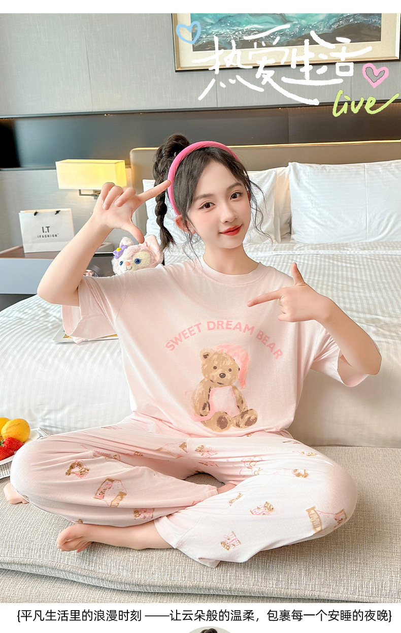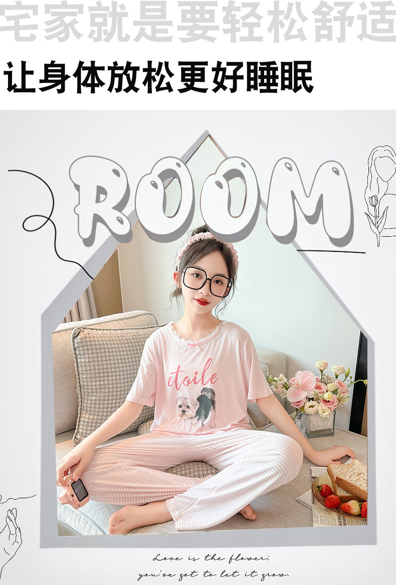 여아 여름용 얇은 잠옷, 아동용 모달 반팔 반바지, 긴바지 3종 세트, 큰 아이와 소녀들을 위한 홈웨어스토어 가기