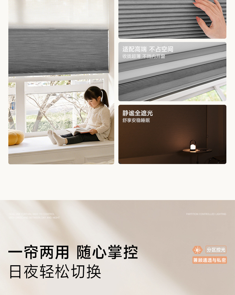 • 【주야간 벌집 커튼】R 시리즈 반차광 + R 시리즈 완전 차광