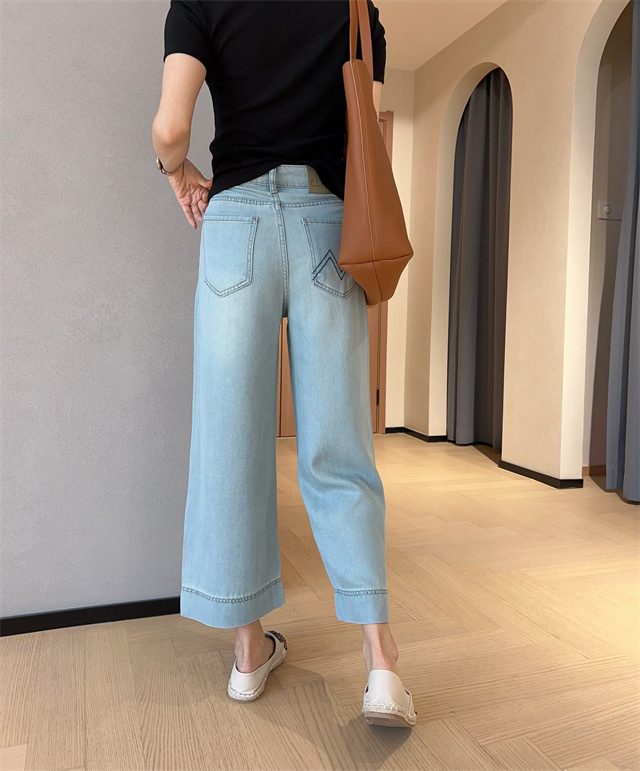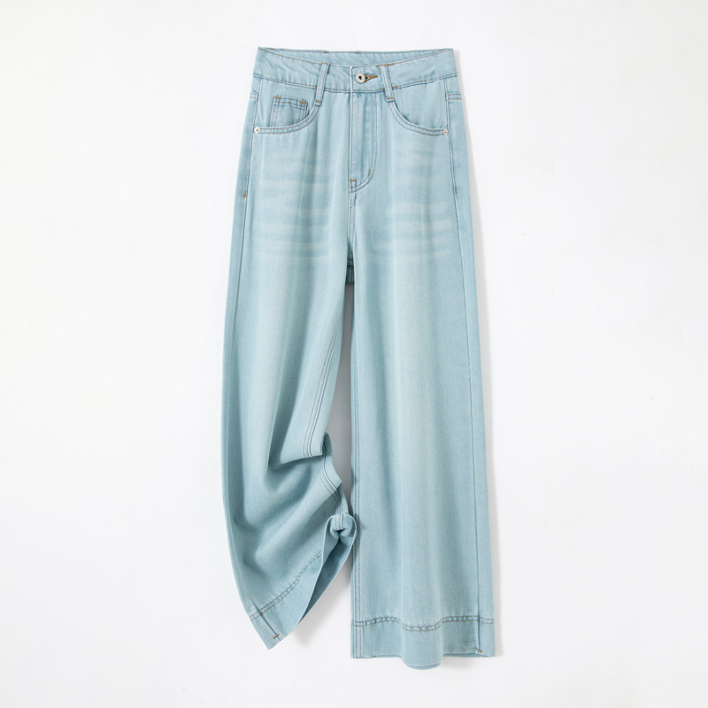 텐셀 하이웨이스트 9부 데님 팬츠 여성 2026 여름 신상 얇은 시원한 느낌 루즈핏 작은 사이즈 할머니 바지 와이드 레그스토어 가기