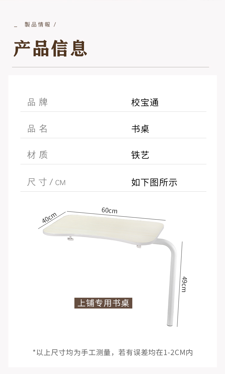 3Y 상부 침대 교수형 작은 테이블 책상 학생 침대 기숙사 테이블 저장 테이블 사이드 기숙사 컴퓨터 학습