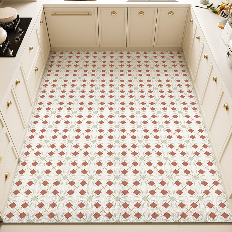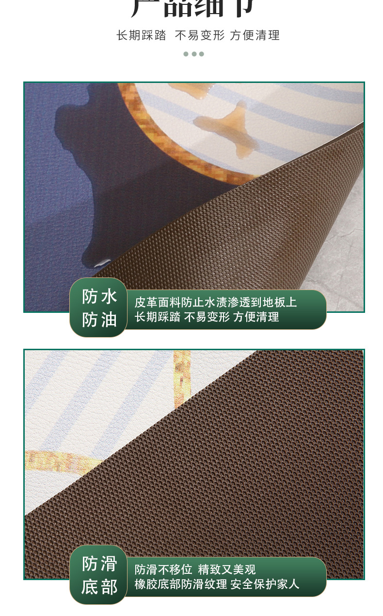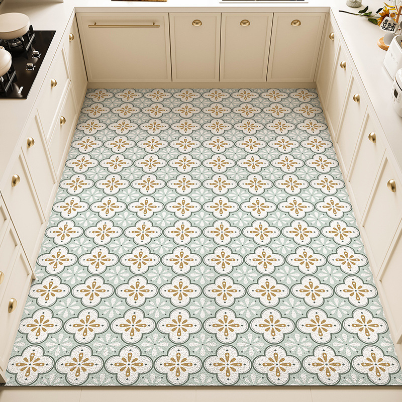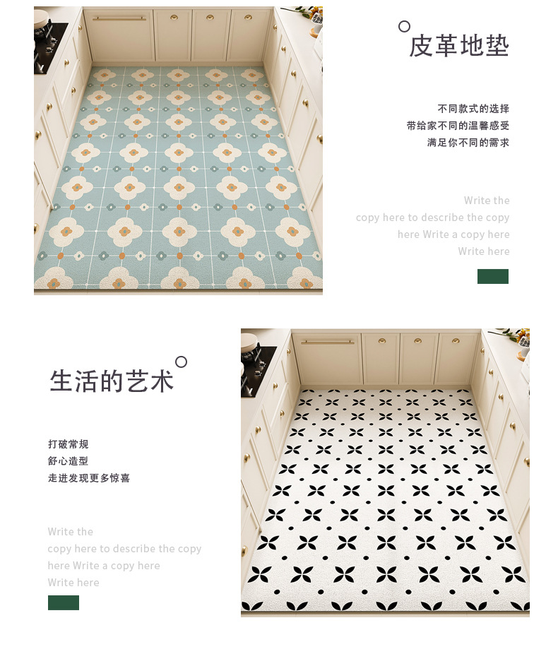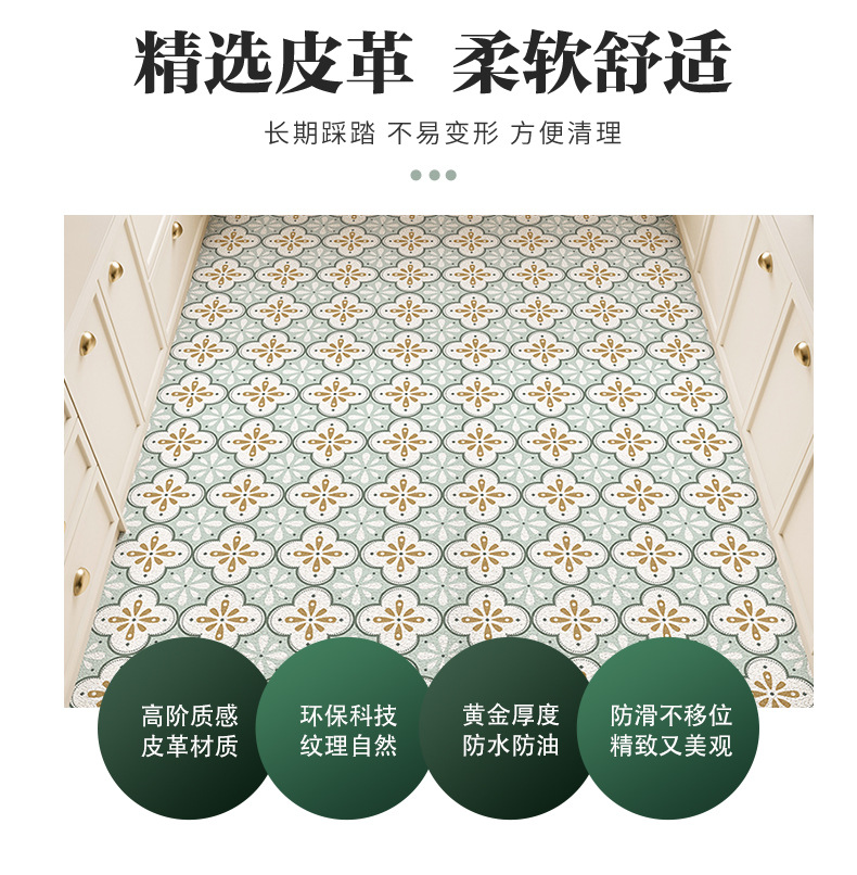간단한 주방 바닥 매트 방수 및 오일 방지 가죽 바닥 매트 가정용 워시 프리 및 지울 수있는 발 매트 복도 절단식 미끄럼 방지 매트