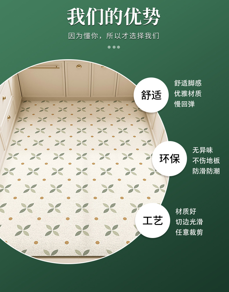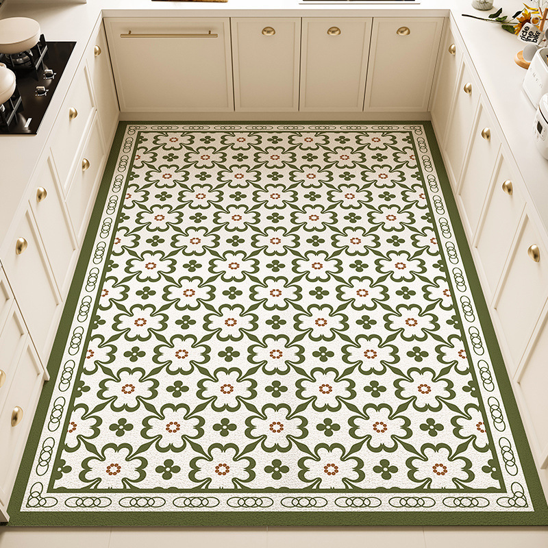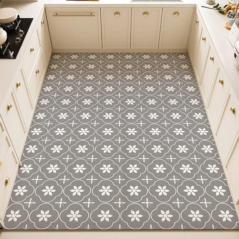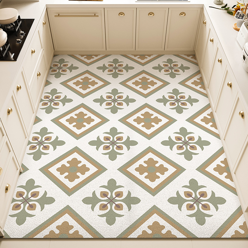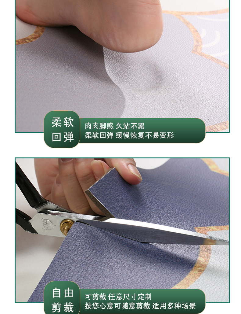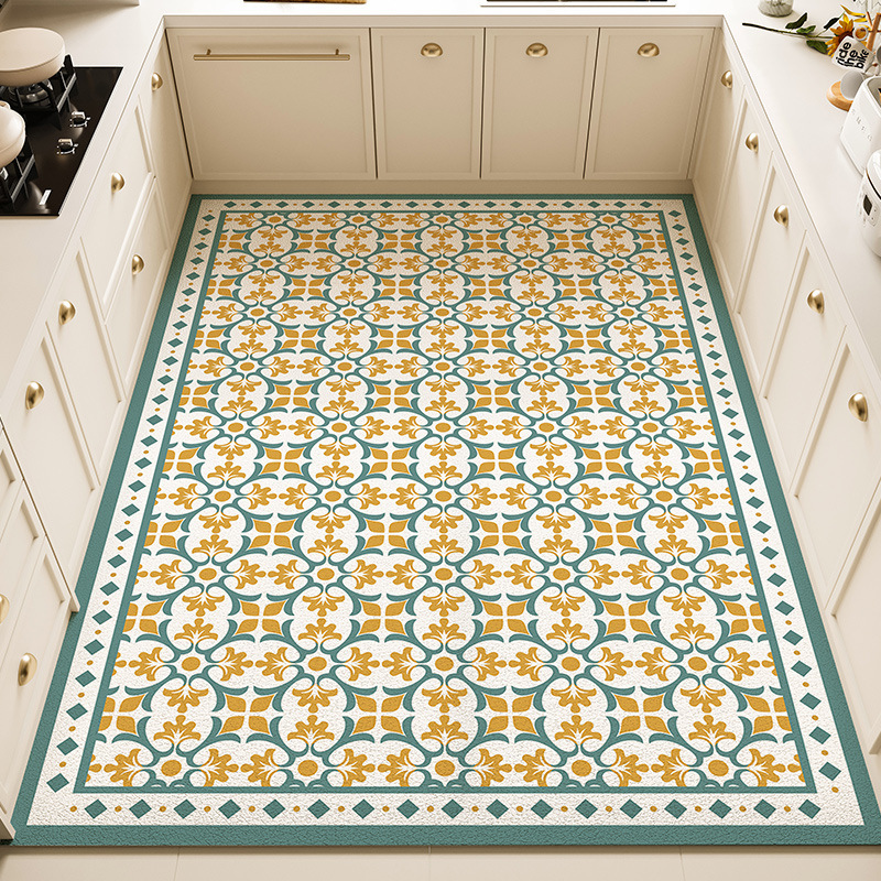 간단한 주방 바닥 매트 방수 및 오일 방지 가죽 바닥 매트 가정용 워시 프리 및 지울 수있는 발 매트 복도 절단식 미끄럼 방지 매트