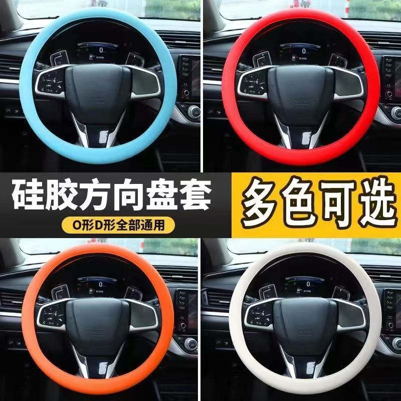 자동차 실리콘 스티어링 휠 커버, 여름철 남녀공용 패셔너블한 땀흡수 및 미끄럼 방지 핸들 커버, 만능 사계절용, 부드럽고 초박형