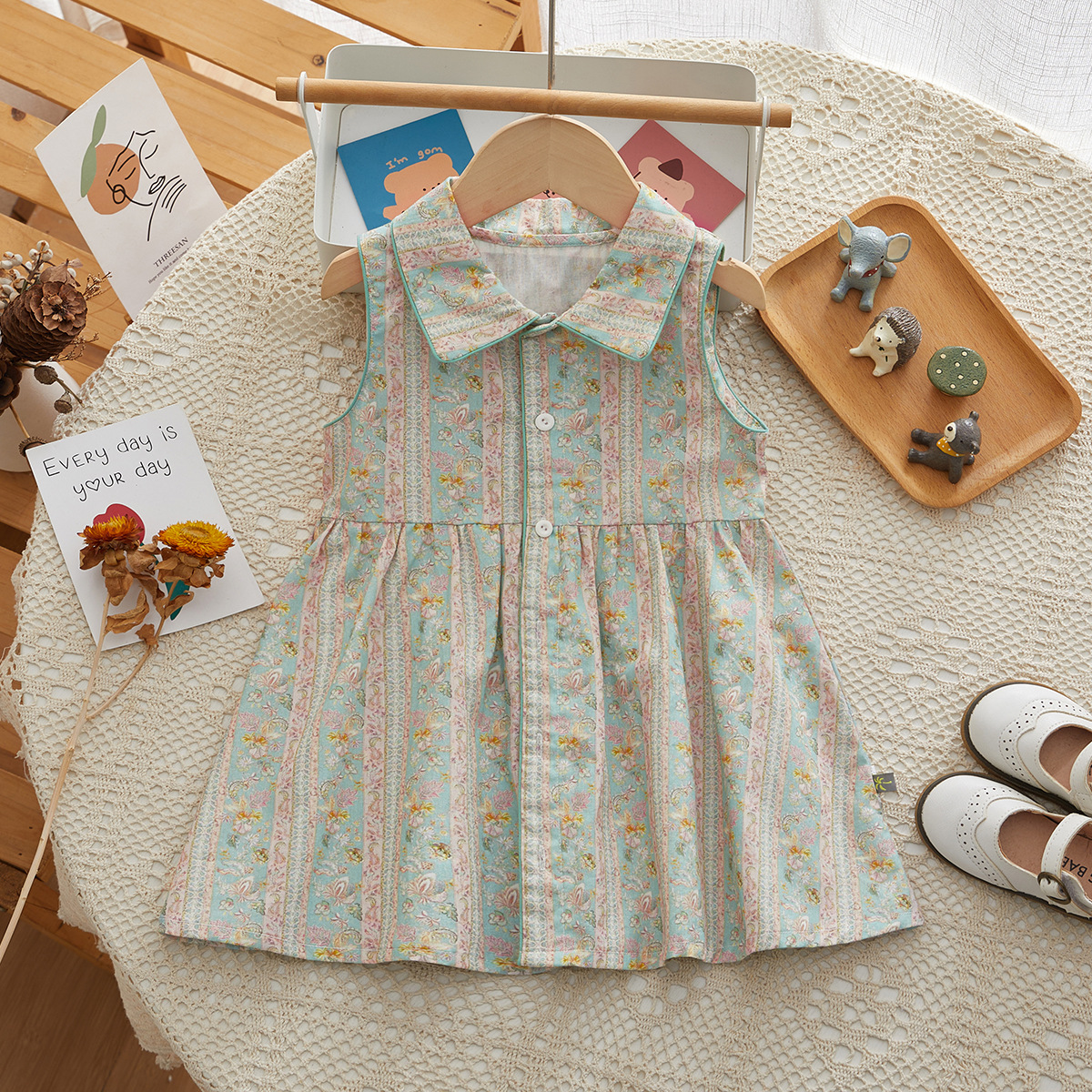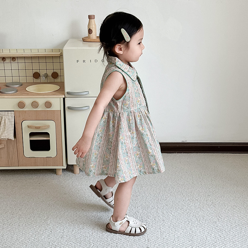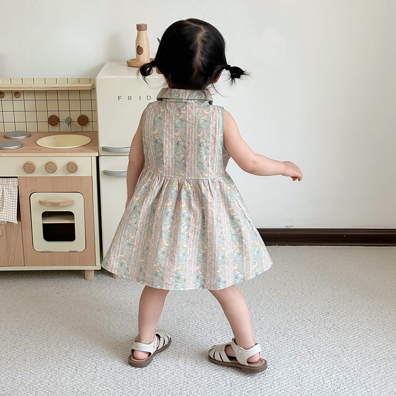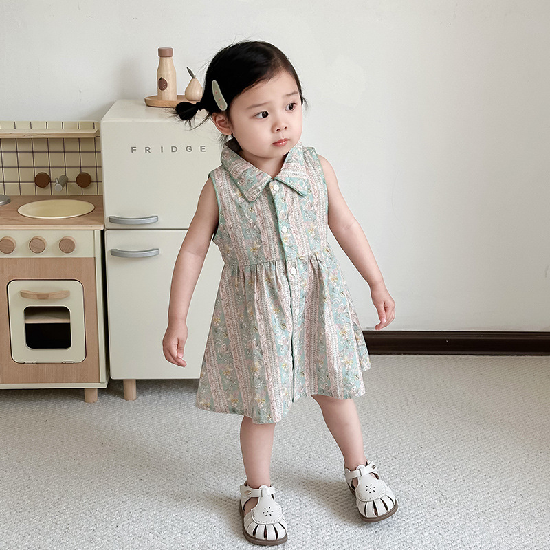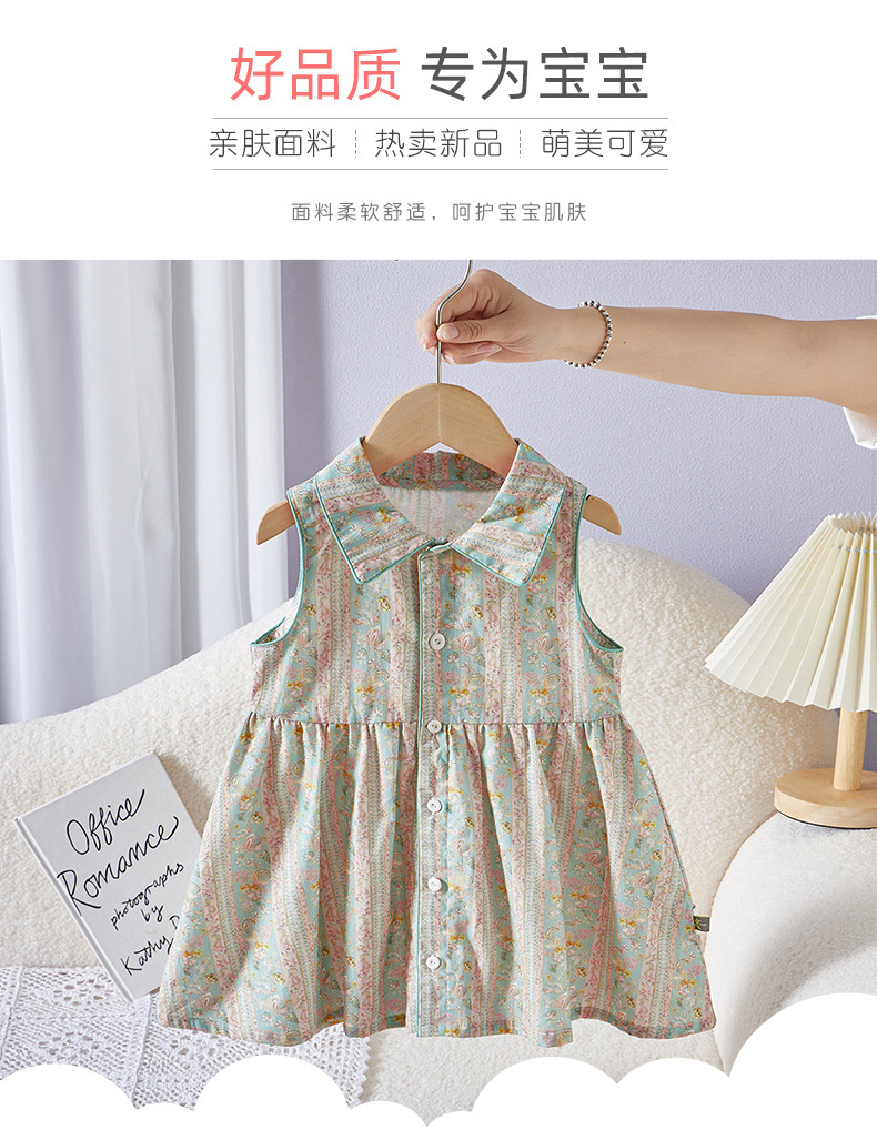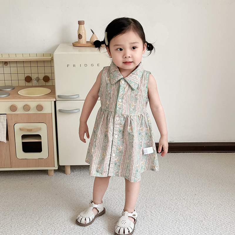 여자 원피스 여름 어린이 스커트 옷깃 민소매 소녀 원피스 여름 옷 여자 민소매 스커트스토어 가기