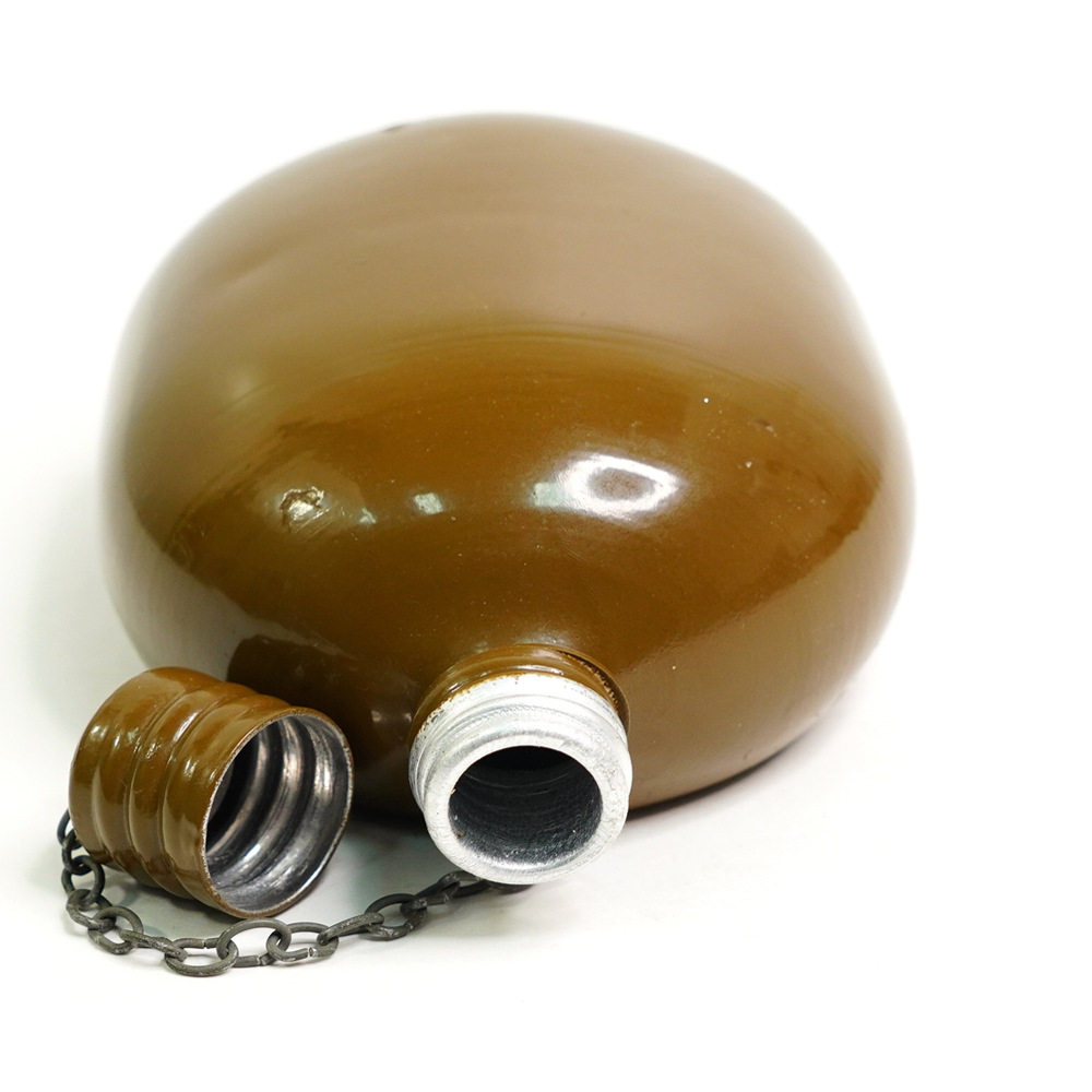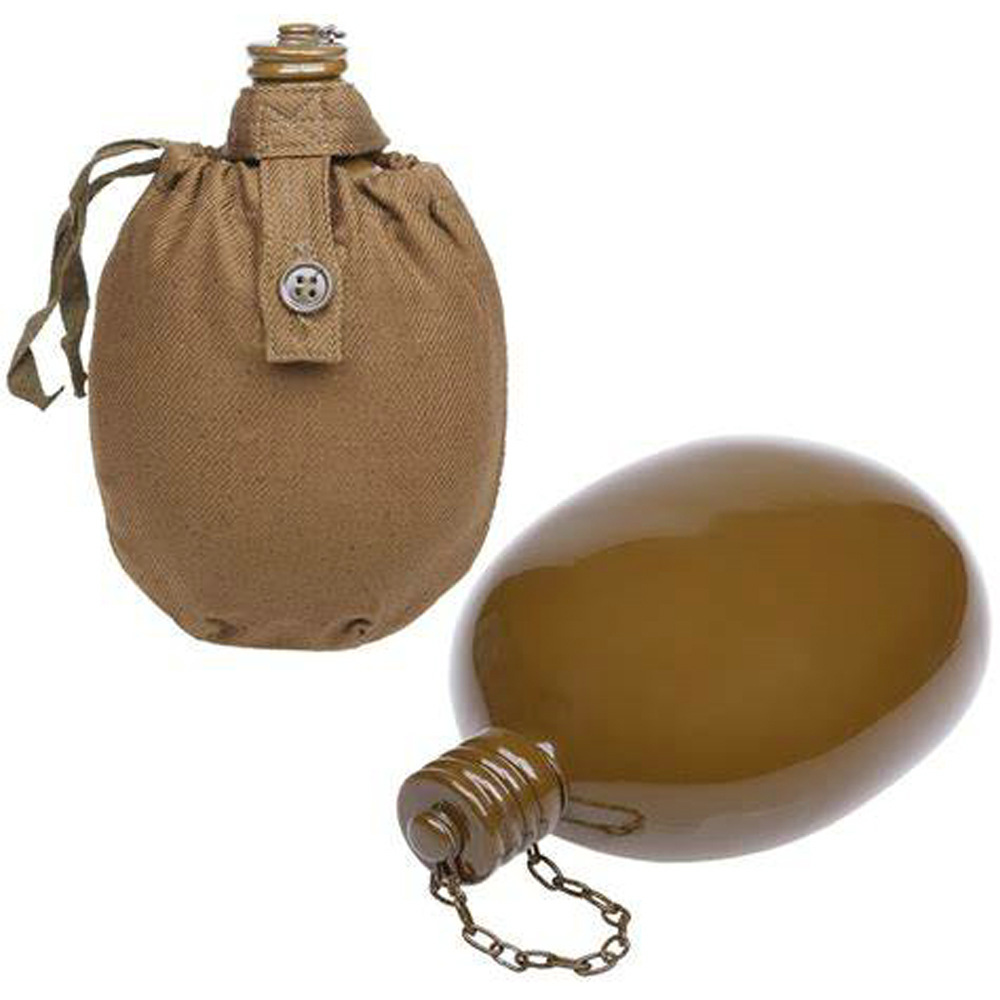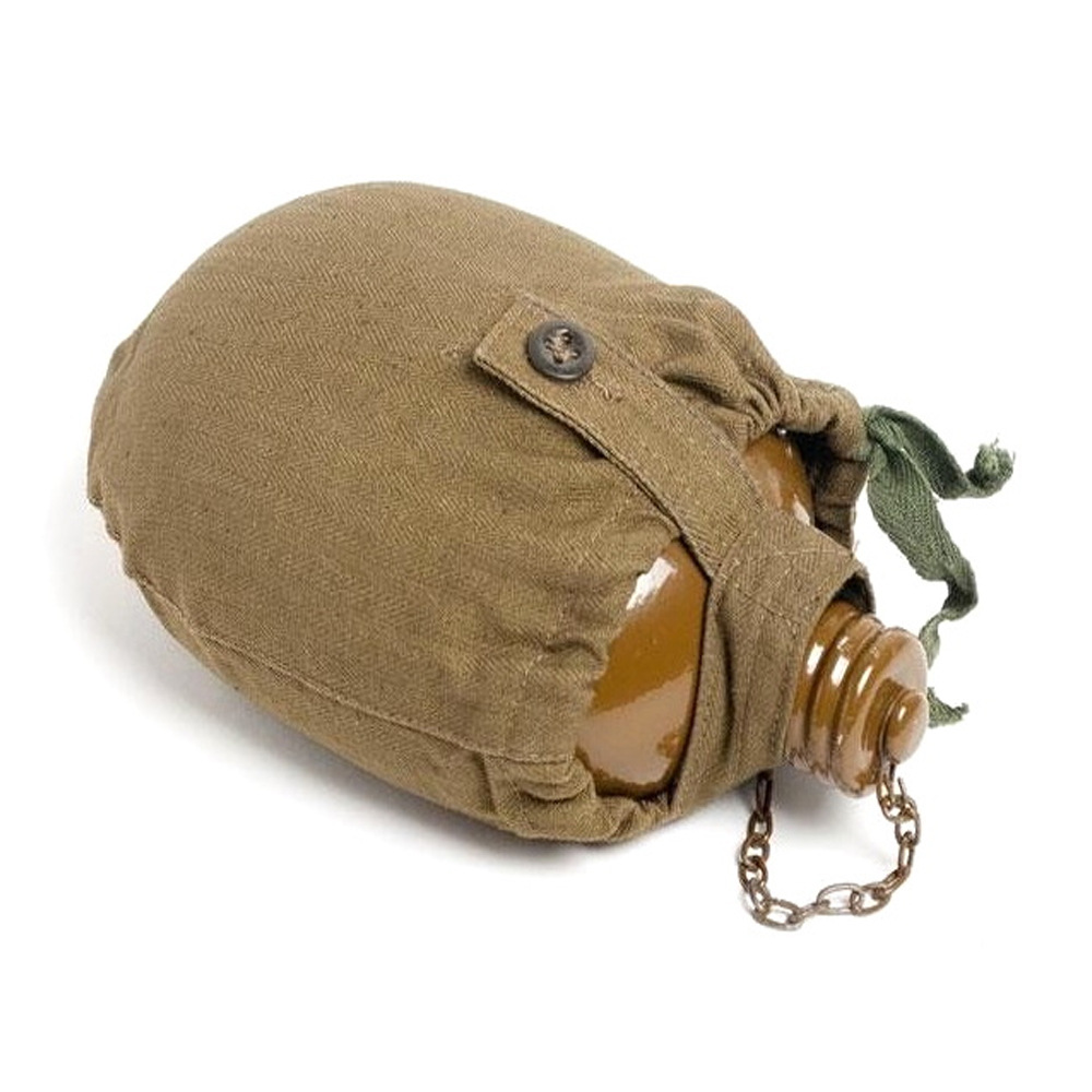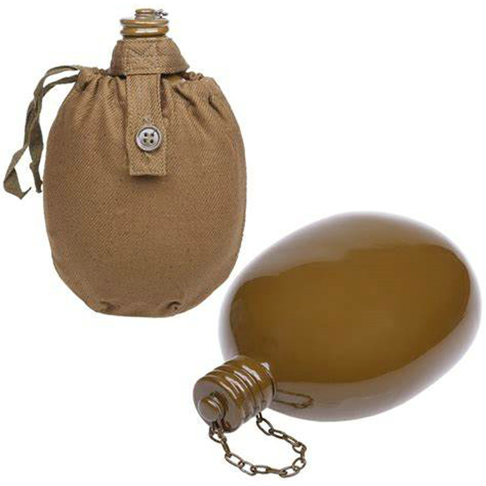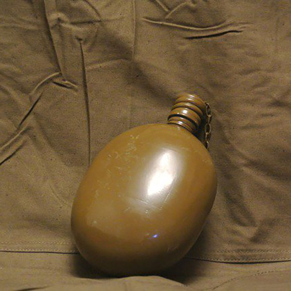 容量为0.8升的水瓶适合用于在野外携带个人供水。该烧瓶具有符合人体解剖学的形状,佩戴在腰带上非常舒适。螺旋盖通过链条连接到主体上,以防止其丢失。盖子里面有一个橡胶密封圈,有经验的人建议用软木塞代替,以避免长时间佩戴时水产生橡胶气味和味道。制造材料是食品级铝。这种类型的烧瓶自 1931 年以来一直在苏联军队中使用。即使现在,俄罗斯联邦武装部队的某些部门也使用几乎相同的水瓶。