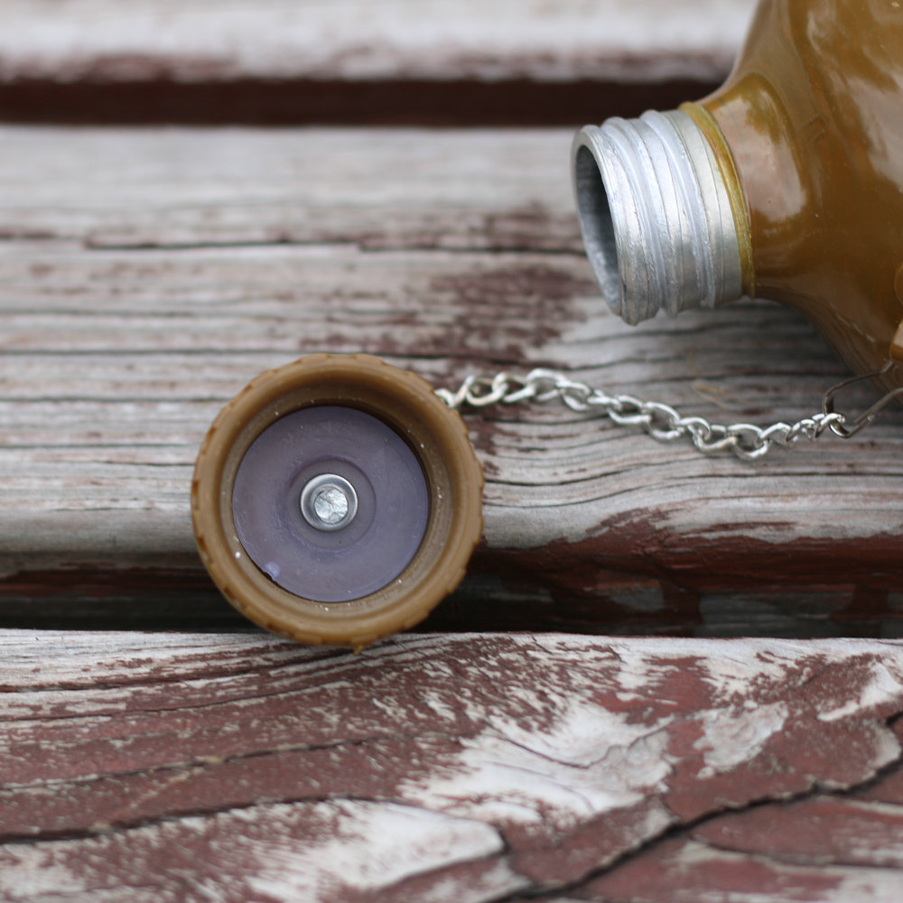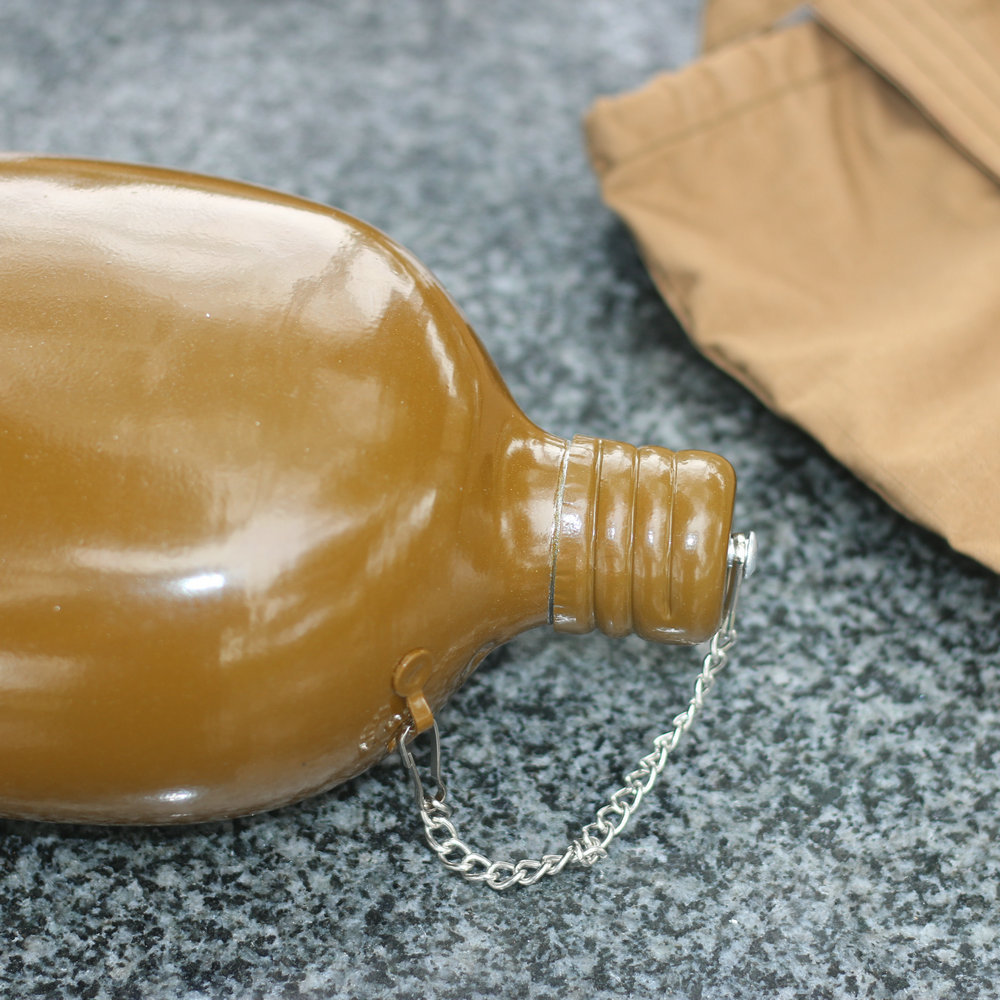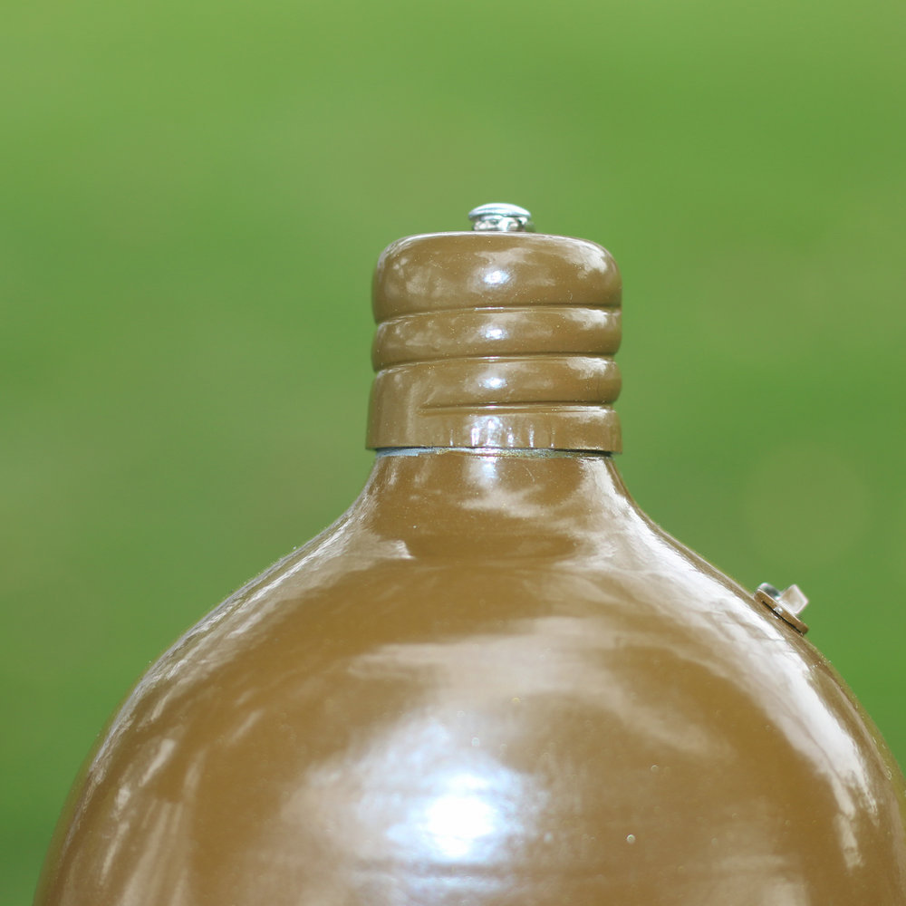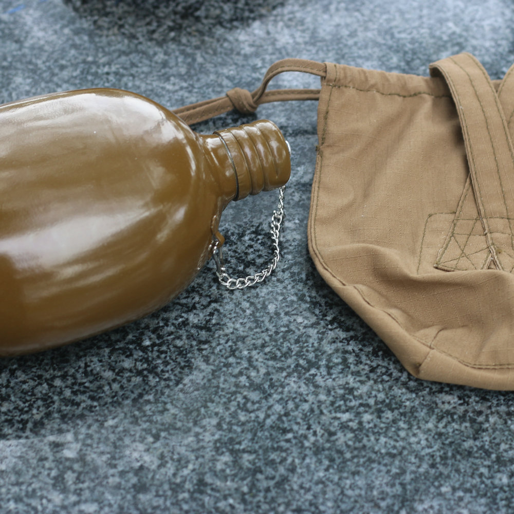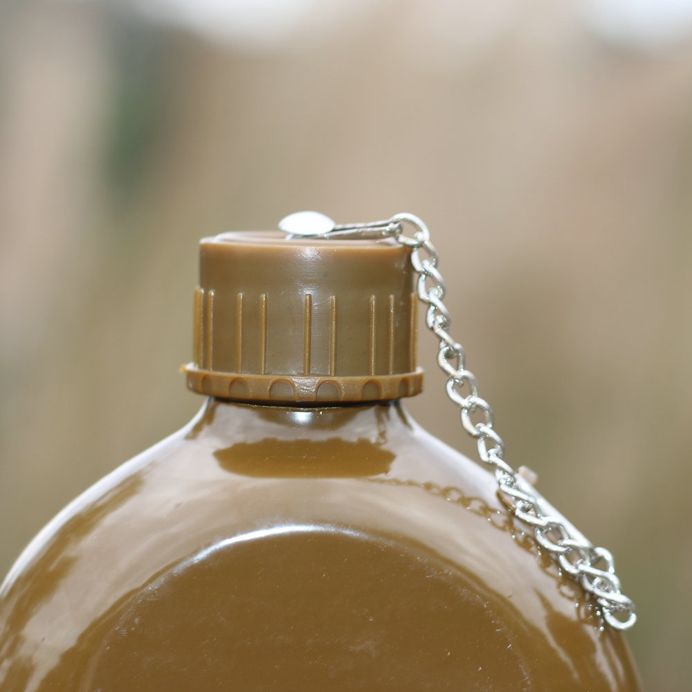 容量为0.8升的水瓶适合用于在野外携带个人供水。该烧瓶具有符合人体解剖学的形状,佩戴在腰带上非常舒适。螺旋盖通过链条连接到主体上,以防止其丢失。盖子里面有一个橡胶密封圈,有经验的人建议用软木塞代替,以避免长时间佩戴时水产生橡胶气味和味道。制造材料是食品级铝。这种类型的烧瓶自 1931 年以来一直在苏联军队中使用。即使现在,俄罗斯联邦武装部队的某些部门也使用几乎相同的水瓶。